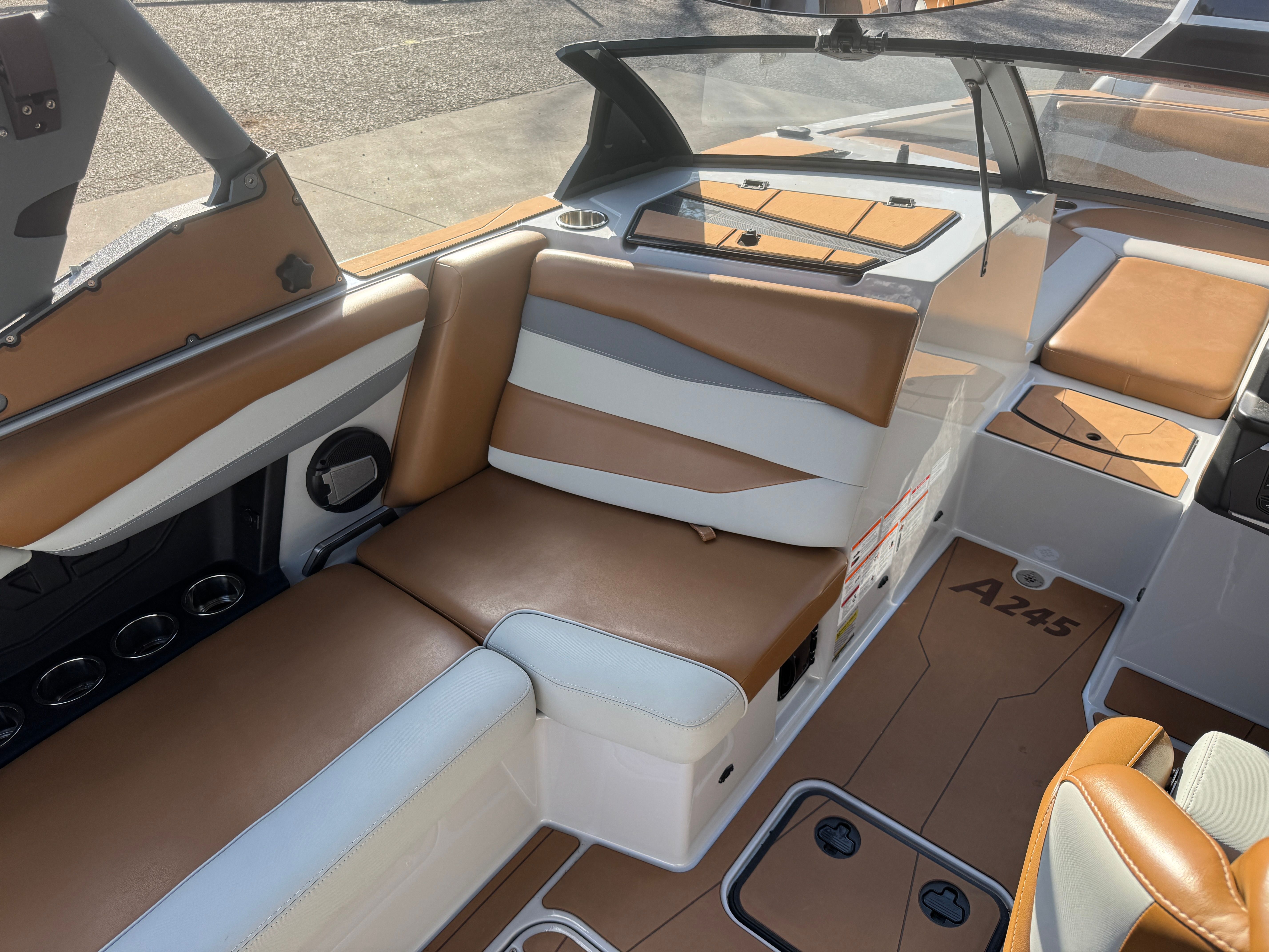 The 2024 Axis A245 is a standout in the Ski & Wakeboard boat category, offering a generous length of 24.42 feet. This impressive size provides ample space for passengers, gear, and all the essentials needed for a day of water sports or relaxation. As a used boat with only 191 engine hours, the Axis A245 offers the perfect balance of modern features and proven reliability. Its sleek, contemporary design is sure to turn heads at the dock and on the water, making it a sought-after Axis boat for sale among enthusiasts.