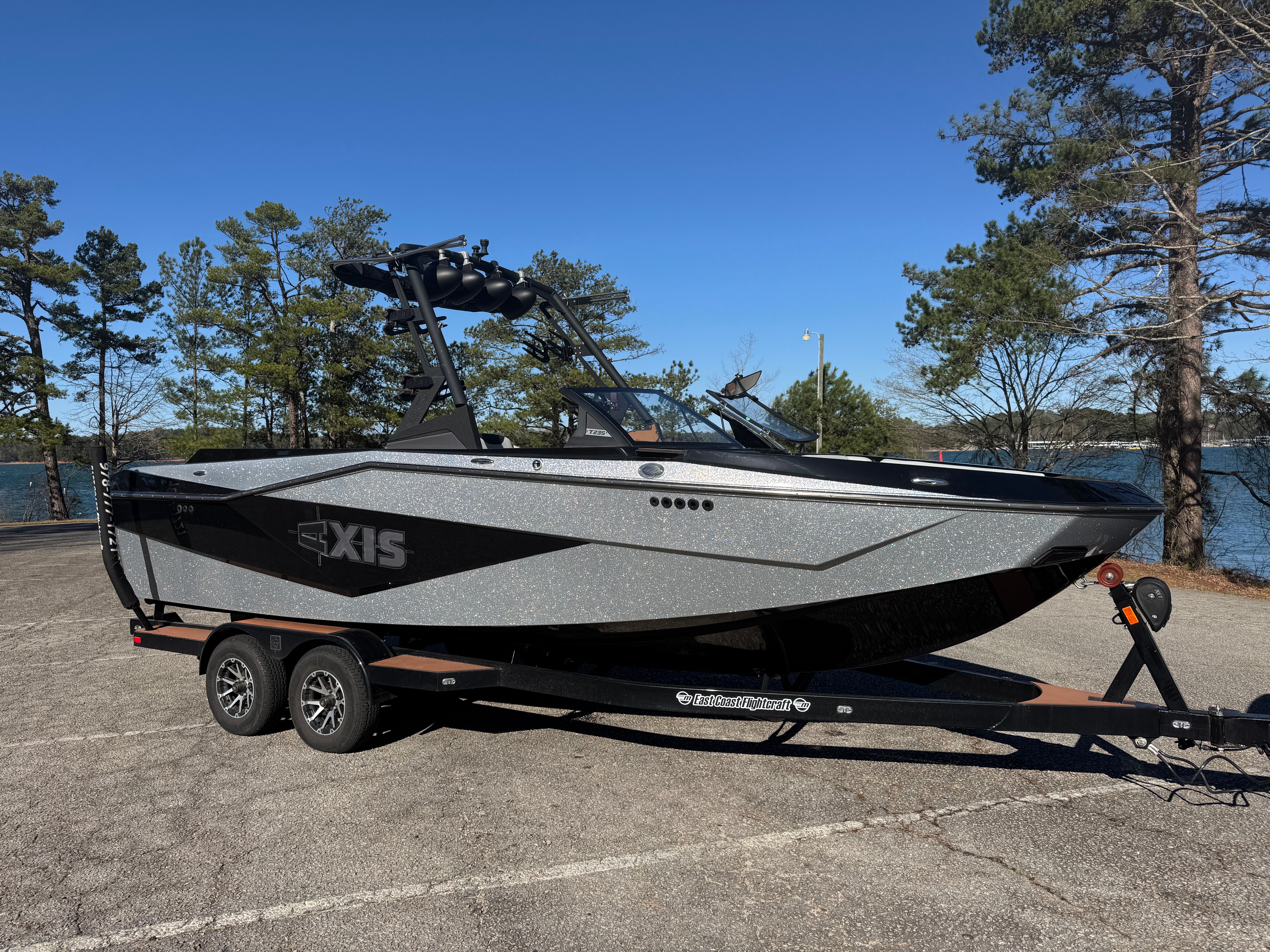 The Axis T235 is engineered with the needs of watersports enthusiasts in mind. Its 23.4-foot length offers ample space for passengers, gear, and all the essentials for a day on the water. The boat’s design maximizes both comfort and utility, providing a spacious layout that encourages socializing and relaxation between sets. The hull is crafted for optimal wake creation, ensuring that riders of all skill levels can enjoy perfectly shaped wakes and waves.Special features of this model include a powerful 400-horsepower engine, which is ideal for generating the speed and pull required for advanced tricks and smooth rides. The Axis T235’s thoughtful design also means easy access to all areas of the boat, making it simple to transition from driver to rider or to assist friends and family as they prepare for their turn on the water.