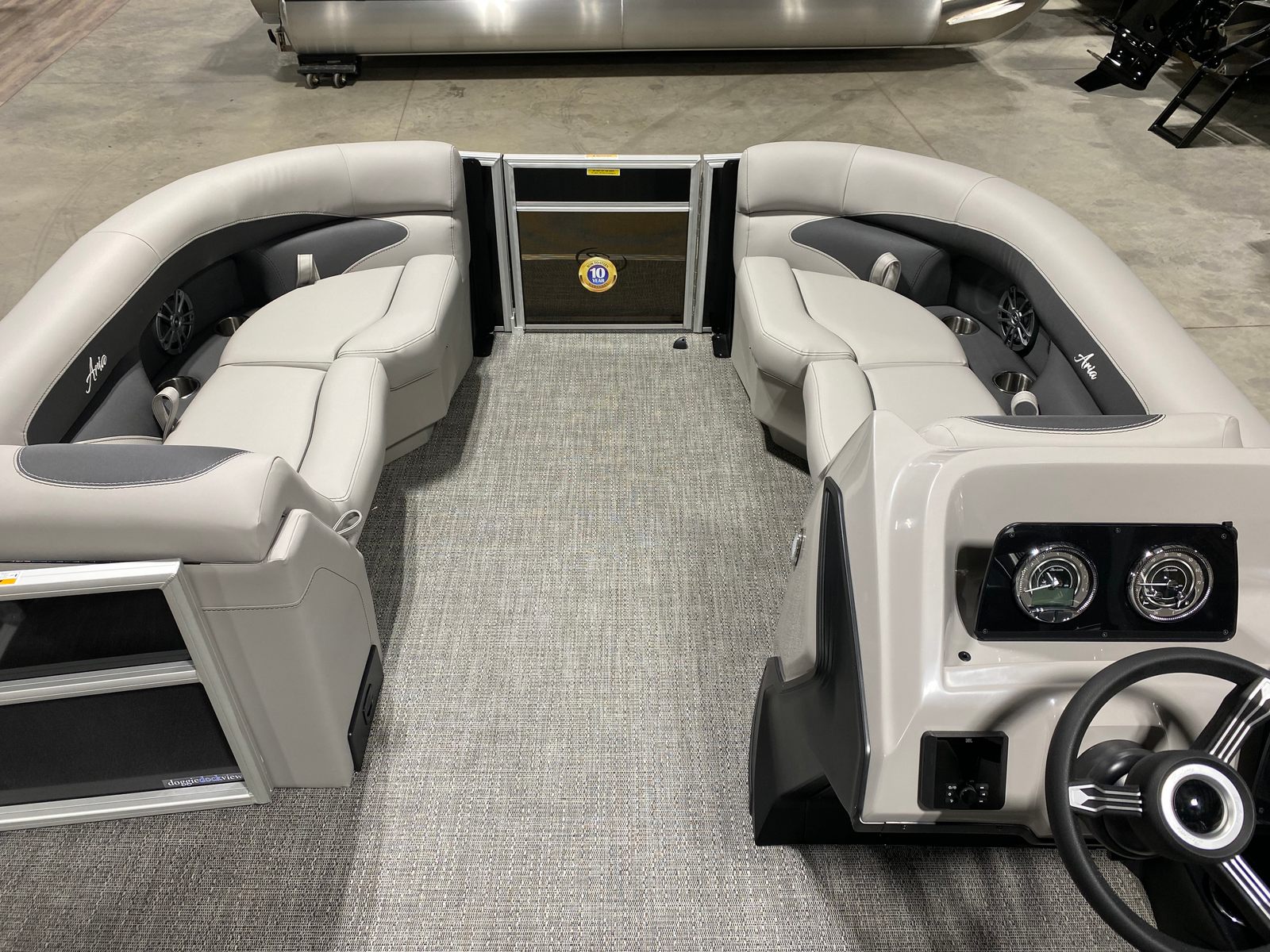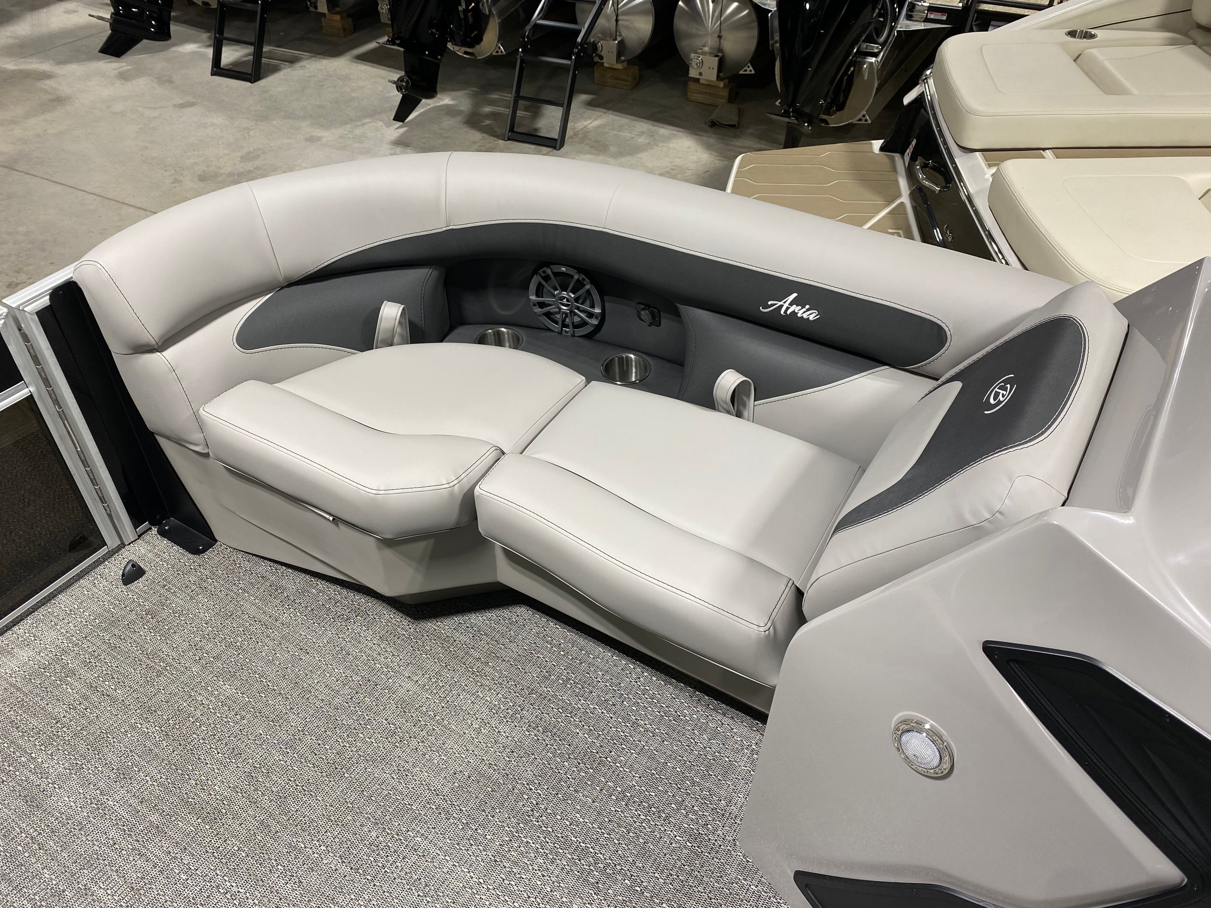 Owning the Barletta Aria A20L means embracing a lifestyle of fun, relaxation, and connection. The spacious deck is perfect for hosting gatherings, enjoying meals, or simply lounging in the sun. The comfortable Tempest Gray furniture invites you to unwind, while the ample floor space ensures everyone has room to move and enjoy themselves. The Triple Toon Package enhances stability, making the boat feel secure even when the water gets lively. With its stylish design and thoughtful layout, the Aria A20L transforms every outing into a special occasion.
