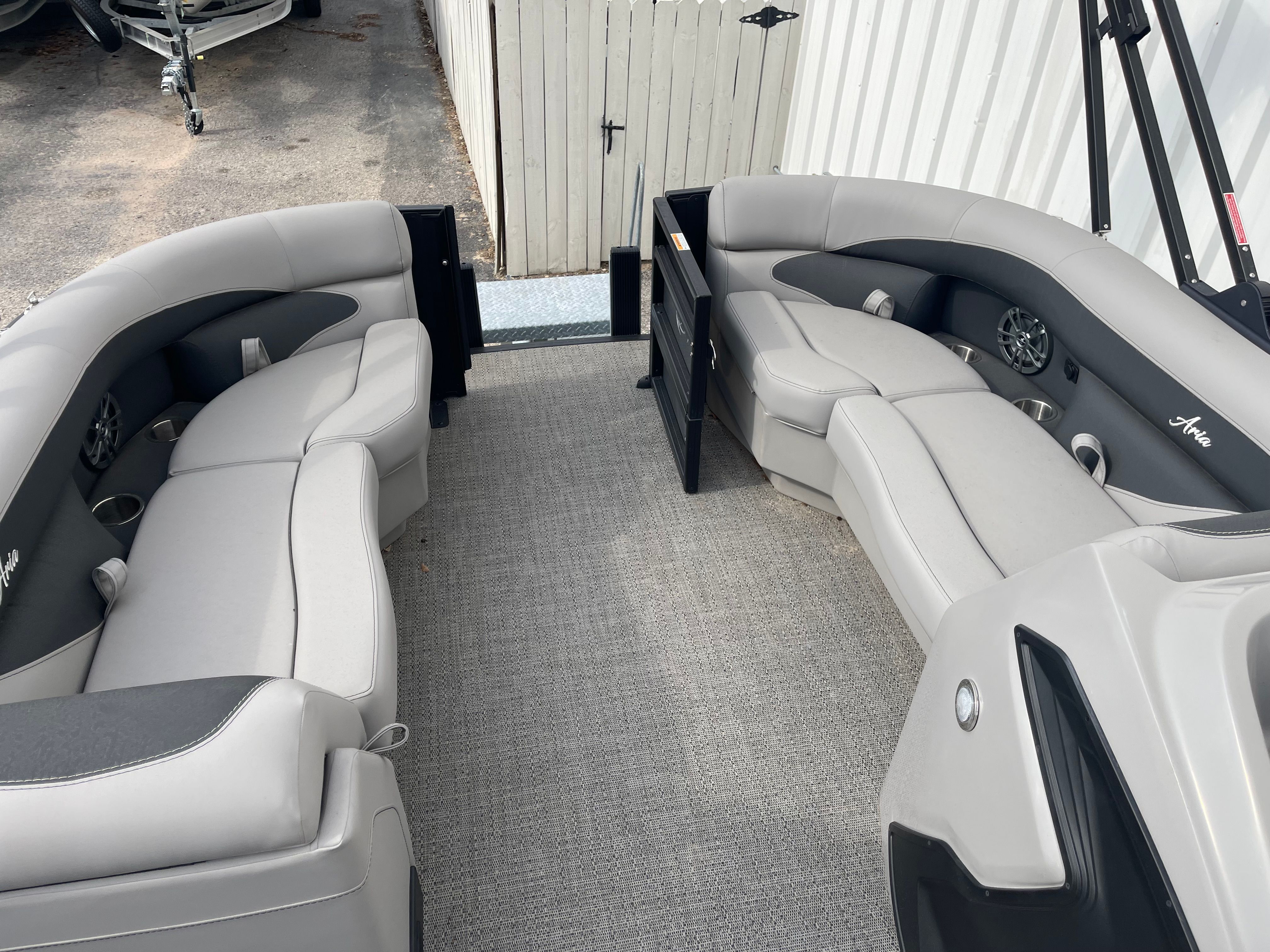 In summary, the 2026 Barletta Aria A22CC pontoon boat is a remarkable blend of style, performance, and versatility. With its powerful Mercury 150L Four Stroke engine, striking Matte Black and Black Diamond railskin, Blackout Package, Triple Toon Package, double bimini, trailering cover, and in-floor midship storage with rod storage, this pontoon is designed to deliver unforgettable experiences on the water. If you’re looking for a Barletta boat for sale that offers luxury, comfort, and excitement, the Aria A22CC is the ultimate choice. Don’t miss your chance to own this exceptional pontoon boat – contact your local dealer today to learn more and start your next adventure!