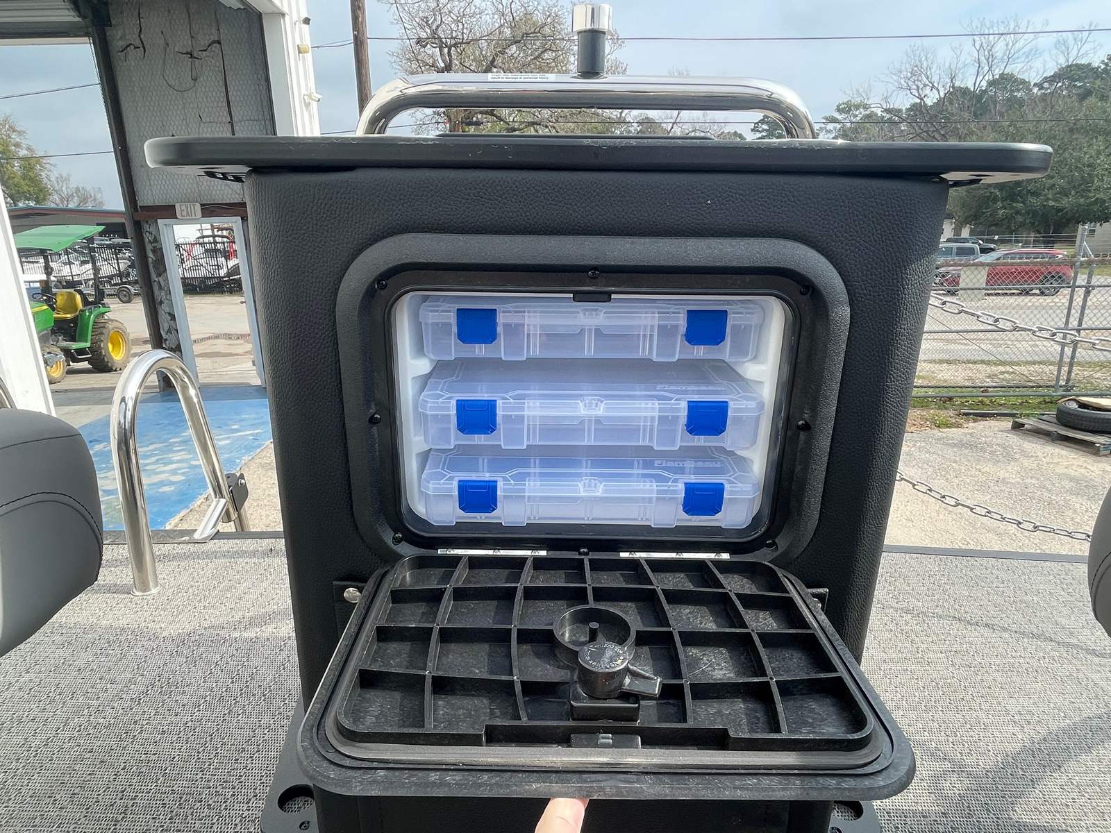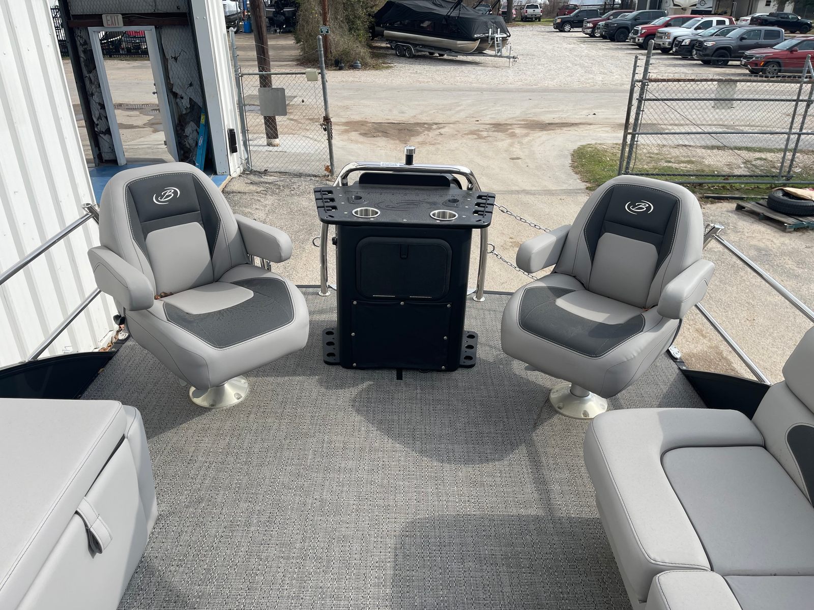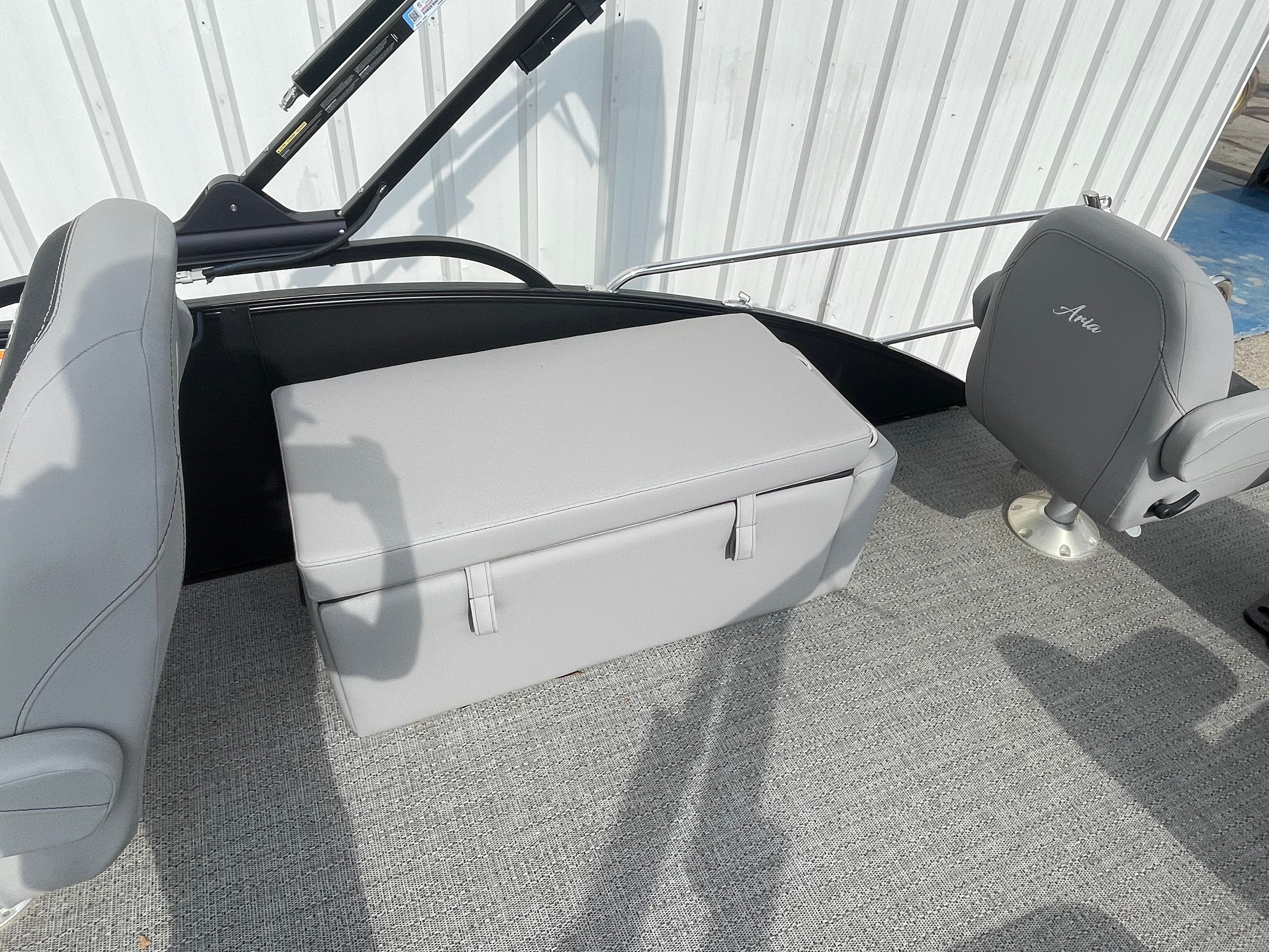 The Barletta Aria A22CC is designed with practicality in mind, making ownership as enjoyable as it is effortless. The in-floor midship storage with rod storage keeps your deck clutter-free and your gear organized, whether you’re an avid angler or simply love having extra space for water toys and picnic supplies. The sturdy triple toon construction enhances maneuverability and docking, making it easy to handle even for those new to pontoon boating.The double bimini provides flexible shade options, so you can adapt to changing weather conditions and keep your guests comfortable all day long. The trailering cover protects your pontoon during transport and storage, preserving its stunning appearance and ensuring it’s always ready for your next adventure. With its efficient Mercury engine and thoughtful design, this Barletta boat for sale is as economical to operate as it is fun to own.