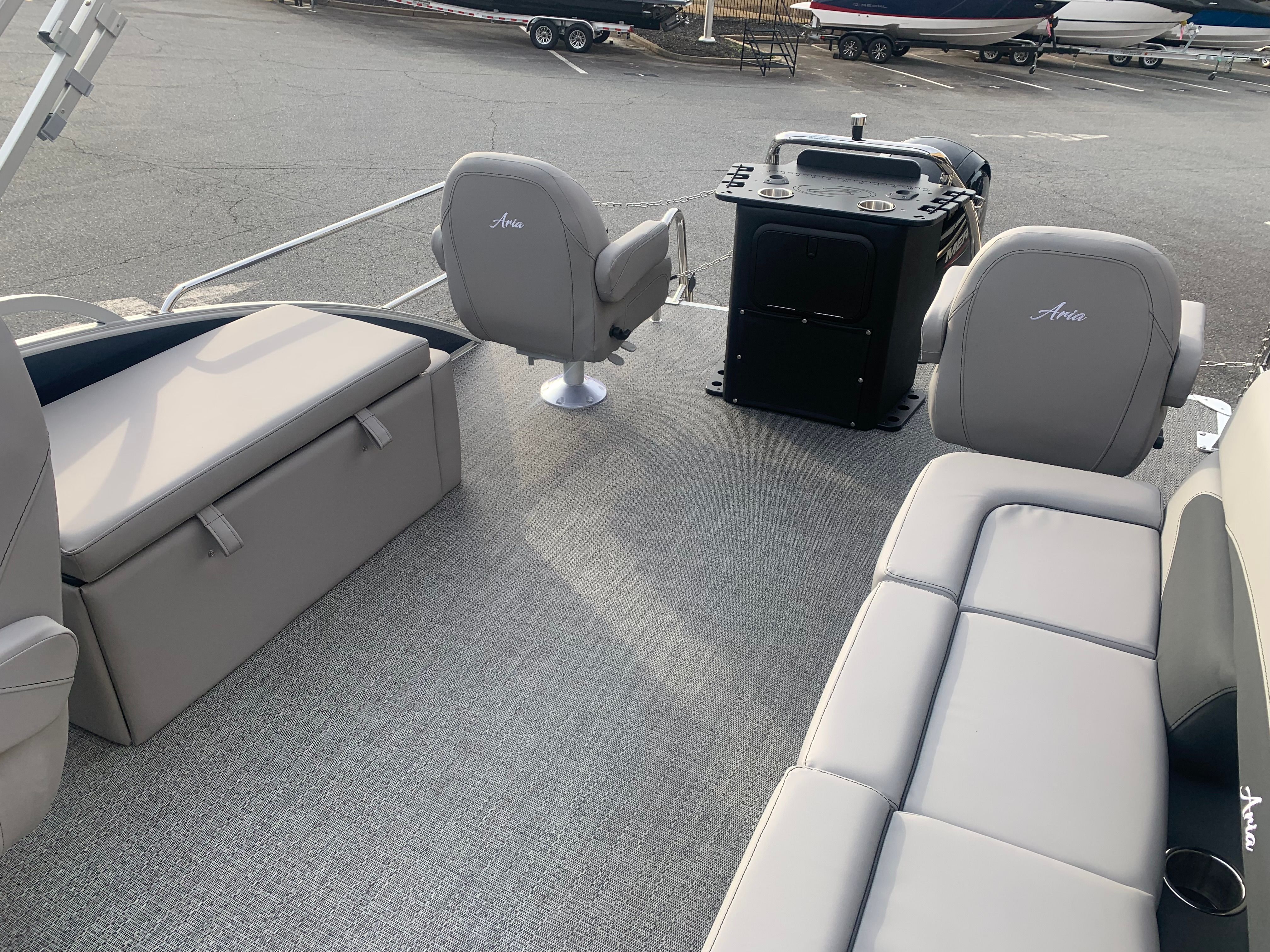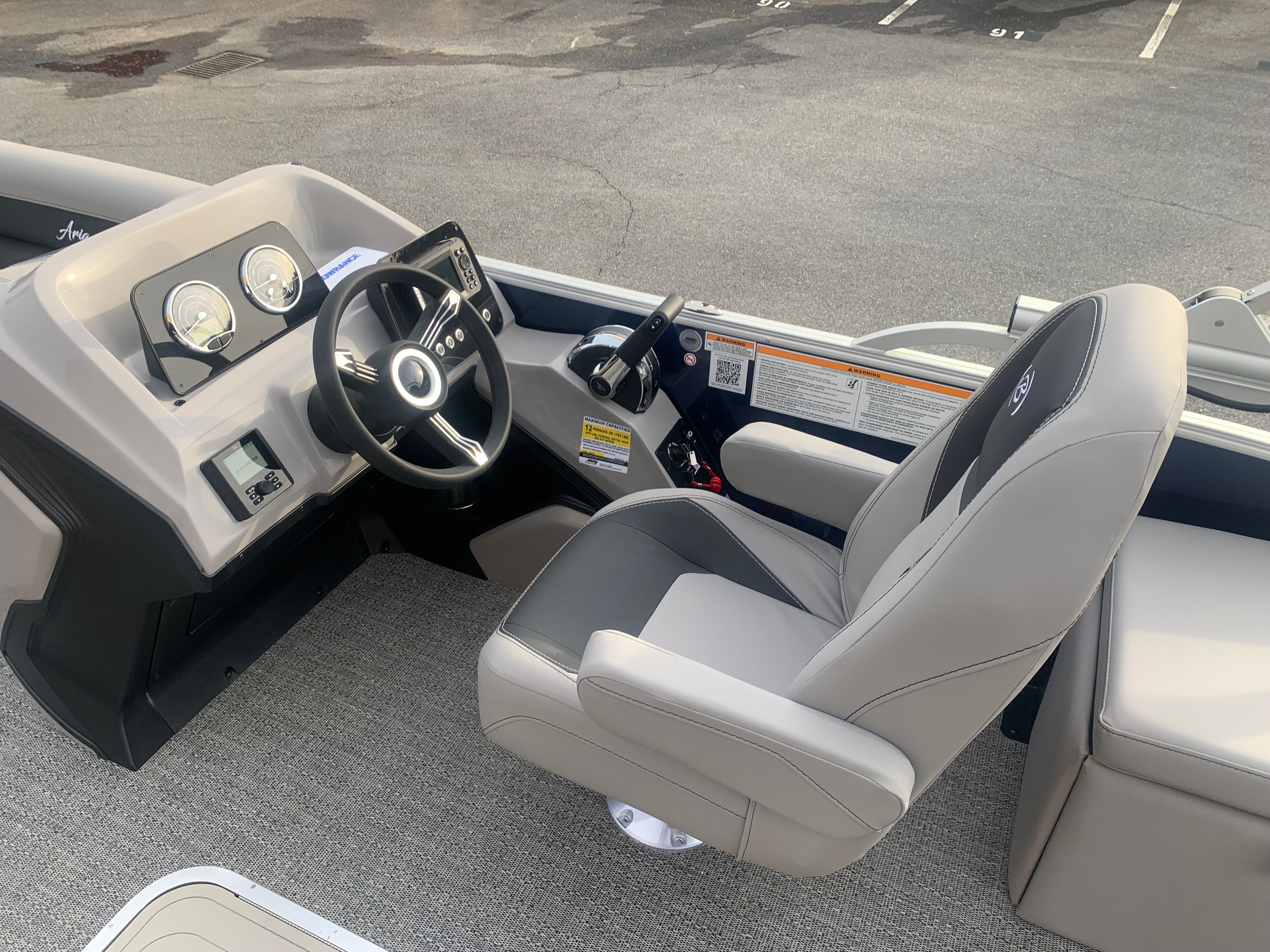 The 2026 Barletta Aria A22CC is packed with features designed to elevate your boating experience. The Triple Toon Package Aria provides enhanced buoyancy and stability, making it ideal for larger groups and more active outings. The onboard battery charger ensures your single battery is always ready for action, while the stainless steel flag pole with an American flag adds a touch of patriotic flair to your vessel’s exterior. Inside, you’ll find in-floor midship storage with rod storage (available with the Triple Toon package), offering convenient space for fishing gear and other essentials. The Tempest Gray furniture and Amore Gray flooring not only look stunning but are also crafted for comfort and durability, ensuring your time on the water is always relaxing.