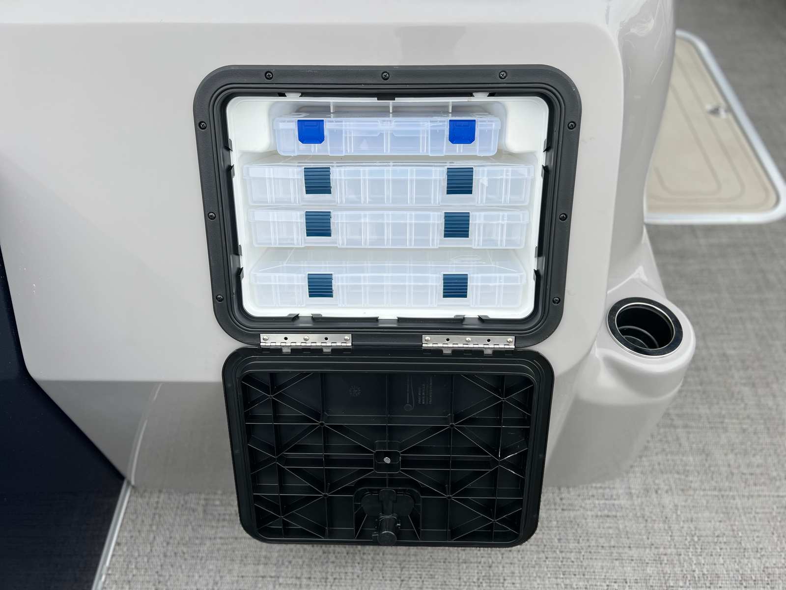 Power and reliability are at the heart of the Barletta Aria A22F. Equipped with a Mercury (M) 150L Four Stroke engine, this pontoon delivers an impressive 150 horsepower, providing smooth acceleration and responsive handling. With only one engine hour, you can be confident that this boat is virtually brand new and ready for countless adventures. The Mercury mechanical pre-rig and standard prop rigging ensure optimal performance and efficiency, making every ride enjoyable and worry-free. Whether you are cruising along the shoreline or picking up speed for a thrilling ride, the Aria A22F’s performance capabilities set it apart from other pontoon boats for sale.