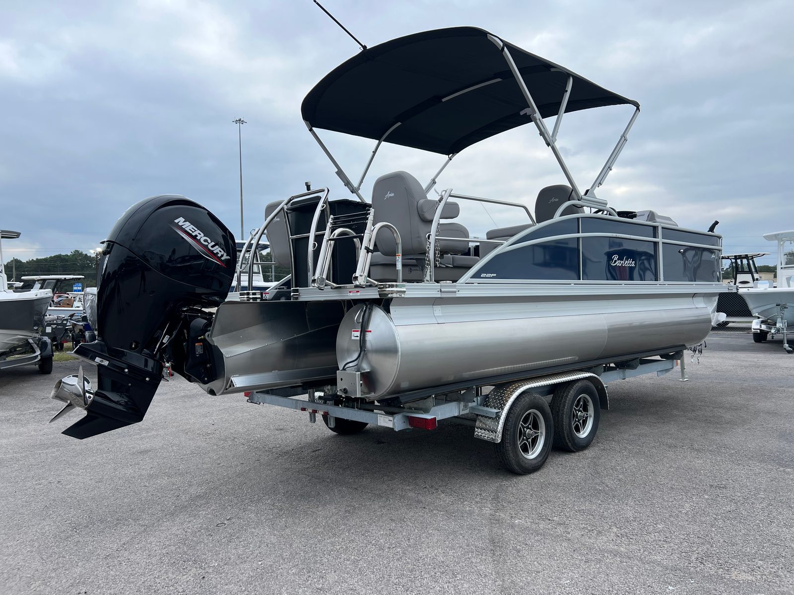 The 2025 Barletta Aria A22F is more than just a pontoon boat for sale; it’s an invitation to experience the best that boating has to offer. With its powerful Mercury 150L Four Stroke engine, elegant Blue Sapphire Railskin, luxurious Tempest Gray furniture, and advanced Simrad navigation system, this boat is designed to deliver unforgettable moments on the water. The Triple Toon Package ensures stability and comfort, while the Metal Jacket Protectant keeps your investment looking pristine. If you are searching for a Barletta boat for sale that combines style, performance, and versatility, the Aria A22F is the perfect choice. Don’t miss the opportunity to make this exceptional pontoon yours—contact your dealer today to learn more and start your next adventure.