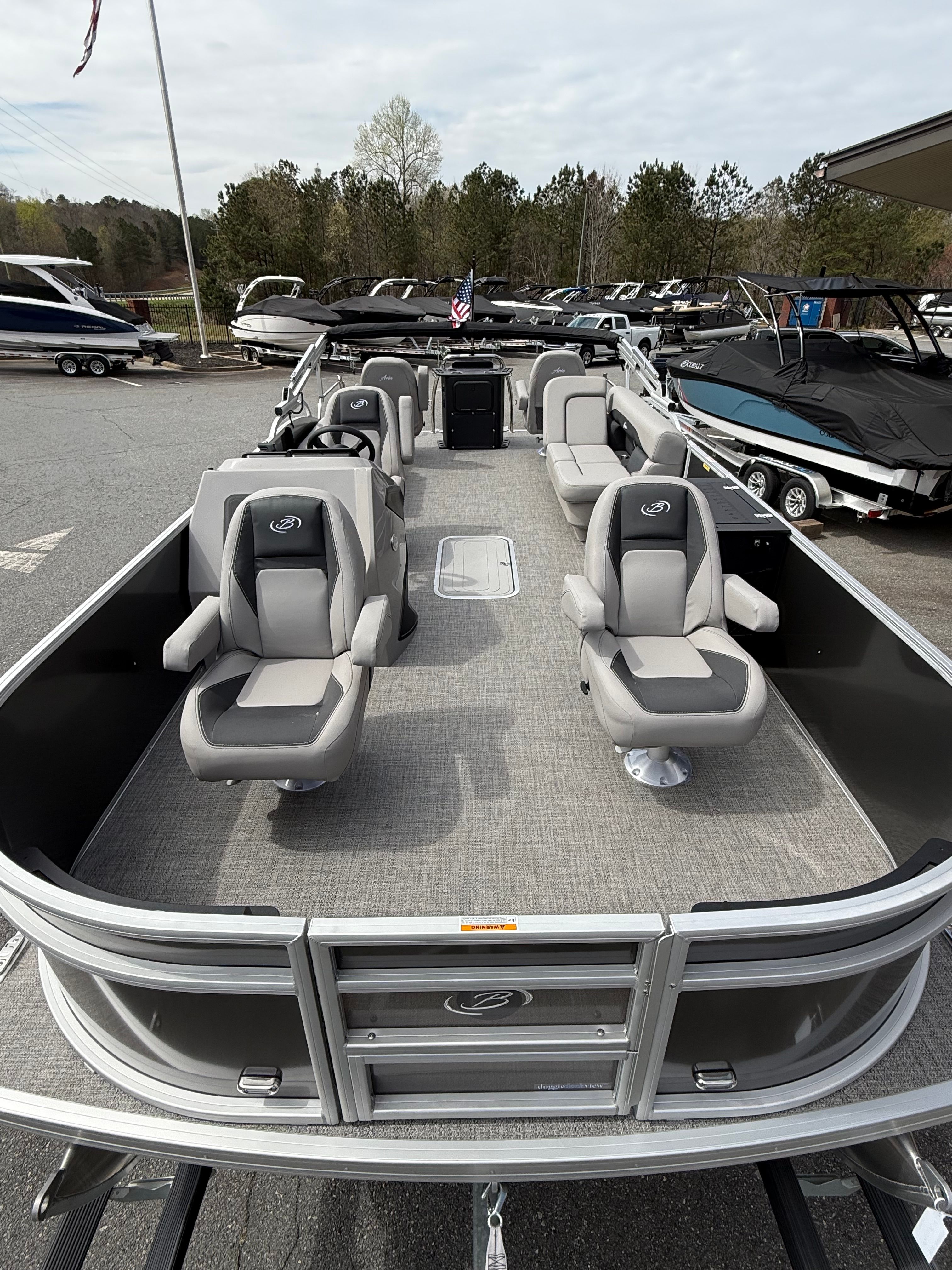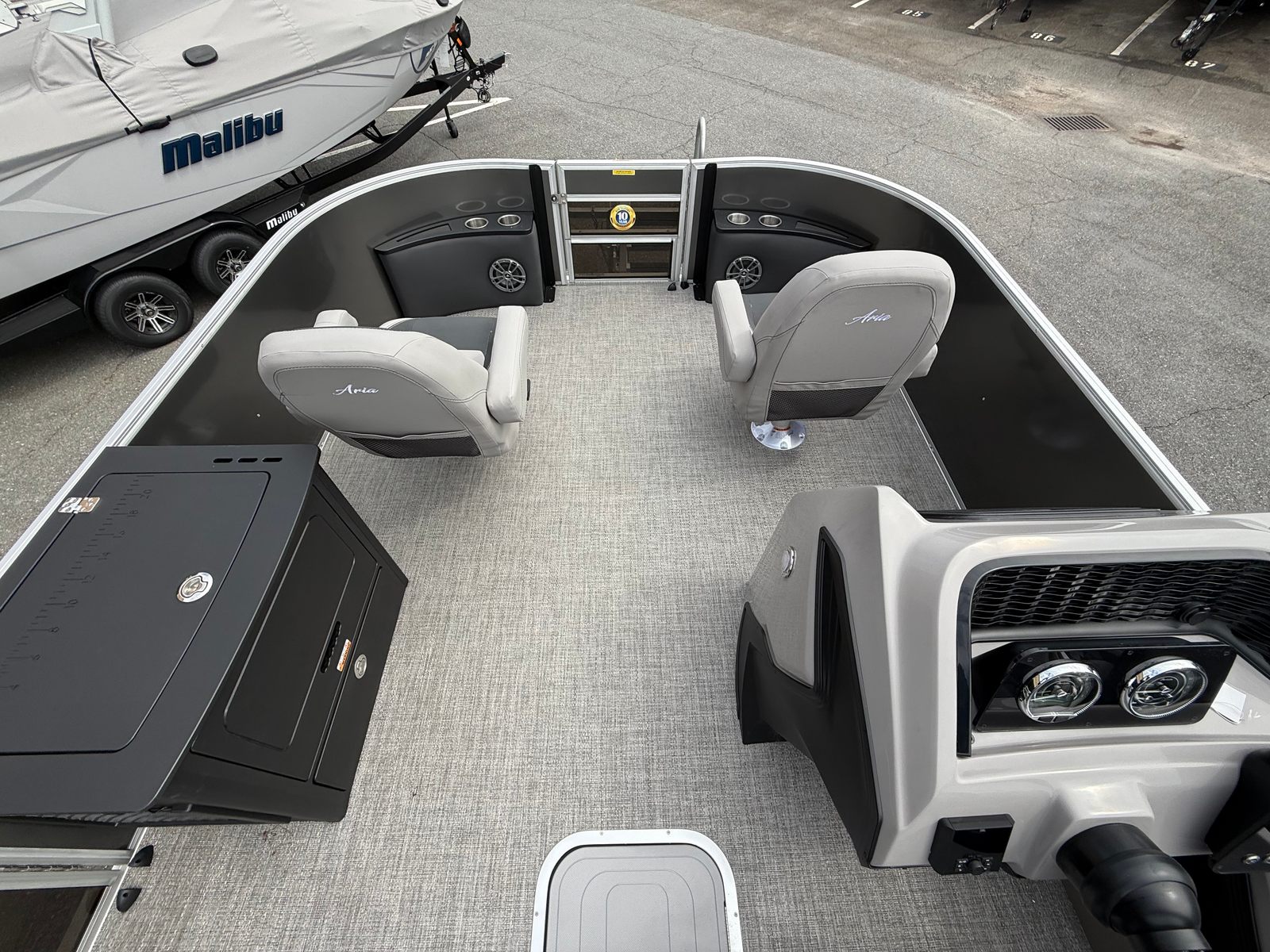 The 2026 Barletta Aria A22F is a 21-foot pontoon that combines modern aesthetics with practical functionality. Its Gray Moonstone railskin color gives it a sophisticated look, while the Tempest Gray furniture and Tessa Gray flooring create a cohesive and inviting interior. Whether you are planning a relaxing cruise, a fishing adventure, or a lively gathering with friends, this Barletta boat for sale offers the versatility and comfort you need for every occasion.