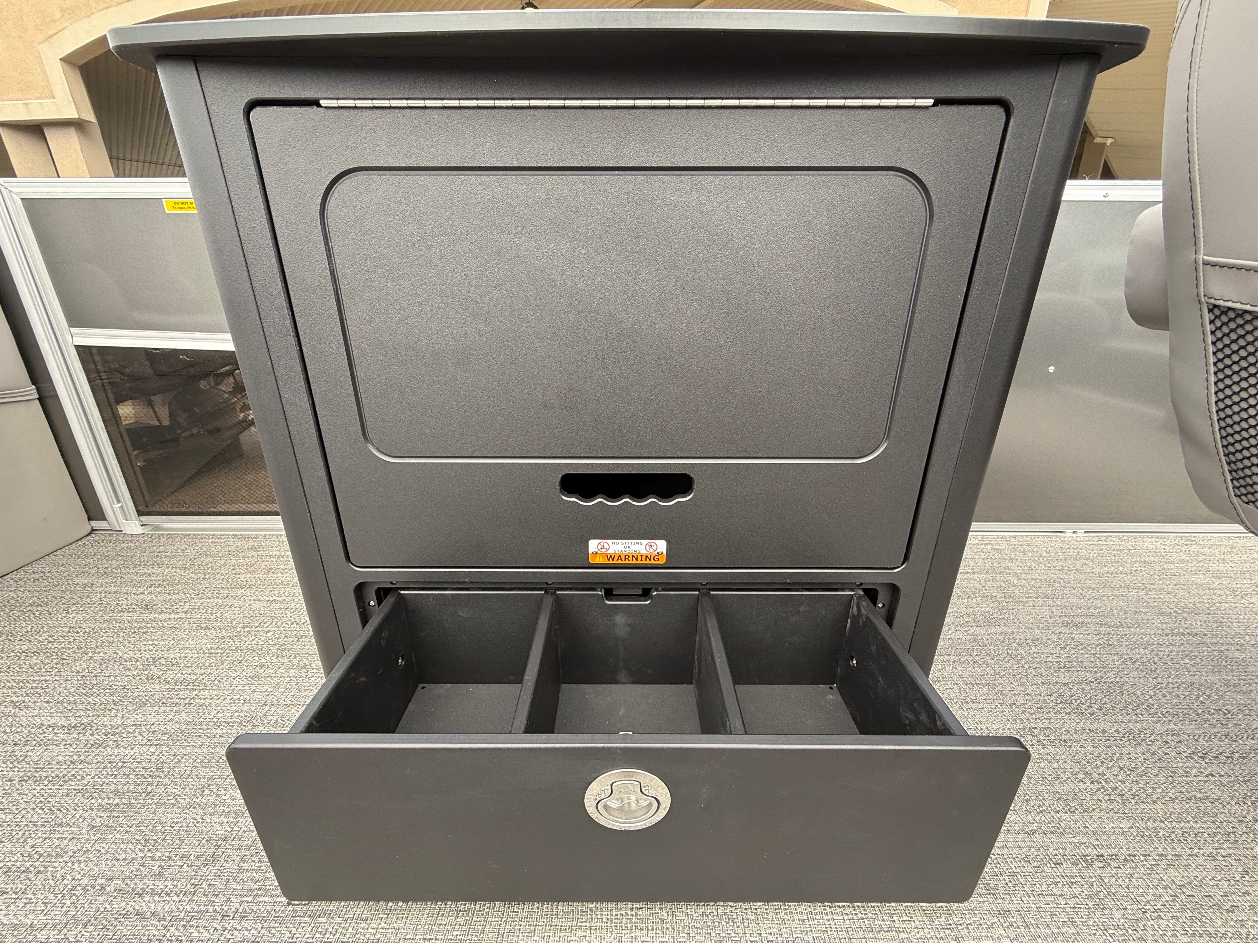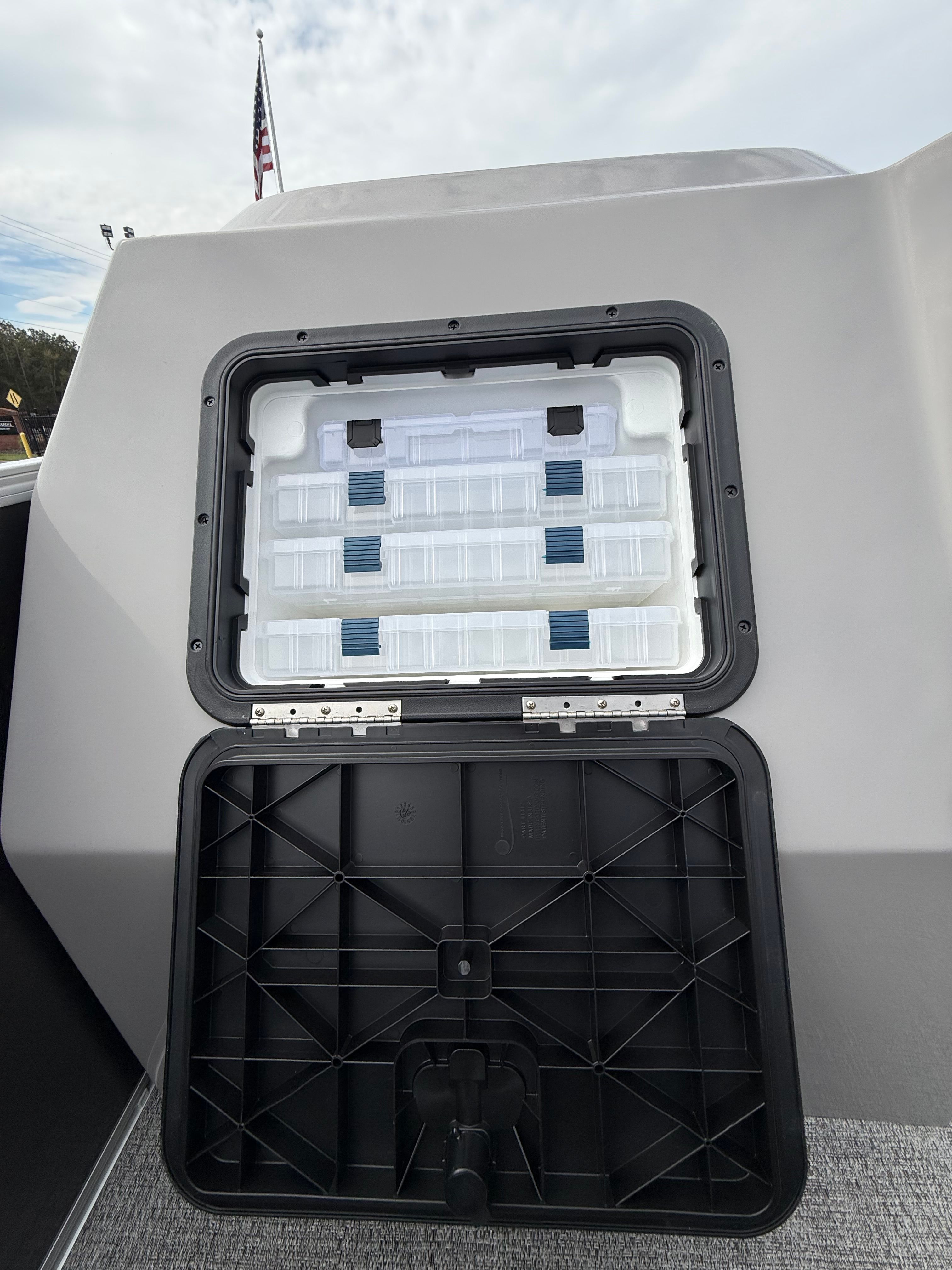 The Barletta Aria A22F is designed with practicality in mind, making ownership easy and enjoyable. The in-floor midship storage with rod storage keeps your equipment secure and out of the way, maximizing usable space on deck. The on-board battery charger simplifies maintenance, ensuring your pontoon is always ready for spontaneous trips. Docking and maneuvering are a breeze thanks to the responsive Yamaha F115LB engine and the stability provided by the Aria Triple Toon Package. The durable flooring and weather-resistant canvas cover protect your investment, reducing the time and effort needed for cleaning and upkeep. With its efficient engine and smart design, this pontoon boat offers excellent fuel economy, so you can spend more time on the water and less time at the pump.
