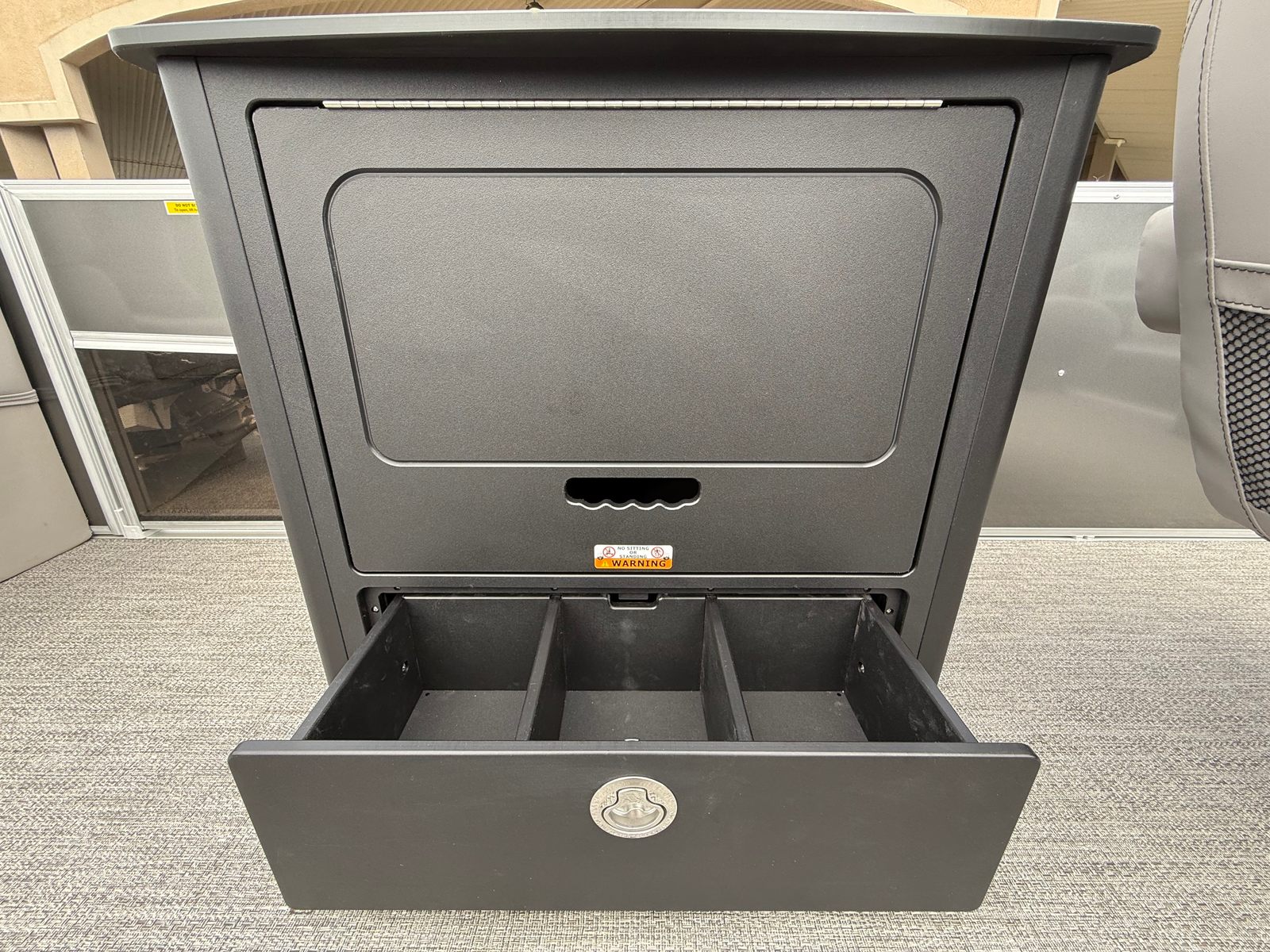 The 2026 Barletta Aria A22F is packed with thoughtful features designed to enhance your time on the water. The clipped playpen cover with poles provides essential protection from the elements, keeping your boat’s interior in pristine condition. Inside, the in-floor midship storage with dedicated rod storage offers ample space for your gear, making it easy to keep the deck clutter-free and organized. The on-board battery charger for the single battery ensures you are always ready to go, providing peace of mind for longer outings. Every detail, from the premium Tempest Gray furniture to the durable Tessa Gray flooring, has been selected to offer both comfort and durability, ensuring your pontoon remains a welcoming retreat for years to come.