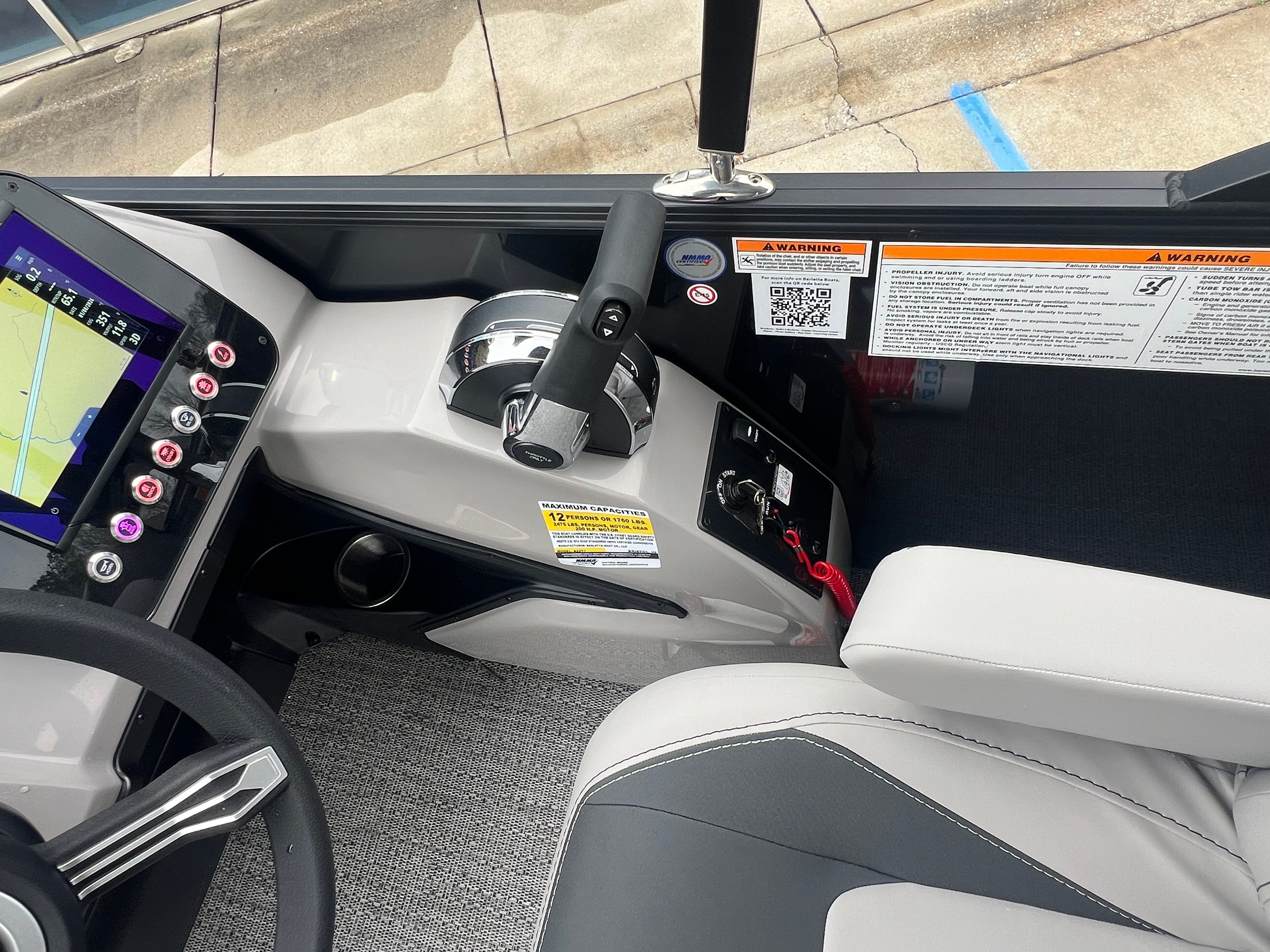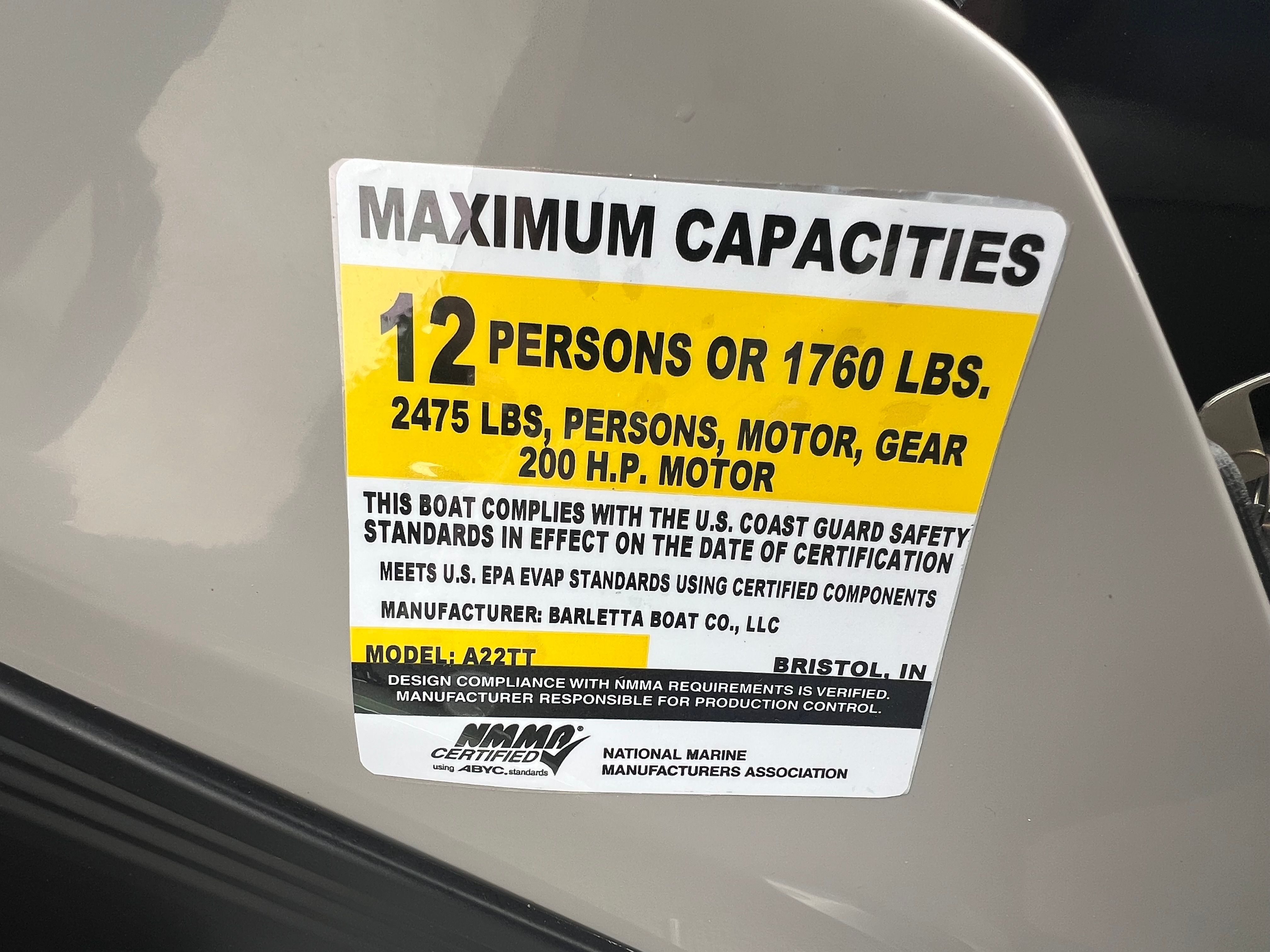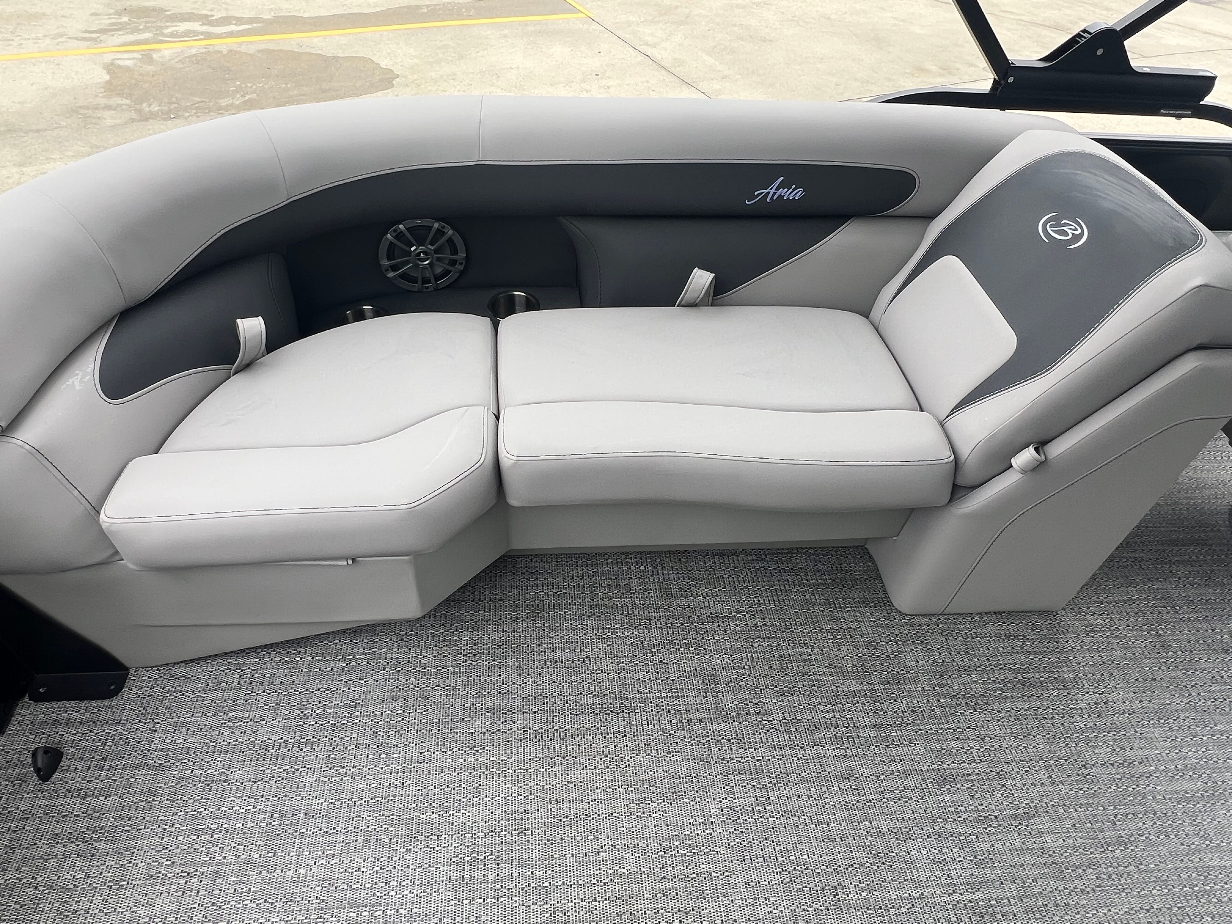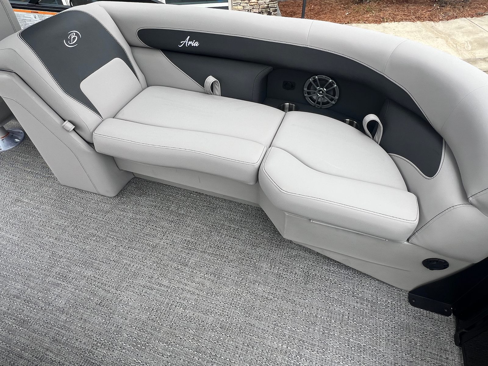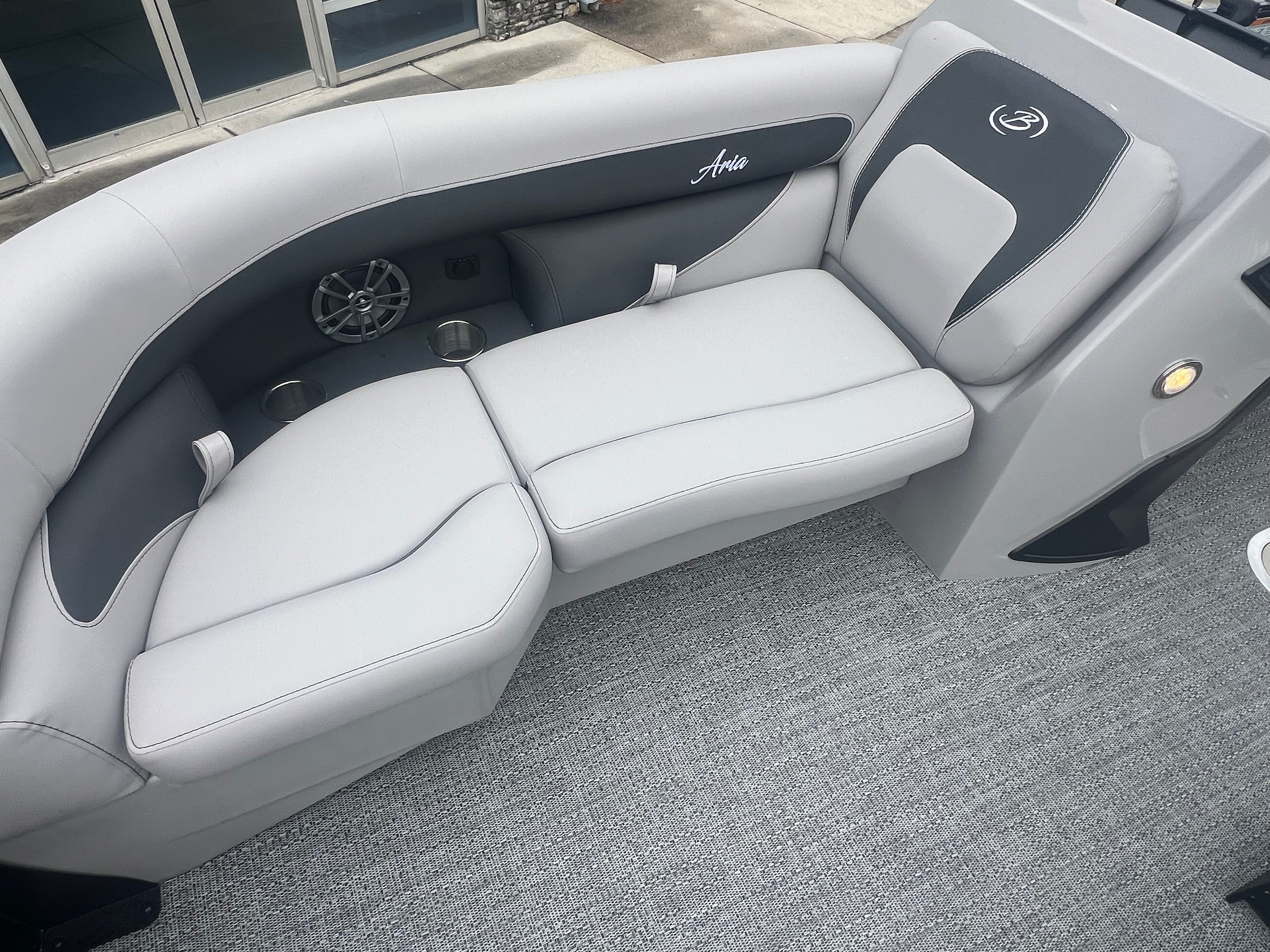 The 2026 Barletta Aria A22QC-Platinum is a brand-new pontoon boat that measures just over 21 feet in length, making it the ideal size for a wide range of boating activities. Its sleek and modern design is complemented by premium finishes and thoughtful details, ensuring you make a statement every time you hit the water. As a Barletta boat for sale, this model showcases the brand’s commitment to quality, comfort, and innovation, making it a top choice for families, friends, and boating enthusiasts alike.