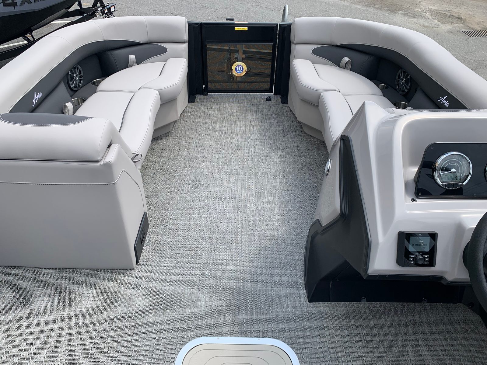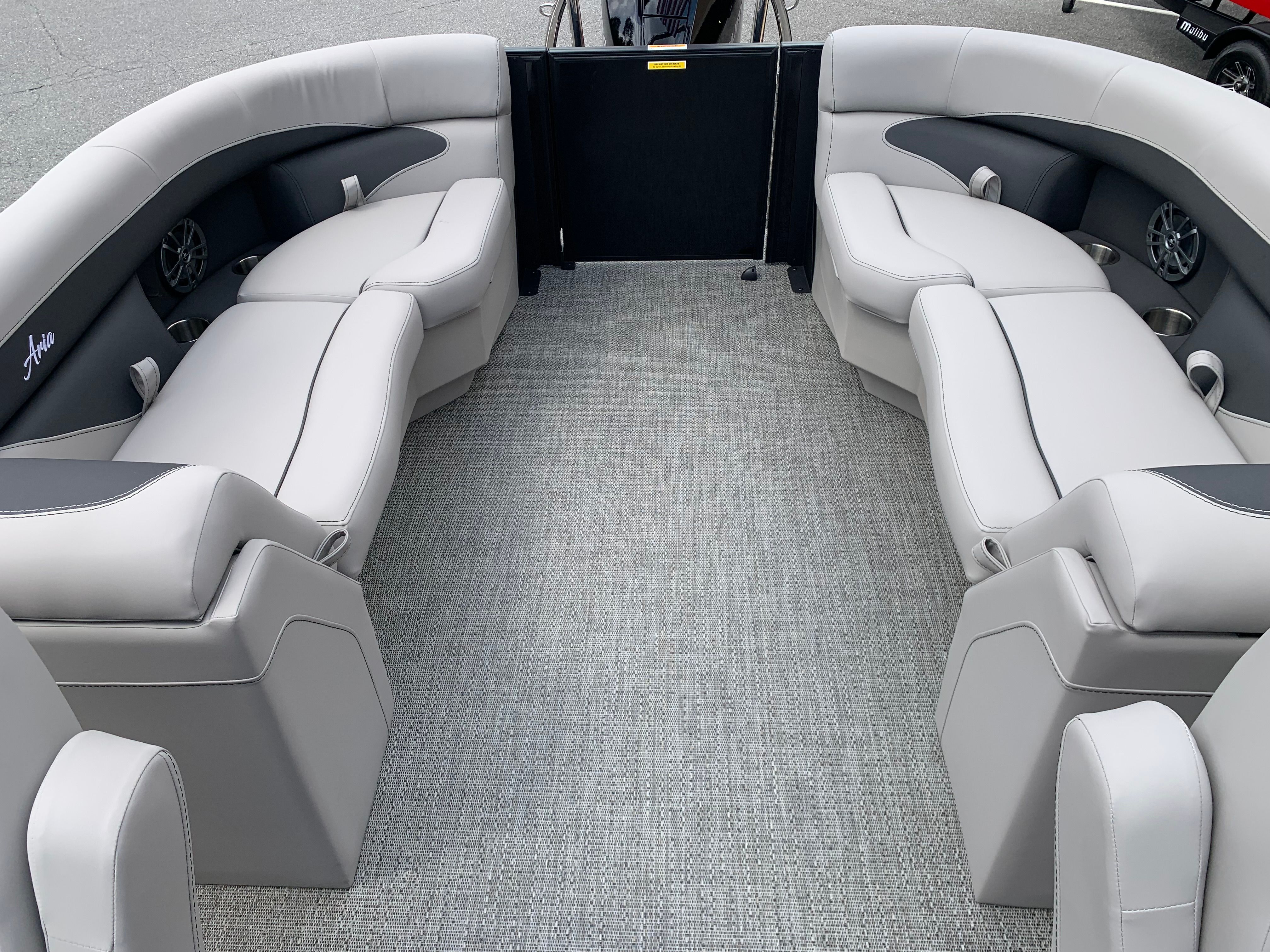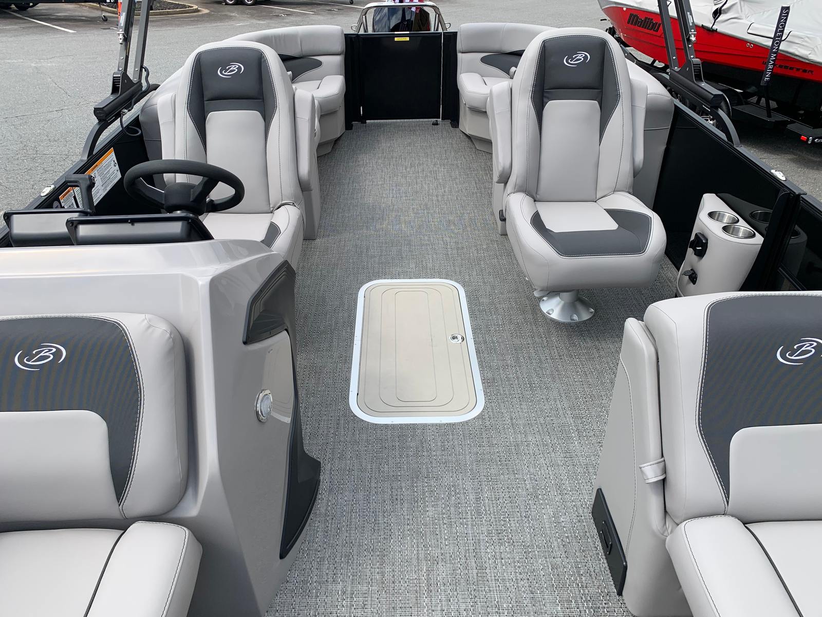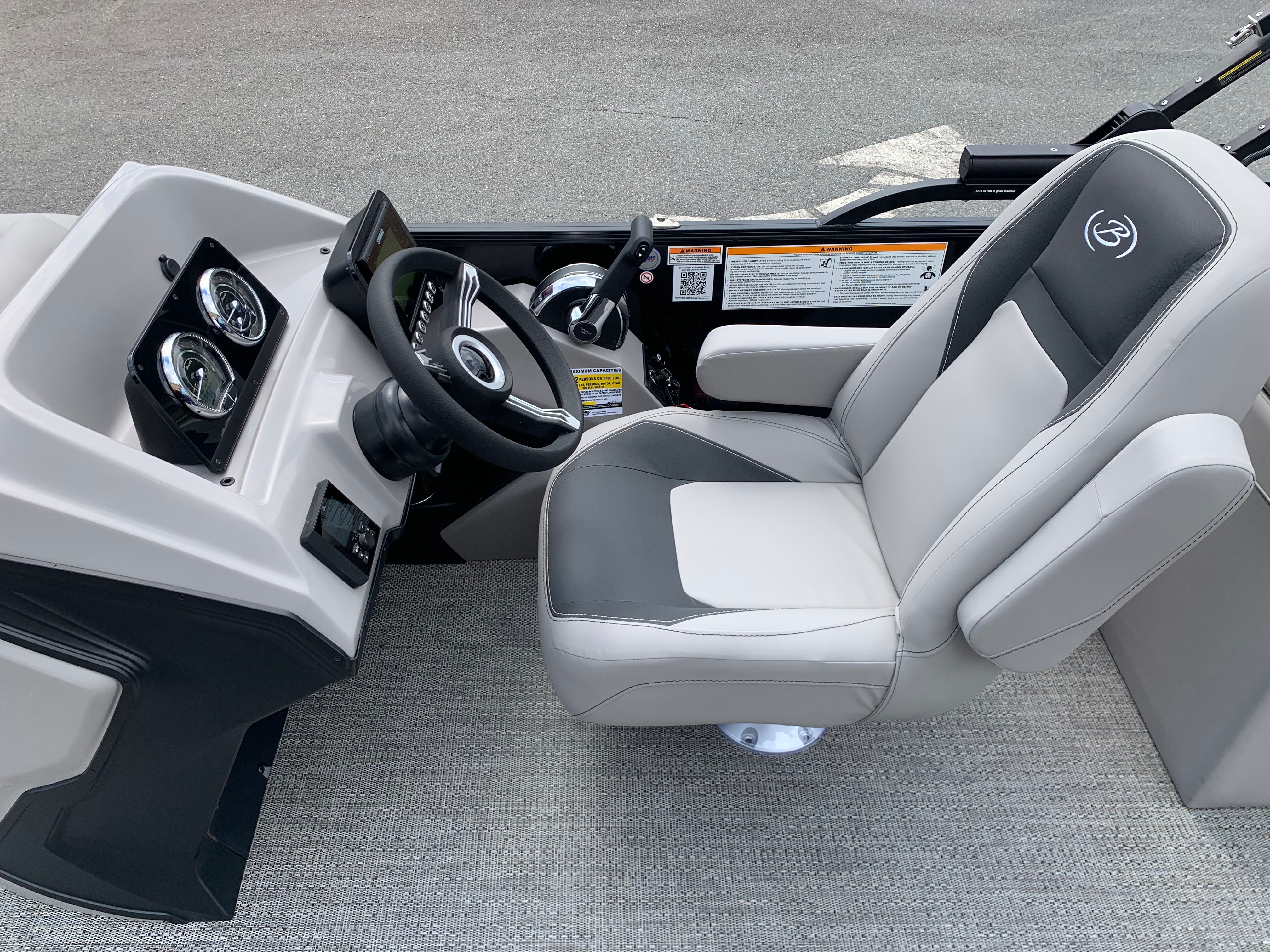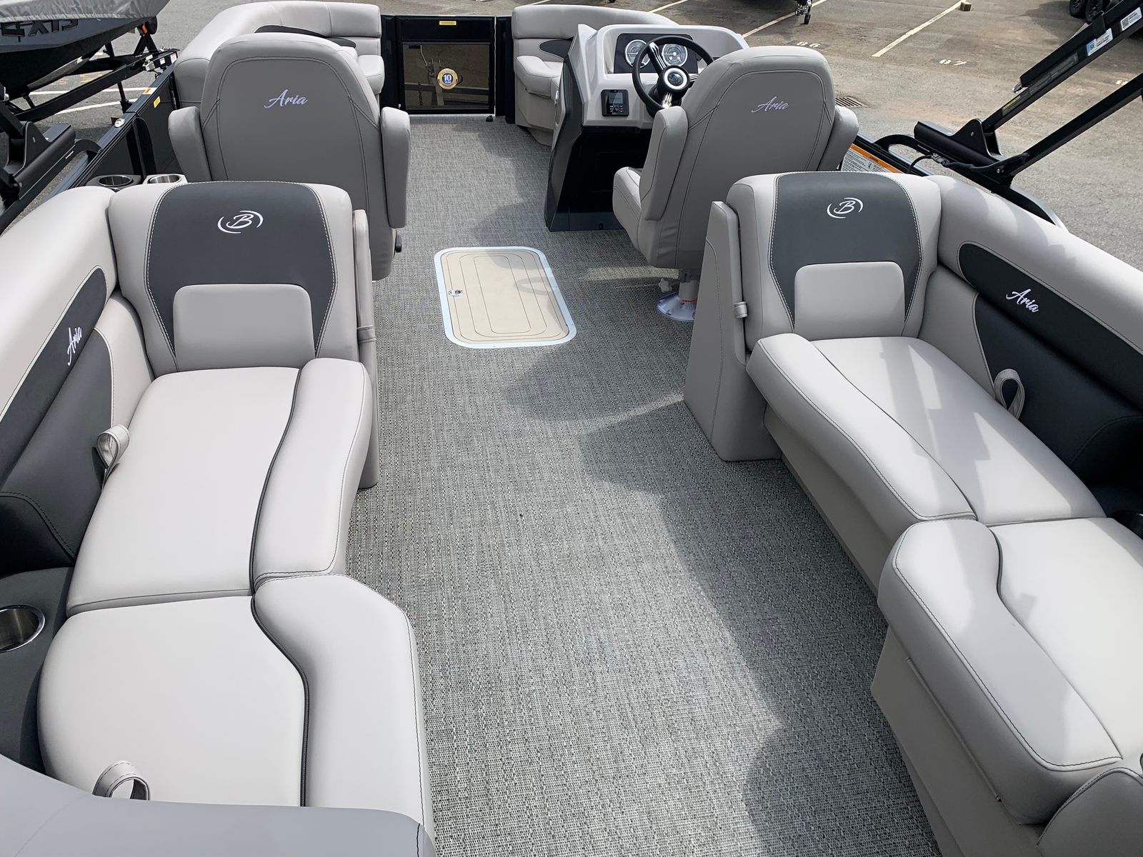 The Barletta Aria A22QC-Platinum is packed with premium features designed to enhance comfort, convenience, and style. The Blackout Package Aria offers a bold and contemporary aesthetic, while the Stainless Steel Flag Pole with American Flag adds a touch of patriotic flair to your vessel. At the helm, the Simrad 7" G07 XSE provides advanced navigation and system monitoring, keeping you informed and in control at all times.Inside, the Tempest Gray furniture creates a welcoming and luxurious atmosphere, perfect for relaxing or entertaining guests. The Triple Toon Package Aria not only improves stability and performance but also enables the inclusion of In Floor Midship Storage, offering ample space for gear, water toys, and personal belongings. Every detail is thoughtfully designed to ensure your time on the water is as enjoyable and stress-free as possible.