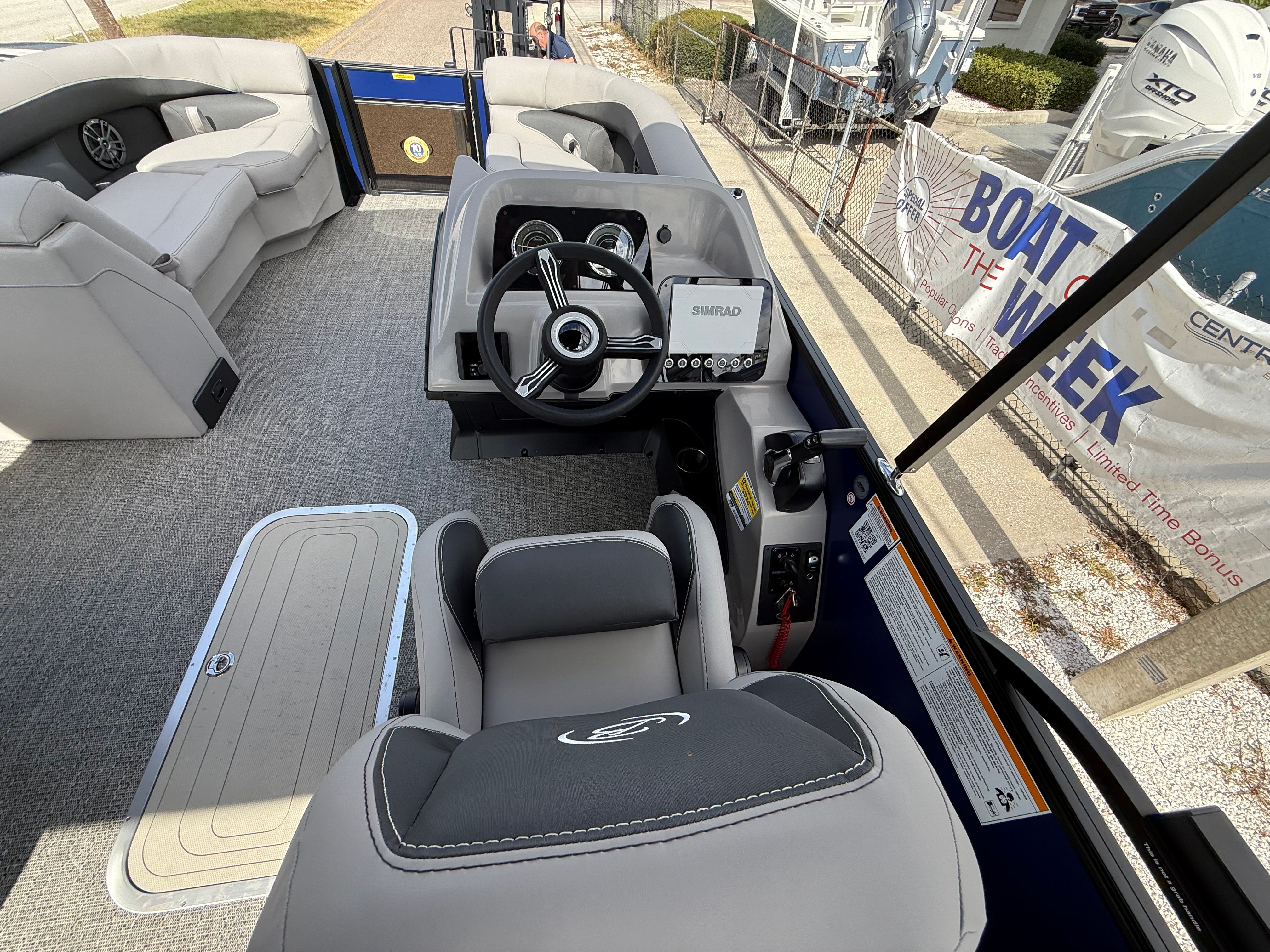 The Barletta Aria A22QC-Platinum is packed with features that elevate your boating experience. The Railskin Color Aria in Bohemian Blue, complemented by the Railskin Accent Aria in Winter White, creates a striking visual appeal that is sure to impress. The Blackout Package Aria adds a touch of sophistication, giving the boat a sleek and modern look. Inside, the Tempest Gray furniture offers both comfort and style, providing plush seating for all passengers. The Amore Gray flooring is not only visually appealing but also easy to clean and maintain, ensuring your pontoon always looks its best.As part of the Coastal Edition Aria, this pontoon is designed to withstand the elements, making it suitable for a variety of water environments. The Triple Toon Package Aria enhances the boat’s stability and performance, allowing for smoother rides and better handling. Every detail, from the railskin accents to the flooring and furniture, has been carefully selected to create a cohesive and inviting atmosphere on board.