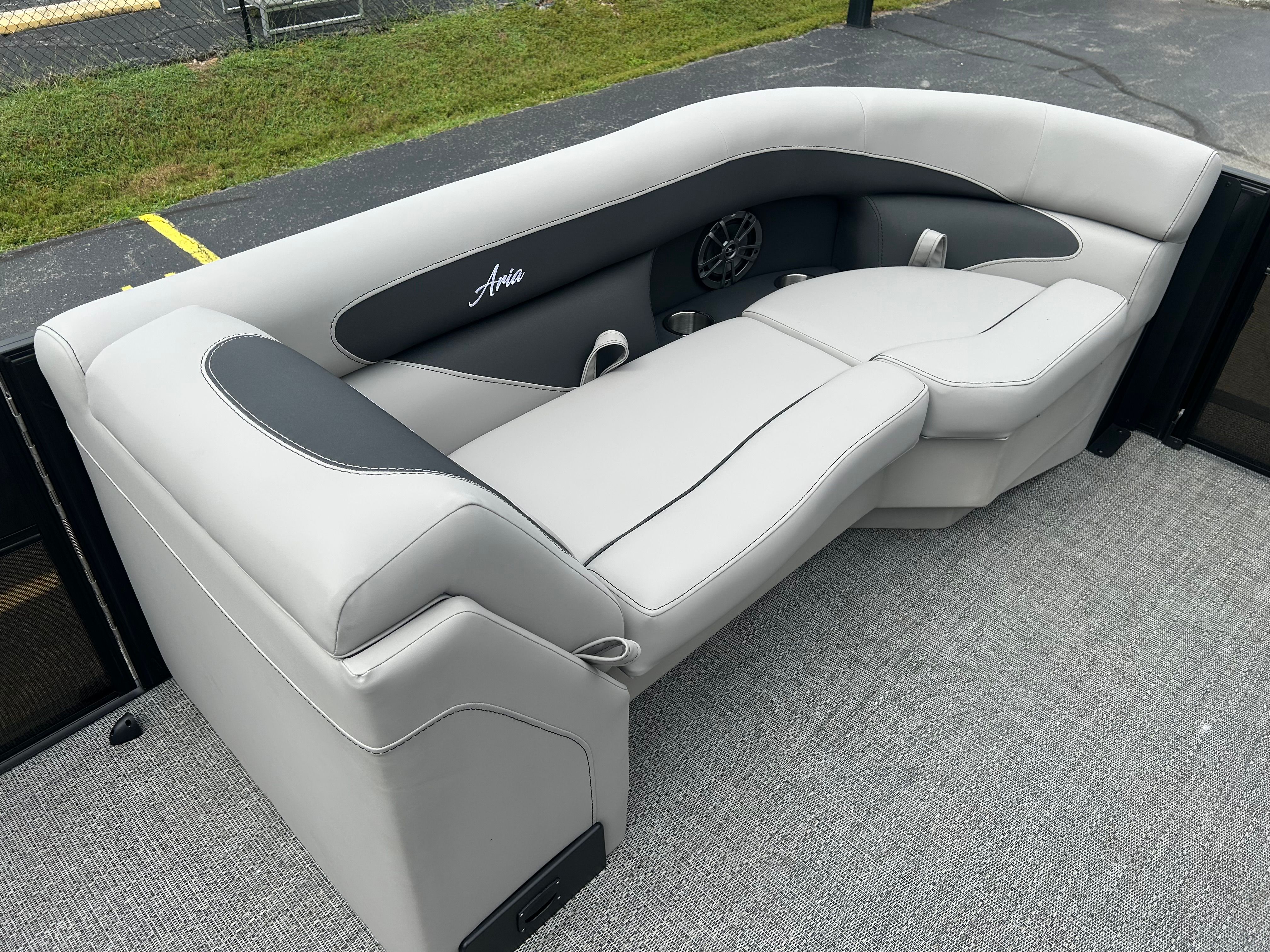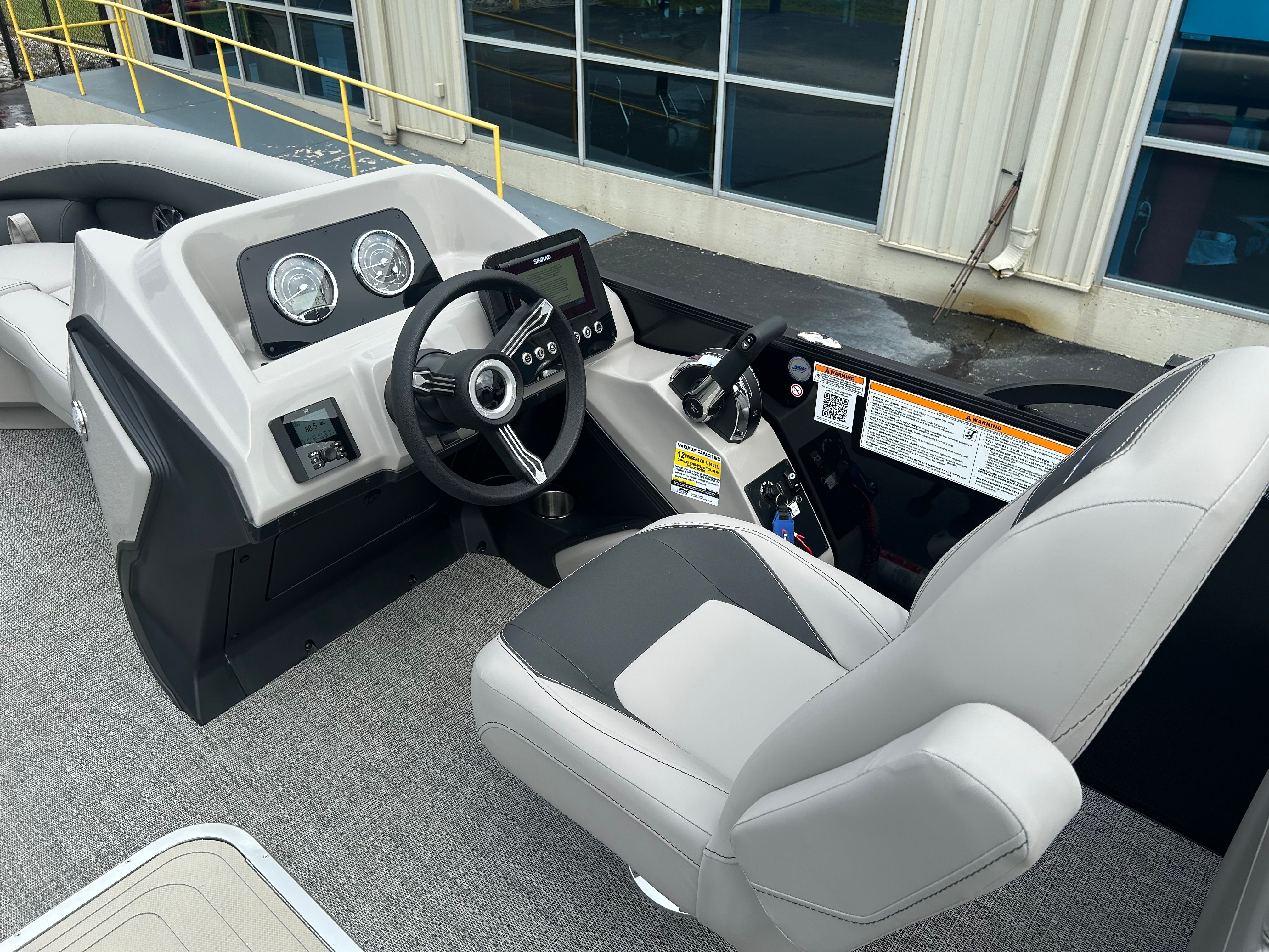 The Barletta Aria A22QC-Platinum is packed with features designed to elevate your boating experience. The Triple Toon Package Aria provides enhanced buoyancy and stability, making it ideal for a variety of water conditions. The furniture, finished in Tempest Gray, offers both comfort and contemporary style, creating an inviting space for relaxation and socializing. The Railskin Color Aria in Black Diamond, complemented by the Railskin Accent Aria in Gray Moonstone, gives this pontoon a striking and modern appearance. The Blackout Package Aria adds a touch of sophistication, ensuring your boat stands out wherever you go.The Amore Gray flooring is not only visually appealing but also practical, providing a durable and easy-to-clean surface that stands up to the demands of active days on the water. The Simrad 7" G07 XSE navigation system brings advanced technology to your fingertips, offering intuitive controls and clear displays to help you navigate with confidence.