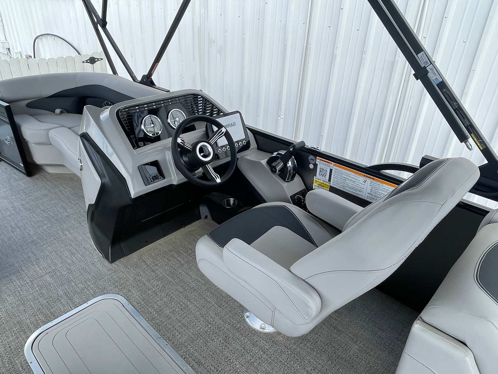 At the heart of the Barletta Aria A22QC-Platinum is a powerful Mercury (M) 200L FourStroke engine, delivering a robust 200 horsepower for exhilarating performance. Whether you are cruising at a leisurely pace or picking up speed for watersports, this engine offers smooth, reliable power and impressive fuel efficiency. The pre-rigged Mercury mechanical system with power assist ensures effortless handling and precise control, making every journey enjoyable and stress-free. The stainless steel prop adds durability and performance, ensuring that your pontoon glides seamlessly through the water.