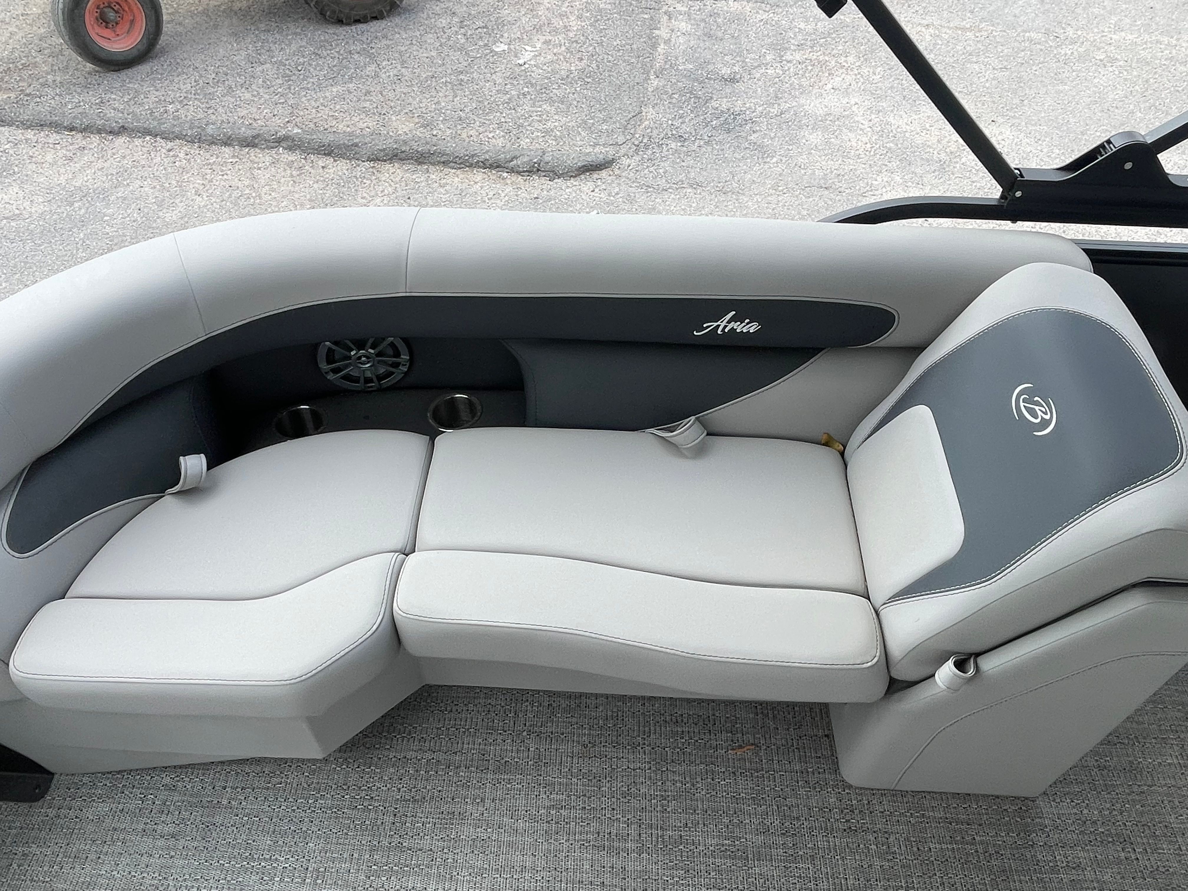 The 2026 Barletta Aria A22QC-Platinum is a brand-new pontoon boat that measures just over 21 feet in length, making it the perfect size for both intimate family gatherings and lively social events. Its sleek profile and contemporary lines are accentuated by the Gray Moonstone Railskin color, giving it a sophisticated yet inviting presence on the water. The Blackout Package Aria further enhances its modern aesthetic, ensuring that this Barletta boat for sale turns heads wherever it goes.