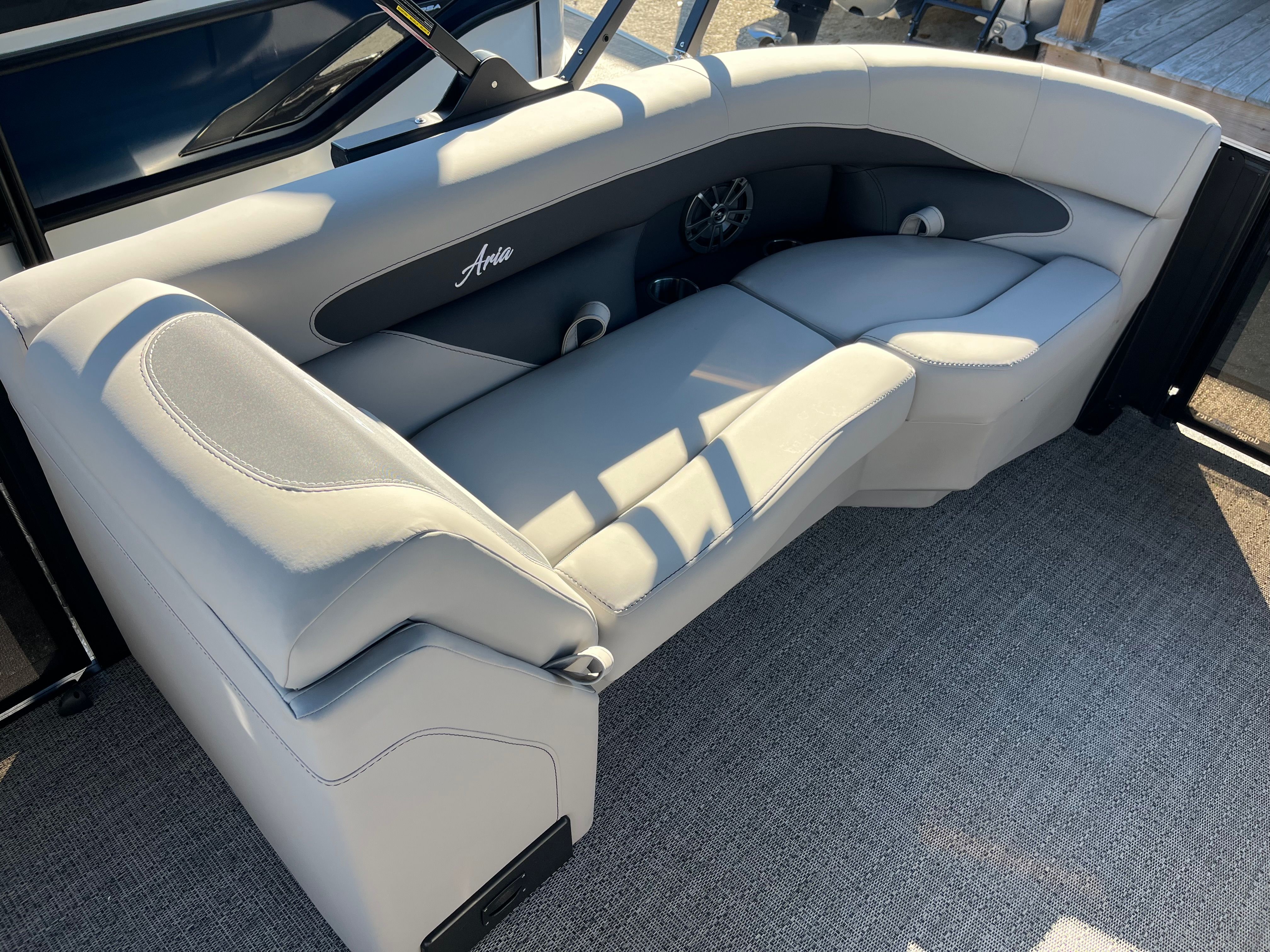 The Barletta Aria A22QC-Platinum is packed with features designed to enhance your time on the water. Its spacious layout provides plenty of room for passengers to relax, socialize, and enjoy the scenery. The high-quality construction and attention to detail are evident in every aspect of this pontoon boat, from the plush seating to the stylish finishes. The thoughtful design ensures that every inch of the 21-foot deck is optimized for comfort and convenience, making it easy to entertain guests or unwind with family.Special features of the Aria A22QC-Platinum include a premium seating arrangement that maximizes both comfort and functionality. The open deck plan allows for easy movement throughout the boat, while the quality materials and craftsmanship ensure durability and longevity. The pontoon’s sleek exterior and modern accents give it a sophisticated look that will turn heads at any marina or dock.
