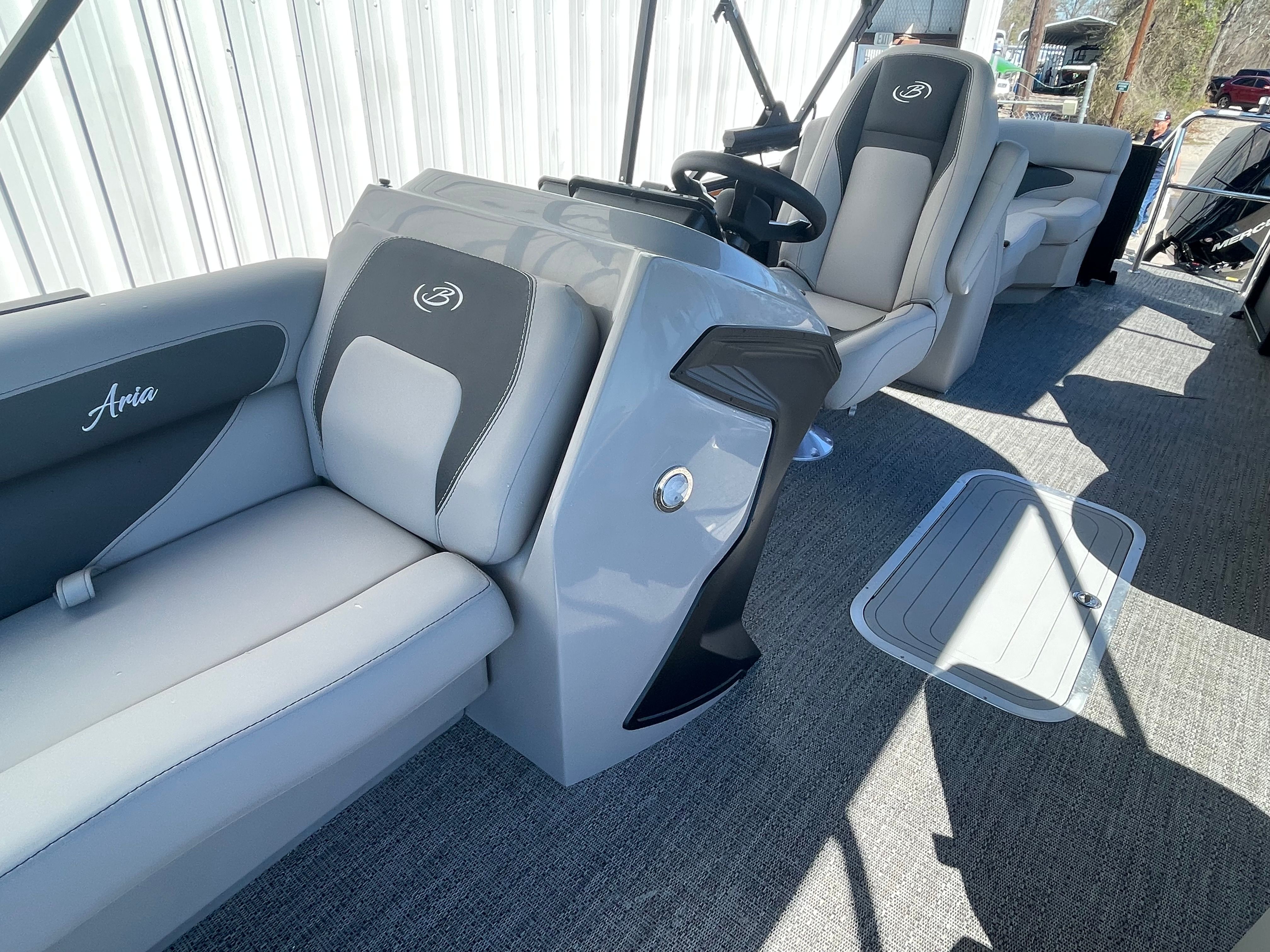 The 2026 Barletta Aria A22QC-Platinum is meticulously crafted to offer a premium boating experience. Its spacious 21-foot deck is thoughtfully designed to maximize comfort and social interaction, providing ample room for friends and family to relax and enjoy the ride. The plush seating arrangements invite you to unwind, while the high-quality construction ensures durability and longevity for years of fun on the water.This pontoon boat’s layout is perfect for entertaining, with plenty of open space for mingling, sunbathing, or enjoying a picnic on the water. The sleek, modern lines of the Aria A22QC-Platinum are complemented by its platinum finish, giving it a sophisticated look that is sure to turn heads at the marina. Every detail, from the sturdy rails to the ergonomic helm, reflects Barletta’s commitment to quality and innovation.