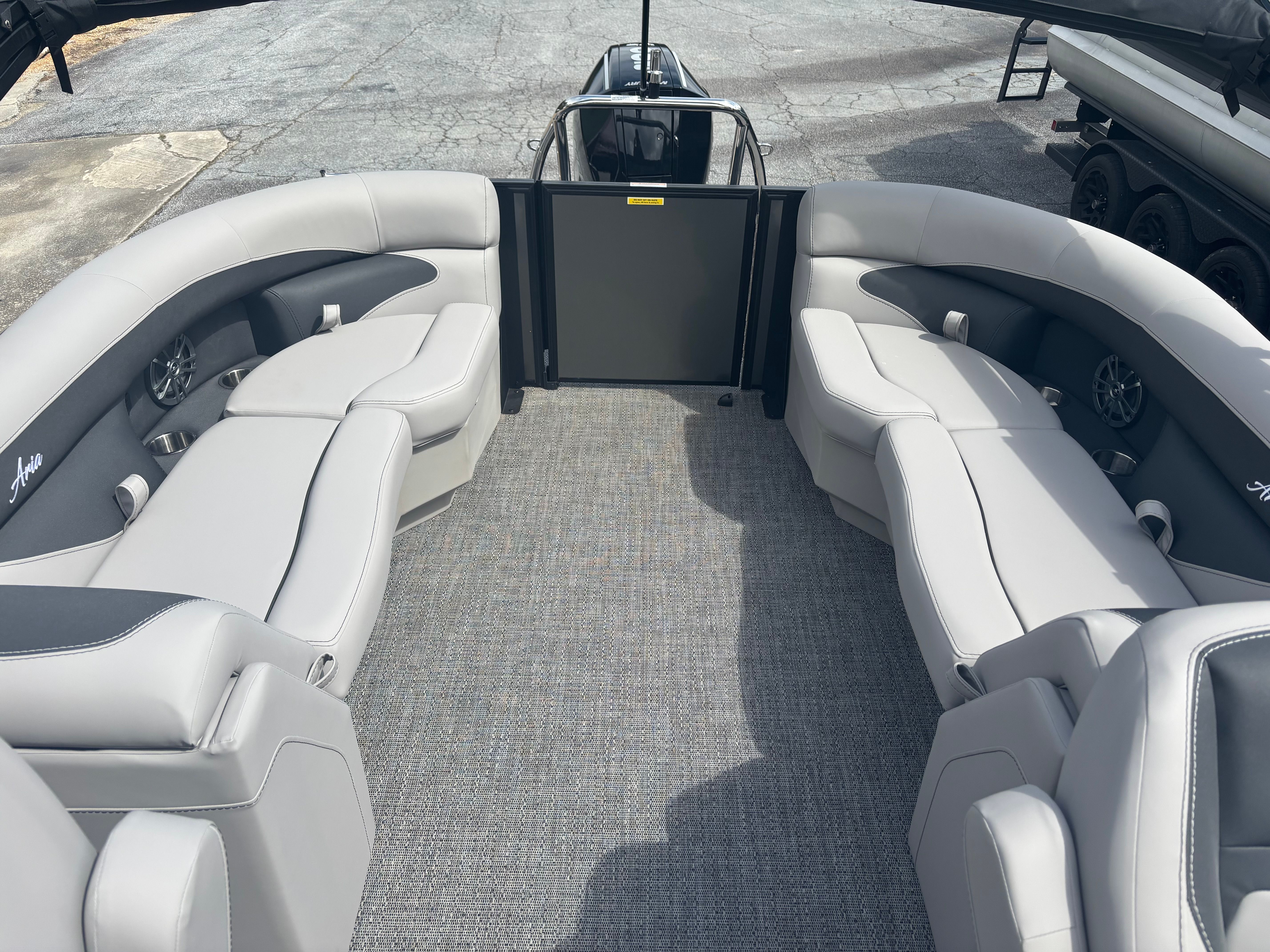 This Barletta pontoon boat for sale is perfect for a wide range of activities and occasions. Imagine spending a sunny afternoon cruising with family, sharing laughter and stories as you glide across the water. The spacious deck is ideal for hosting gatherings, from casual get-togethers to celebratory events. Fishing enthusiasts will appreciate the stability and ample space for casting lines and storing gear, while those seeking relaxation can stretch out on the comfortable seating and soak up the sun.The Aria A22QC-Platinum also excels as a platform for luxury getaways, offering a private retreat where you can unwind and enjoy the beauty of nature. Whether you’re exploring hidden coves, anchoring for a swim, or simply drifting with the current, this pontoon boat provides the perfect setting for creating lasting memories.