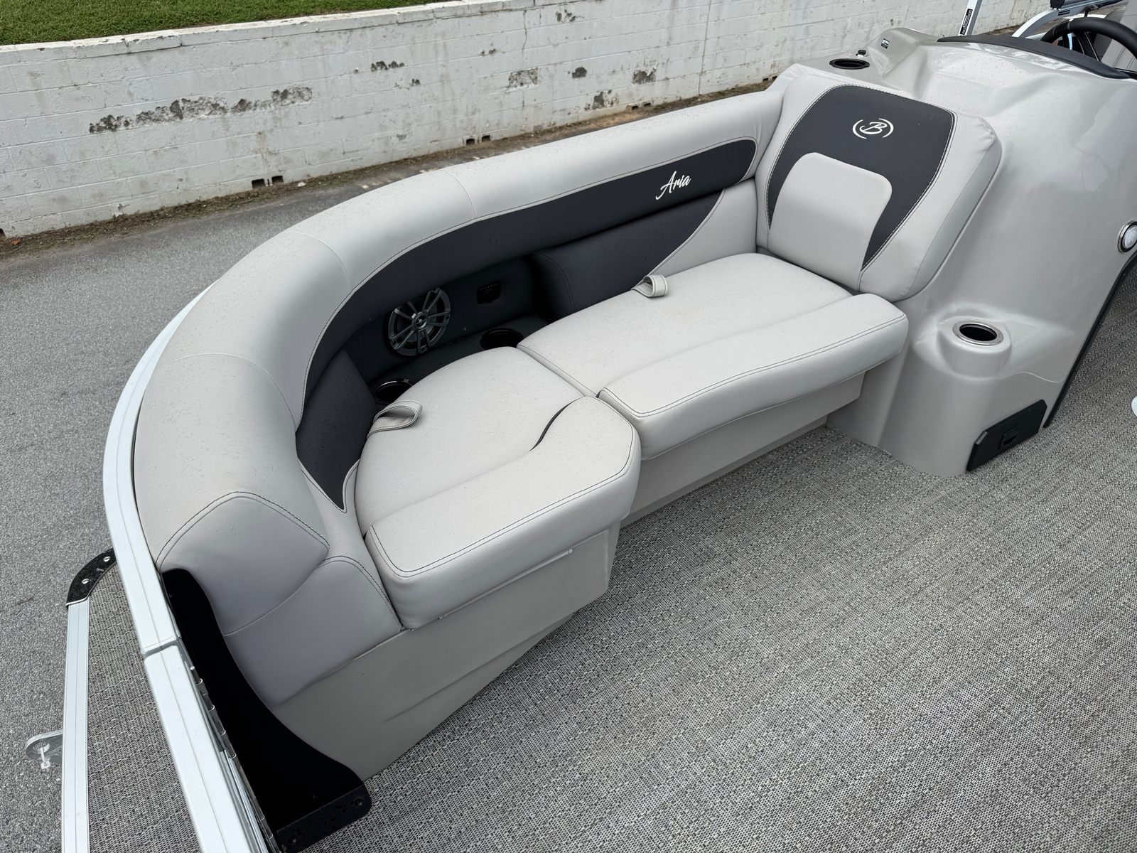 The 2025 Barletta Aria A22QC is packed with features that elevate your boating experience. The Hook 5 GPS provides advanced navigation capabilities, ensuring you always know your position and can chart your course with precision. The flooring is finished in Amore Gray, offering a sleek, contemporary look that’s both stylish and easy to maintain. The Railskin Color Aria in Blue Sapphire adds a touch of elegance and sophistication, making this pontoon boat stand out wherever you go.Inside, the furniture is upholstered in Tempest Gray, creating a comfortable and inviting atmosphere for you and your guests. The stainless steel flag pole with an American flag is a proud statement of craftsmanship and patriotism, while the in-floor midship storage offers ample space to stow away gear, water toys, and personal items, keeping the deck clutter-free and organized.