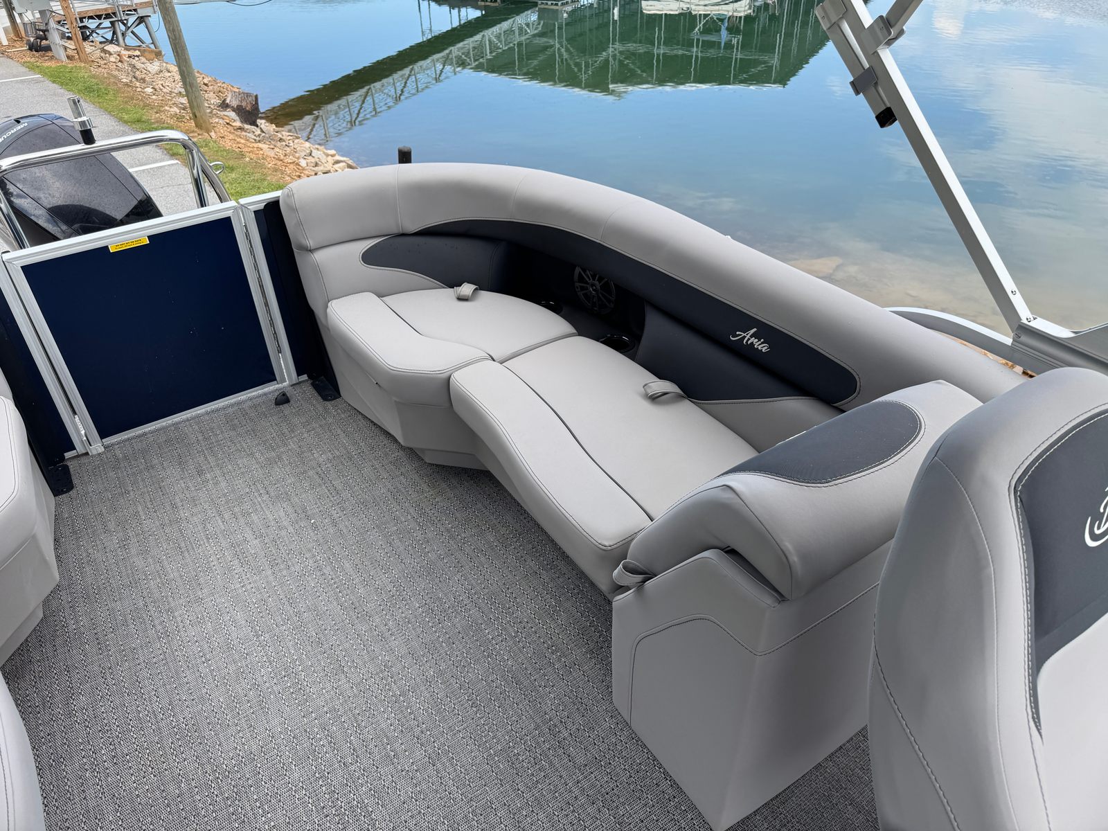 The Barletta Aria A22QC is designed with practicality in mind. Its generous storage solutions make it easy to keep your essentials organized and accessible, while the efficient Mercury engine ensures you spend less time refueling and more time enjoying the water. Docking is a breeze thanks to the boat’s manageable size and responsive handling, making it suitable for a variety of marinas and waterfronts.The durable Amore Gray flooring is not only attractive but also easy to clean, so you can focus on having fun rather than worrying about maintenance. The pontoon’s layout is ideal for hosting gatherings, with plenty of seating and open space for guests to move around comfortably. Whether you’re planning a quiet morning of fishing or a lively afternoon of swimming and water sports, this Barletta boat for sale adapts to your needs with ease.