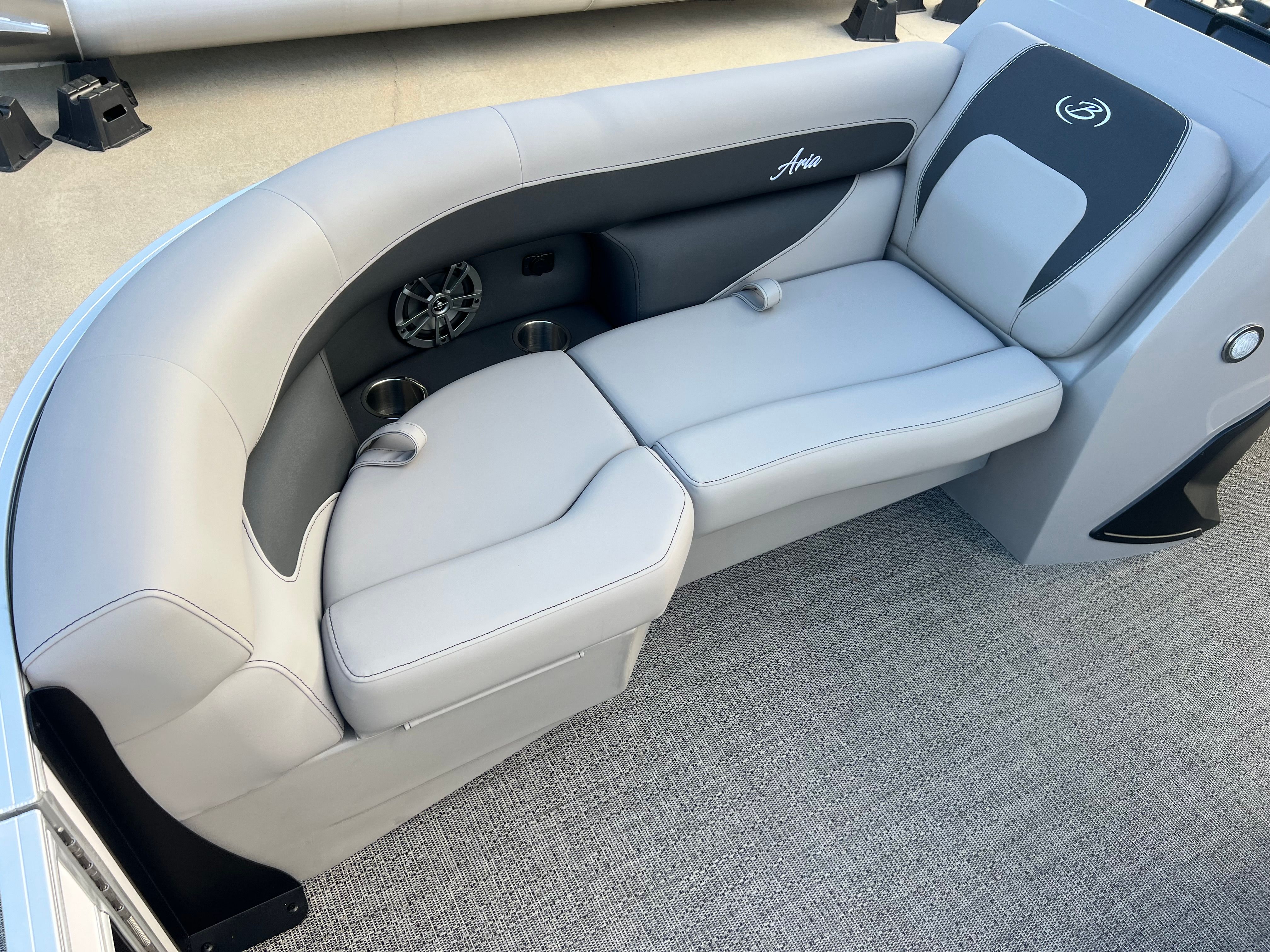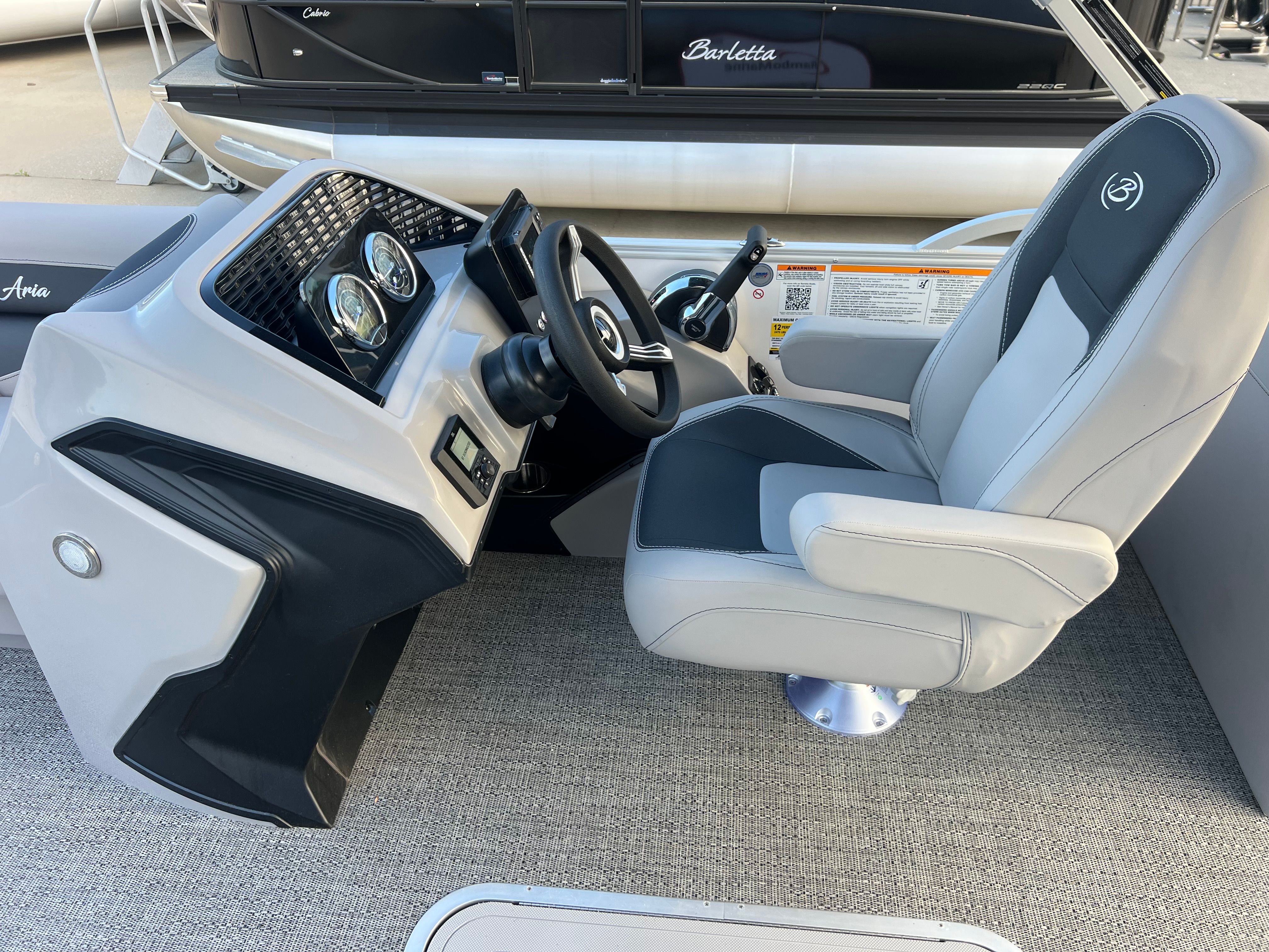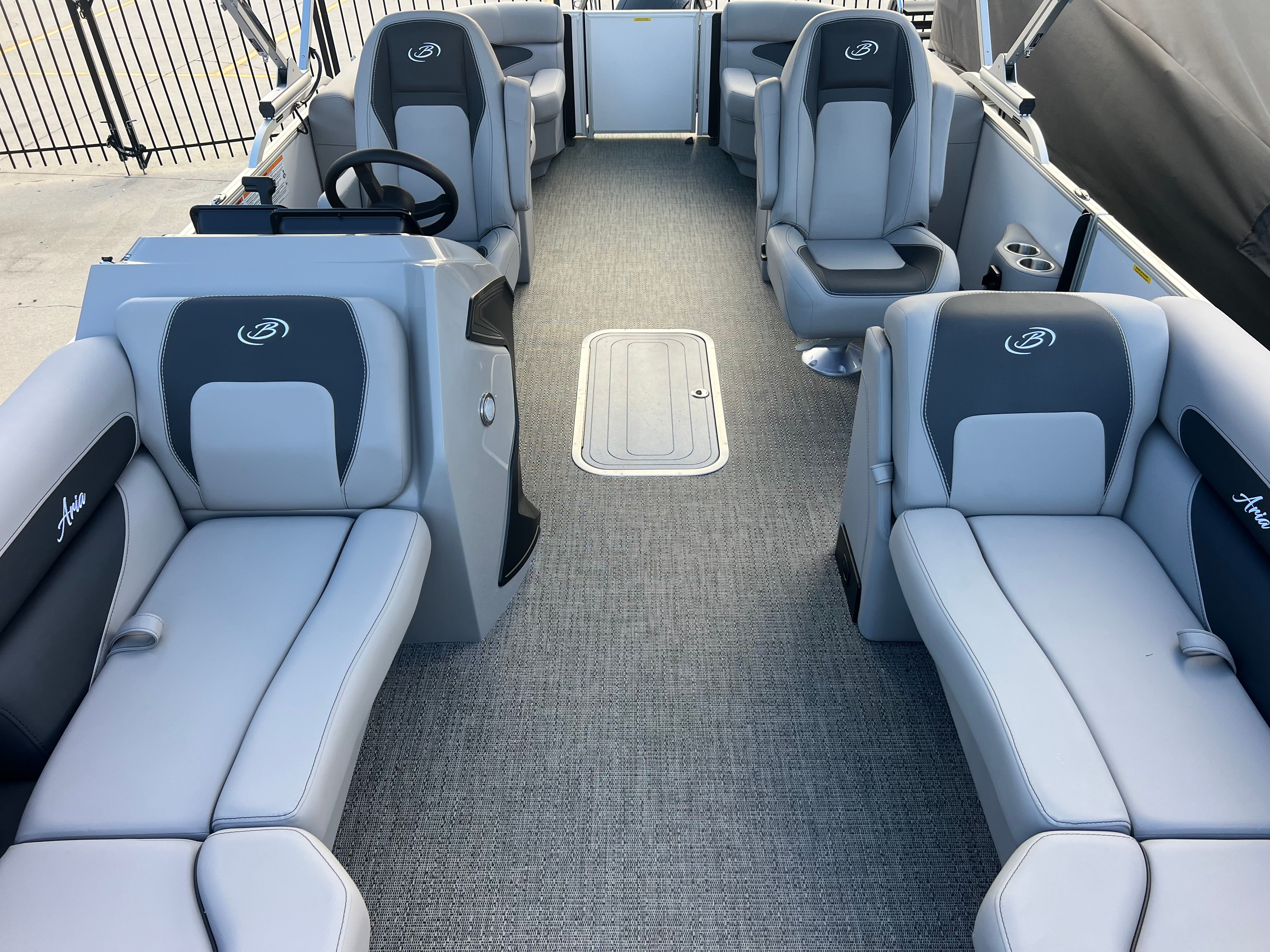 Owning the Barletta Aria A22QC means embracing a lifestyle filled with fun, relaxation, and unforgettable moments. The spacious layout is ideal for socializing, allowing guests to lounge comfortably while enjoying panoramic views. The plush Tempest Gray furniture invites you to unwind, whether you are basking in the sun or sharing laughter with friends. The Amore Gray flooring is not only stylish but also practical, designed to withstand the elements and provide a safe, slip-resistant surface.The Triple Toon Package Aria ensures a stable platform, making it easy for everyone to move about the boat with confidence. The powerful Mercury engine offers the thrill of speed when you want it, yet operates quietly and efficiently for peaceful cruising. With the in-floor midship storage, you can bring along everything you need for a day of adventure without sacrificing space or comfort.
