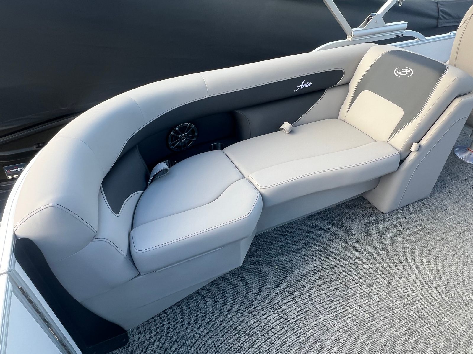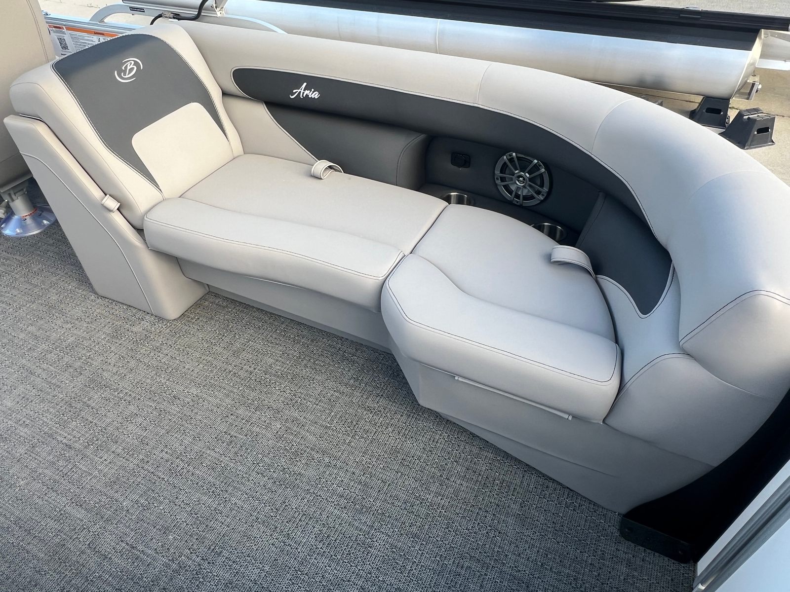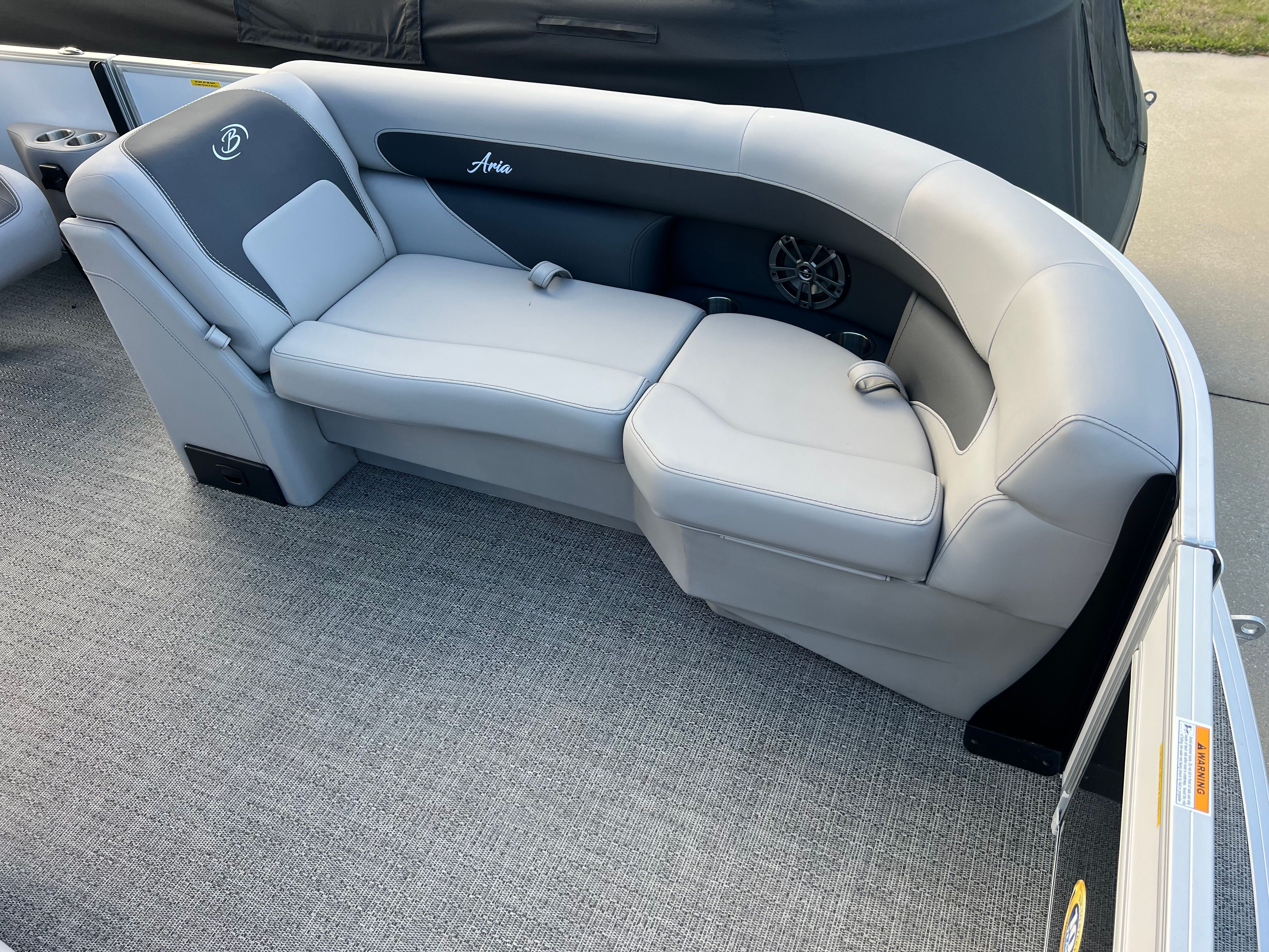 Owning the Barletta Aria A22QC means embracing a lifestyle filled with fun, relaxation, and unforgettable moments. The spacious layout is ideal for socializing, allowing guests to lounge comfortably while enjoying panoramic views. The plush Tempest Gray furniture invites you to unwind, whether you are basking in the sun or sharing laughter with friends. The Amore Gray flooring is not only stylish but also practical, designed to withstand the elements and provide a safe, slip-resistant surface.The Triple Toon Package Aria ensures a stable platform, making it easy for everyone to move about the boat with confidence. The powerful Mercury engine offers the thrill of speed when you want it, yet operates quietly and efficiently for peaceful cruising. With the in-floor midship storage, you can bring along everything you need for a day of adventure without sacrificing space or comfort.