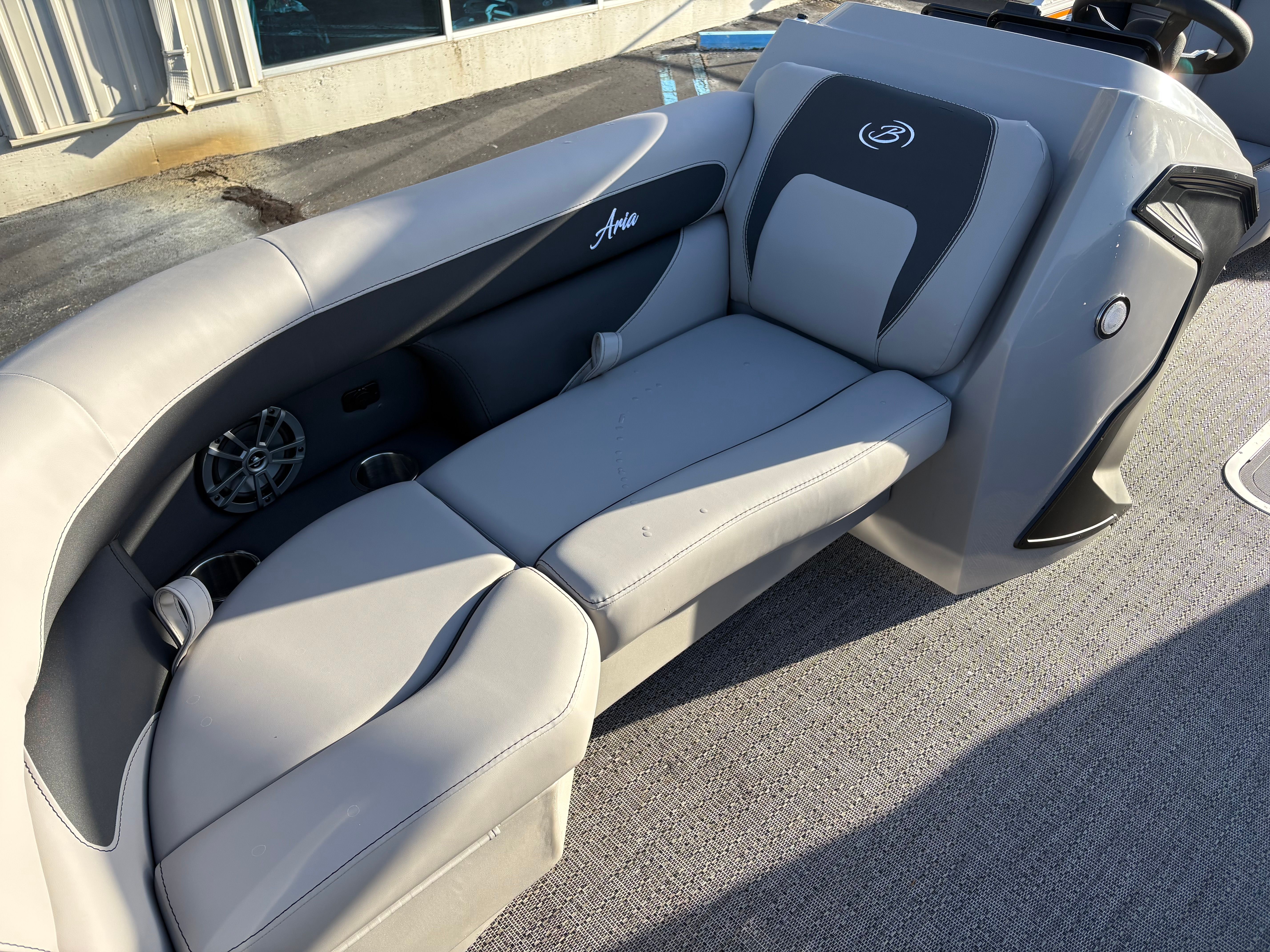 Step aboard the Barletta Aria A22QC and discover a world of thoughtful features designed to enhance your boating experience. The Railskin Color Aria in Blue Sapphire gives this pontoon a striking visual appeal, while the Tempest Gray furniture offers plush seating and a modern aesthetic. The Amore Gray flooring is both stylish and practical, providing a comfortable surface that’s easy to maintain.One of the standout features is the In Floor Midship Storage, offering ample space to stow away gear, water toys, or personal items, keeping the deck clutter-free and organized. The On Board Battery Charger - Single Battery ensures your pontoon is always ready for adventure, while the Stainless Steel Flag Pole with American Flag adds a touch of patriotic flair and elegance.