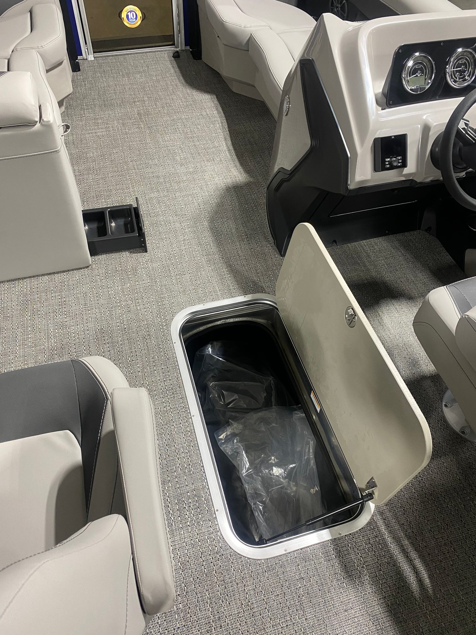 The Barletta Aria A22QC is loaded with special features designed to maximize comfort, convenience, and enjoyment. The Bohemian Blue Railskin color gives the exterior a vibrant, modern look, while the Tempest Gray furniture and Amore Gray flooring create a luxurious and relaxing interior. The Triple Toon Package Aria adds an extra layer of stability and buoyancy, making this pontoon perfect for larger groups and active outings.For those who appreciate thoughtful details, the stainless steel flag pole with an American flag adds a patriotic touch to your boating experience. The in-floor midship storage (available with the Triple Toon Package) provides ample space for gear, water toys, and personal items, keeping the deck clutter-free and organized. The helm is equipped with the Eagle 5 GPS, offering advanced navigation capabilities to help you explore new waters with confidence.