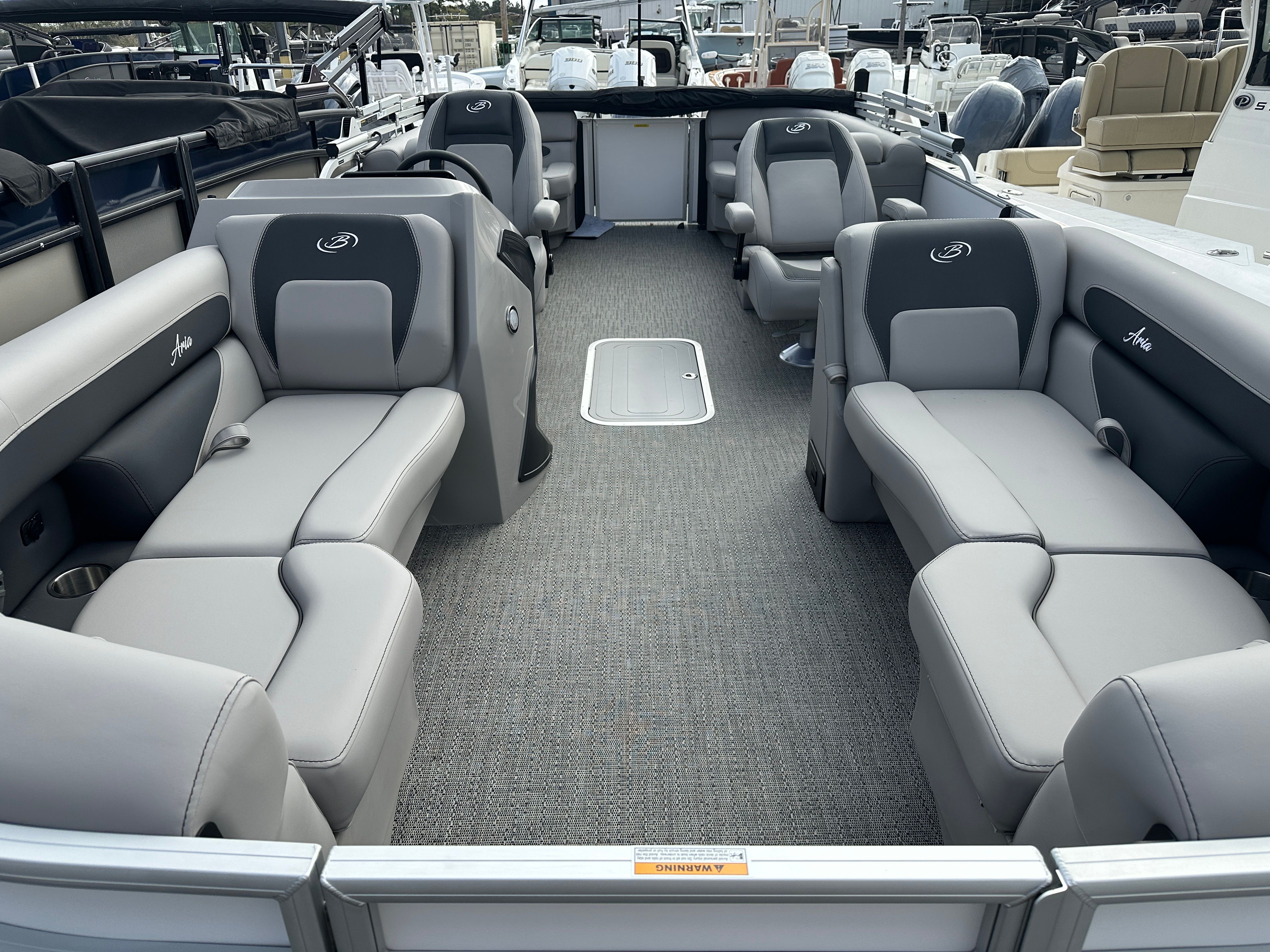 The 2026 Barletta Aria A22QC is packed with features designed to maximize comfort, convenience, and enjoyment. The Tempest Gray furniture provides plush, supportive seating for all your guests, while the Amore Gray flooring offers a stylish and slip-resistant surface that is easy to maintain. The Coastal Edition Aria package brings added flair and resilience, perfect for those who love to explore a variety of aquatic environments.One of the standout features of this pontoon is the Triple Toon Package Aria, which enhances stability and performance, especially when carrying larger groups or cruising at higher speeds. The in-floor midship storage, made possible by the triple toon design, offers ample space for stowing water toys, life jackets, and other essentials, keeping the deck clutter-free and organized.Additional touches like the stainless steel flag pole with an American flag add a sense of pride and personality to your vessel, making it a true reflection of your boating lifestyle. The rigging includes a stainless steel prop, ensuring durability and peak performance throughout your boating adventures.