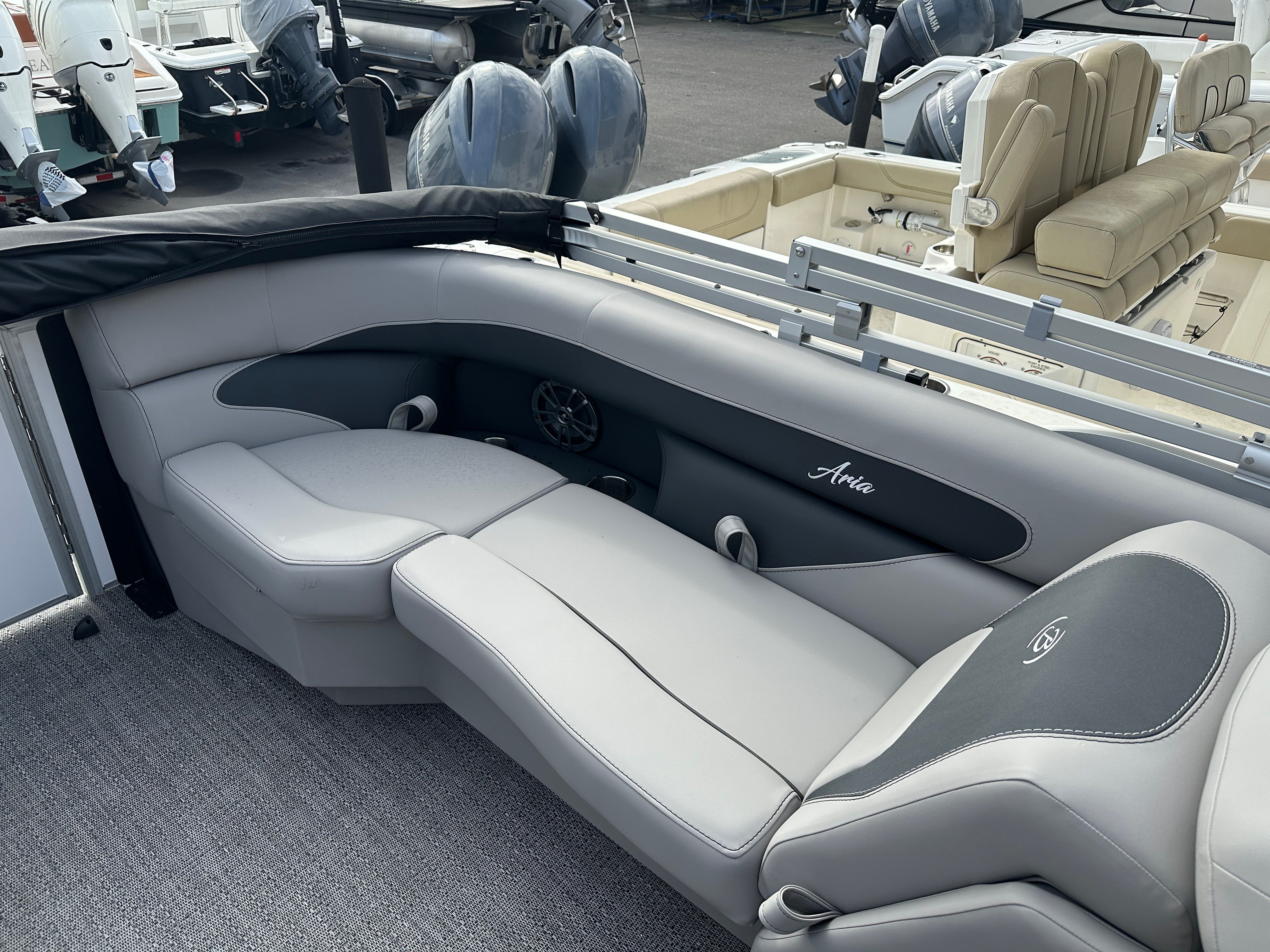 Powering this pontoon is a reliable Yamaha F150LD engine, delivering an impressive 150 horsepower. This engine is renowned for its smooth operation, fuel efficiency, and robust performance, making it ideal for both leisurely cruises and more spirited rides across the water. The pre-rigged Yamaha mechanical setup ensures seamless integration and optimal handling, while the stainless steel prop enhances both speed and maneuverability. Whether you are gliding across calm waters or navigating busier waterways, the Aria A22QC offers a responsive and exhilarating ride.