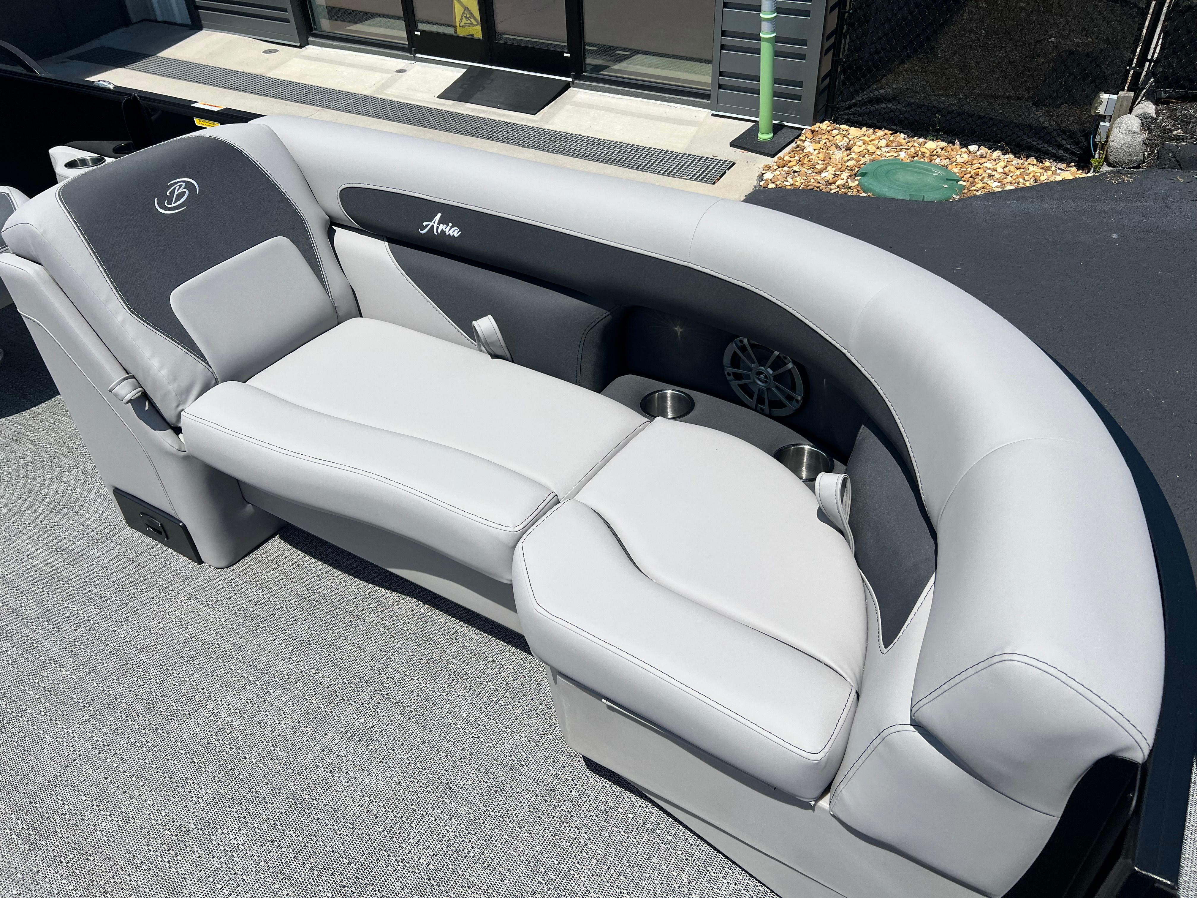 The Barletta Aria A22QC is packed with premium features that set it apart from other pontoon boats for sale. The Triple Toon Package Aria provides added buoyancy and stability, making it ideal for larger groups and active days on the water. The Railskin Packages, including the Blackout Package Aria and Gray Moonstone accent, give the boat a modern, upscale look, while the Black Diamond color adds a touch of sophistication. The Eagle 5 GPS ensures accurate navigation and peace of mind, whether you’re exploring new waterways or returning to your favorite spot.A stainless steel flag pole with an American flag adds a patriotic flair, perfect for holiday outings and special occasions. The Tempest Gray furniture offers plush seating and a contemporary aesthetic, inviting you and your guests to relax in style. In-floor midship storage provides convenient space for stowing gear, water toys, and essentials, keeping the deck clutter-free and organized.