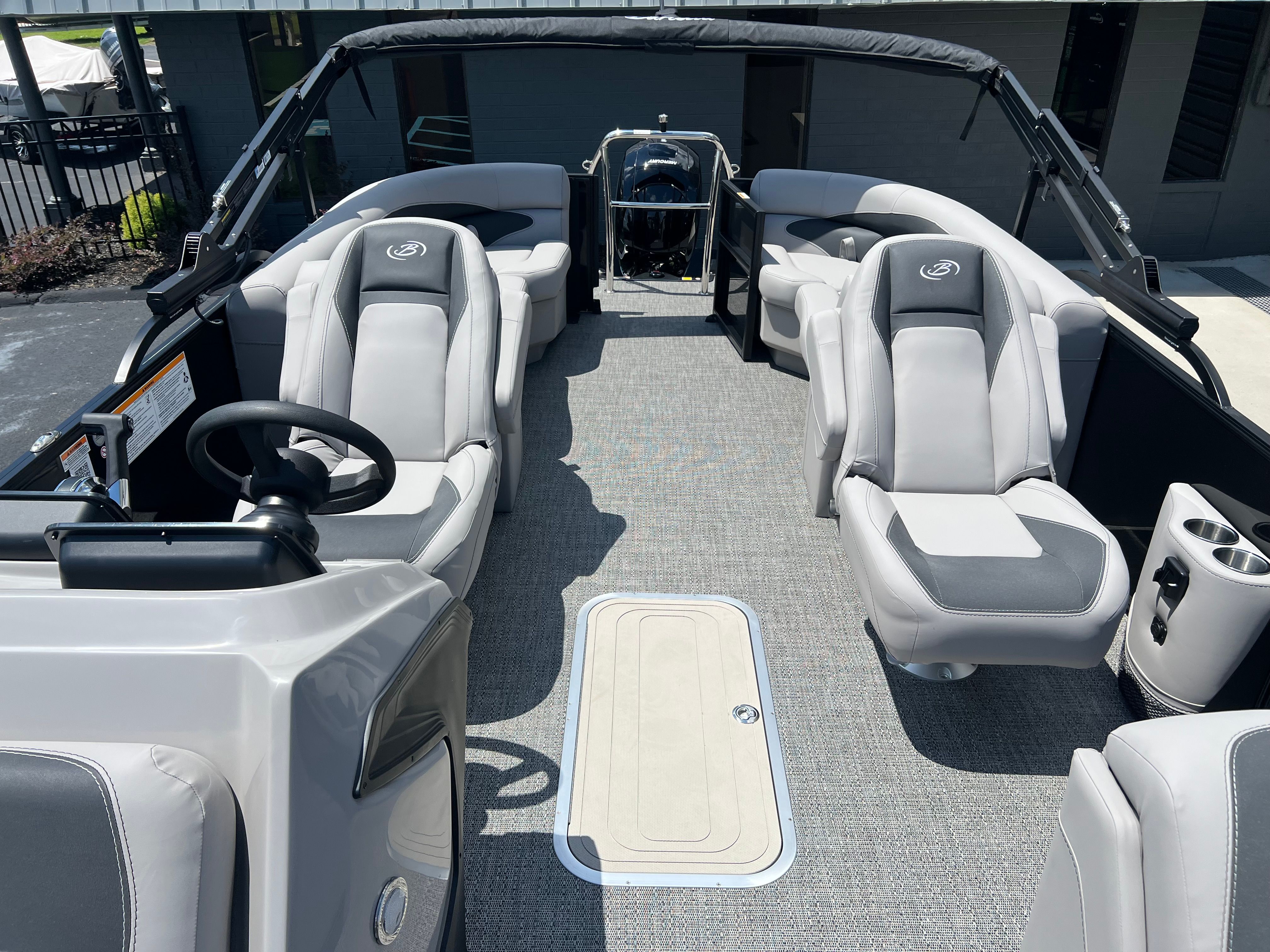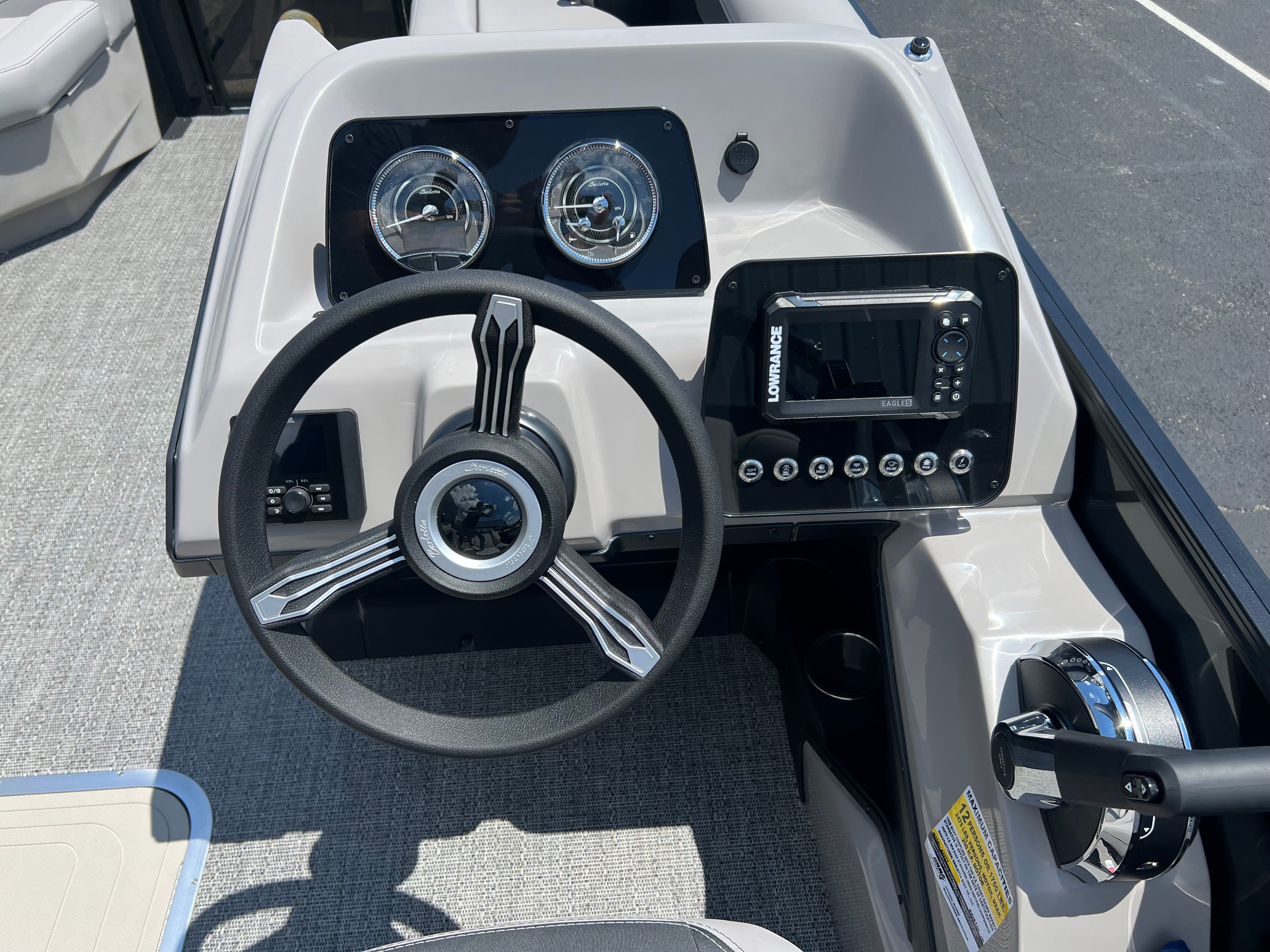 The Barletta Aria A22QC Pontoon is as practical as it is luxurious. The in-floor midship storage provides ample room for life jackets, fishing gear, and other essentials, making it easy to keep your boat organized and ready for any activity. The sturdy construction and Triple Toon Package Aria ensure stability when docking, loading, or unloading, while the efficient Mercury engine helps you make the most of your time on the water.This pontoon boat for sale is perfect for those who value convenience and ease of ownership. The intuitive layout and thoughtful features make it simple to prepare for a day out, whether you’re planning a quick afternoon cruise or a full day of fun. The Eagle 5 GPS streamlines navigation, while the stylish Railskin packages require minimal maintenance to keep your boat looking its best.