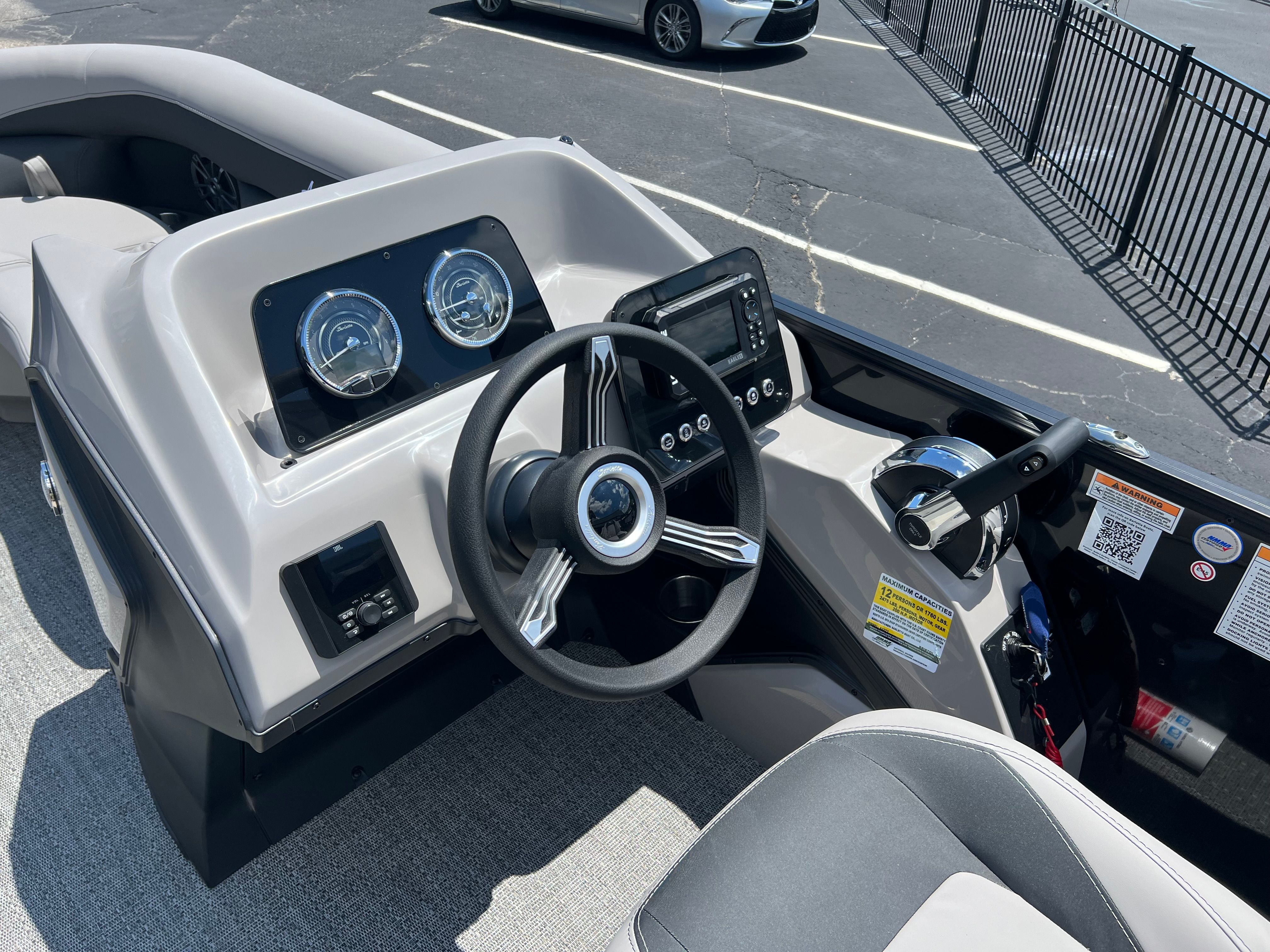 The Barletta Aria A22QC shines in a variety of scenarios, making it a versatile choice for any boater. Imagine gathering your family for a sun-soaked day of swimming, tubing, and picnicking, with plenty of space for everyone to relax and play. Host unforgettable parties with friends, enjoying music, snacks, and laughter as you cruise your favorite waterways. For those who love fishing, the stable platform and ample storage make it easy to bring along all your gear and enjoy a peaceful morning on the lake.This Barletta boat for sale is also perfect for luxury getaways, offering a comfortable and stylish retreat for couples or small groups. The elegant design and premium features create an inviting atmosphere, whether you’re celebrating a special occasion or simply escaping the everyday routine. With its patriotic flag pole and sophisticated Railskin packages, the Aria A22QC is always ready to make a statement, no matter where your adventures take you.