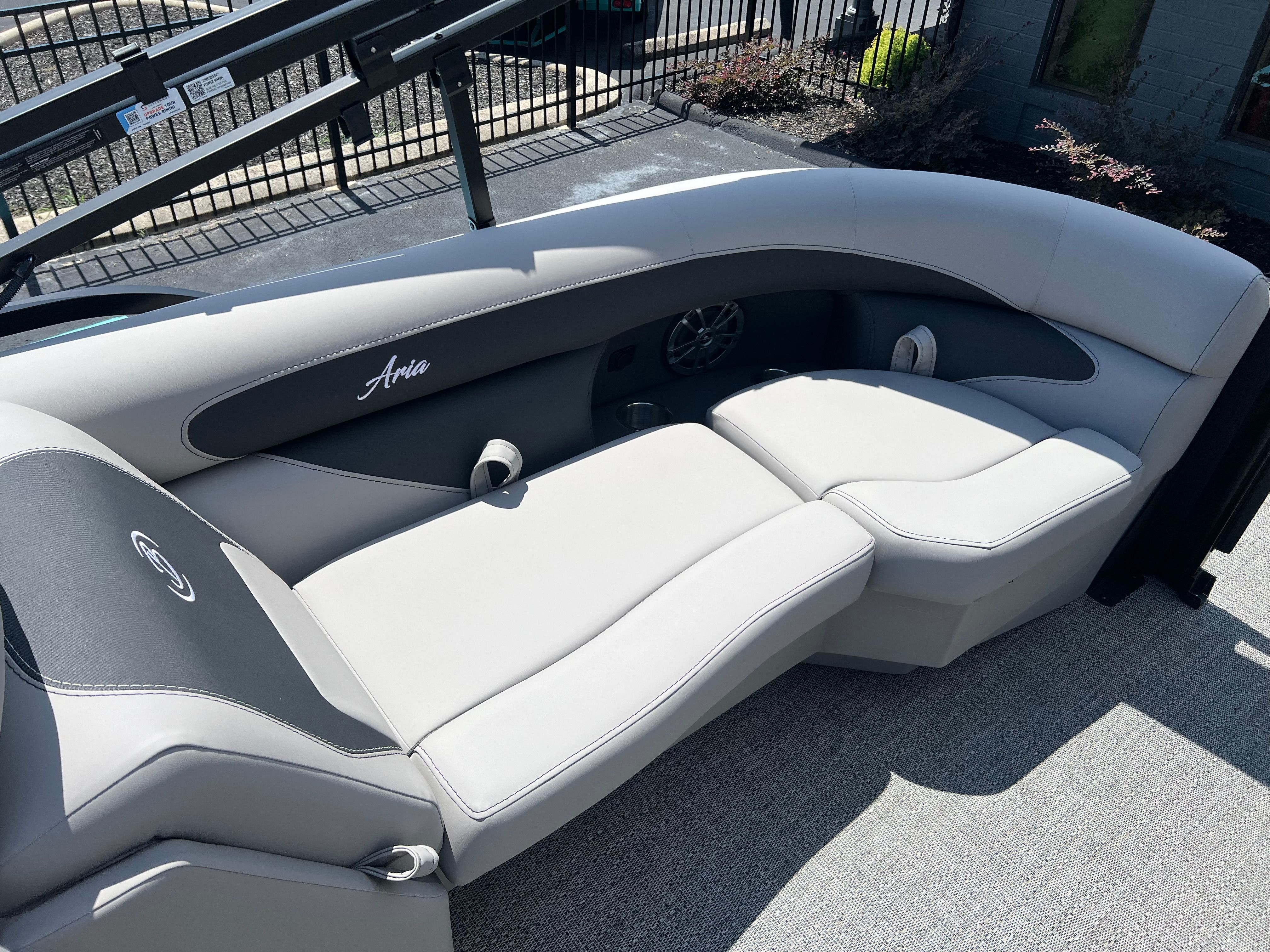 The 2026 Barletta Aria A22QC Pontoon stands out with its sleek design and impressive length of just over 21 feet. This new pontoon boat offers ample space for entertaining, lounging, and enjoying the water in style. The Aria A22QC’s modern lines and sophisticated Railskin packages, including the Blackout Package Aria and Gray Moonstone accent, create a striking visual presence that is sure to turn heads at any marina. With its Tempest Gray furniture and Black Diamond Railskin color, this Barletta pontoon boat for sale exudes elegance and comfort from bow to stern.