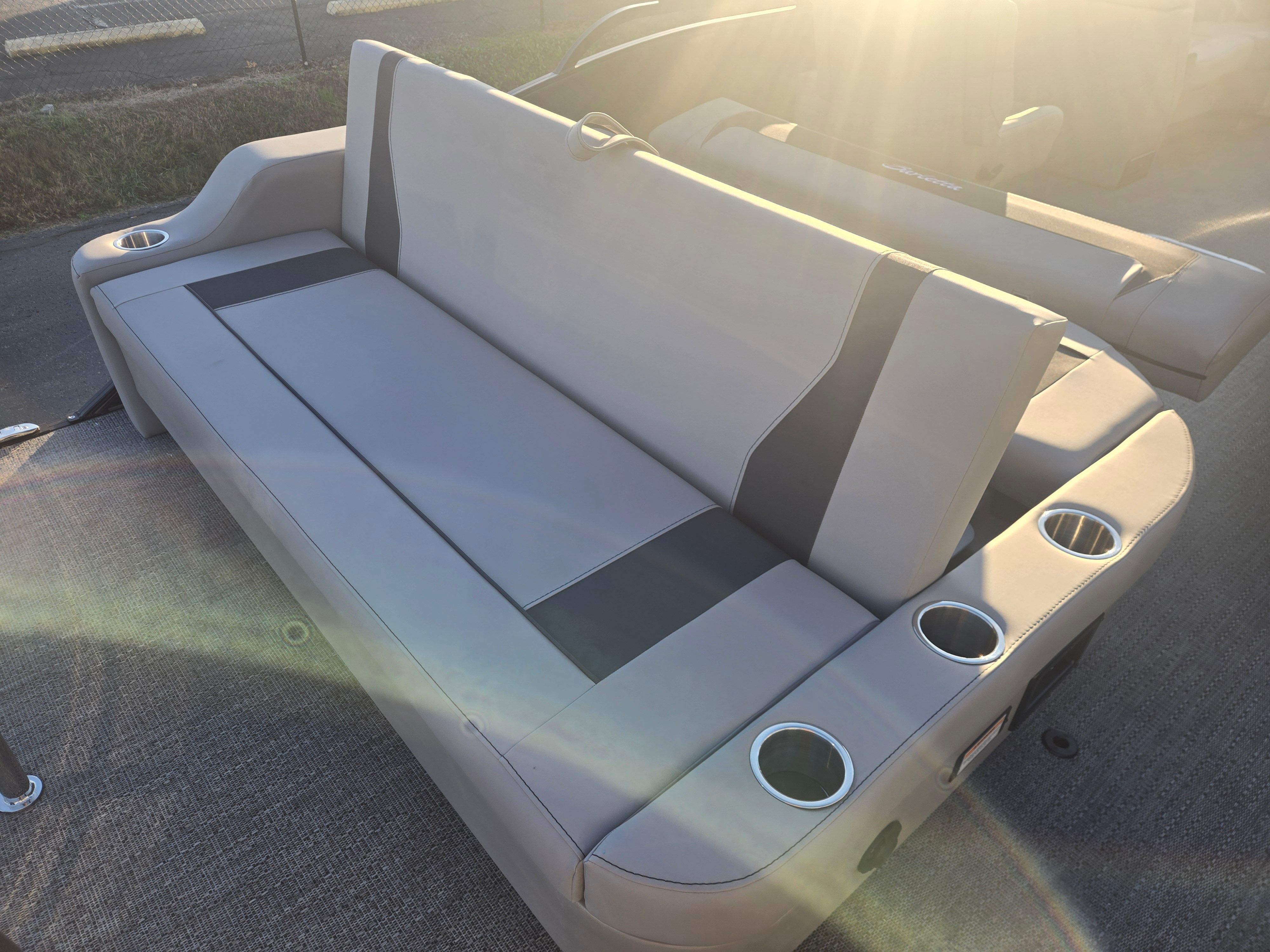 The 2026 Barletta Aria A22UC-Platinum is loaded with special features that set it apart from other pontoon boats for sale. The Railskin Color Aria in Black Diamond, paired with the Blackout Package Aria, creates a sleek, modern aesthetic that turns heads at every dock. Inside, the Tempest Gray furniture offers plush seating and a sophisticated look, while the Amore Gray flooring provides both comfort and durability underfoot. The Triple Toon Package Aria enhances stability and performance, ensuring a smooth ride even in choppy conditions.For added convenience, the onboard battery charger keeps your single battery powered up and ready for every adventure. The stainless steel flag pole with an American flag adds a patriotic touch, making this Barletta boat for sale a true standout on the water.