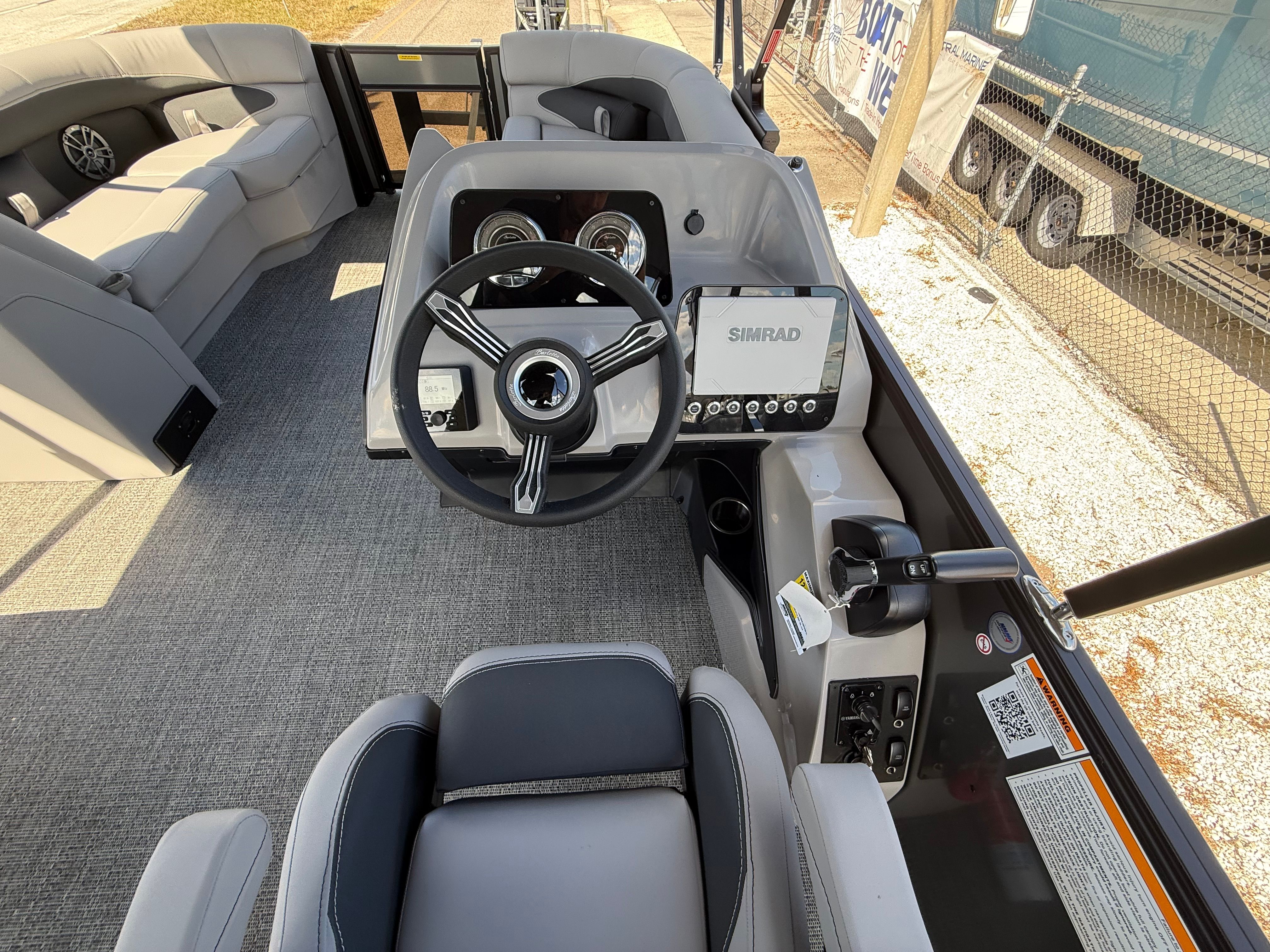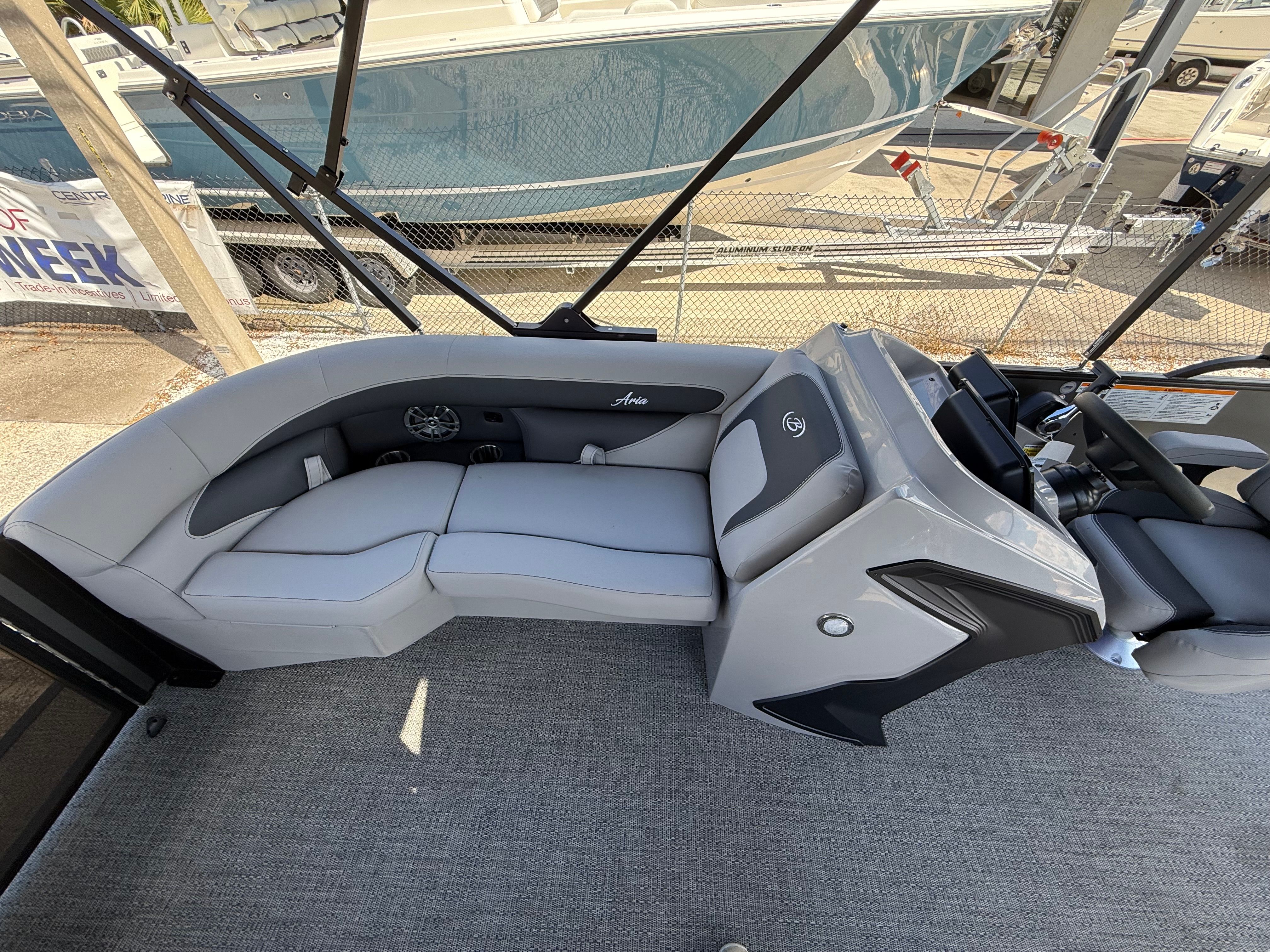 The Barletta Aria A22UC-Platinum is packed with premium features designed to enhance your boating experience. The Railskin Color Aria in Gray Moonstone and Railskin Accent Aria in Black Diamond create a visually stunning exterior, while the Blackout Package Aria adds a touch of modern sophistication. Inside, the Tempest Gray furniture offers plush seating and ample space for relaxation, complemented by the Amore Gray flooring that is both stylish and easy to maintain. The Coastal Edition Aria ensures this pontoon is ready for a variety of environments, from freshwater lakes to coastal waters. The Triple Toon Package Aria provides added stability and buoyancy, making every ride smooth and comfortable, even with a full crew on board.