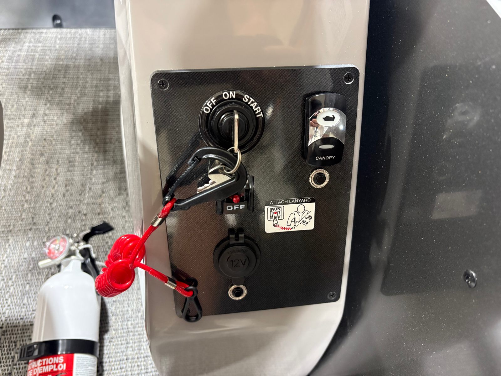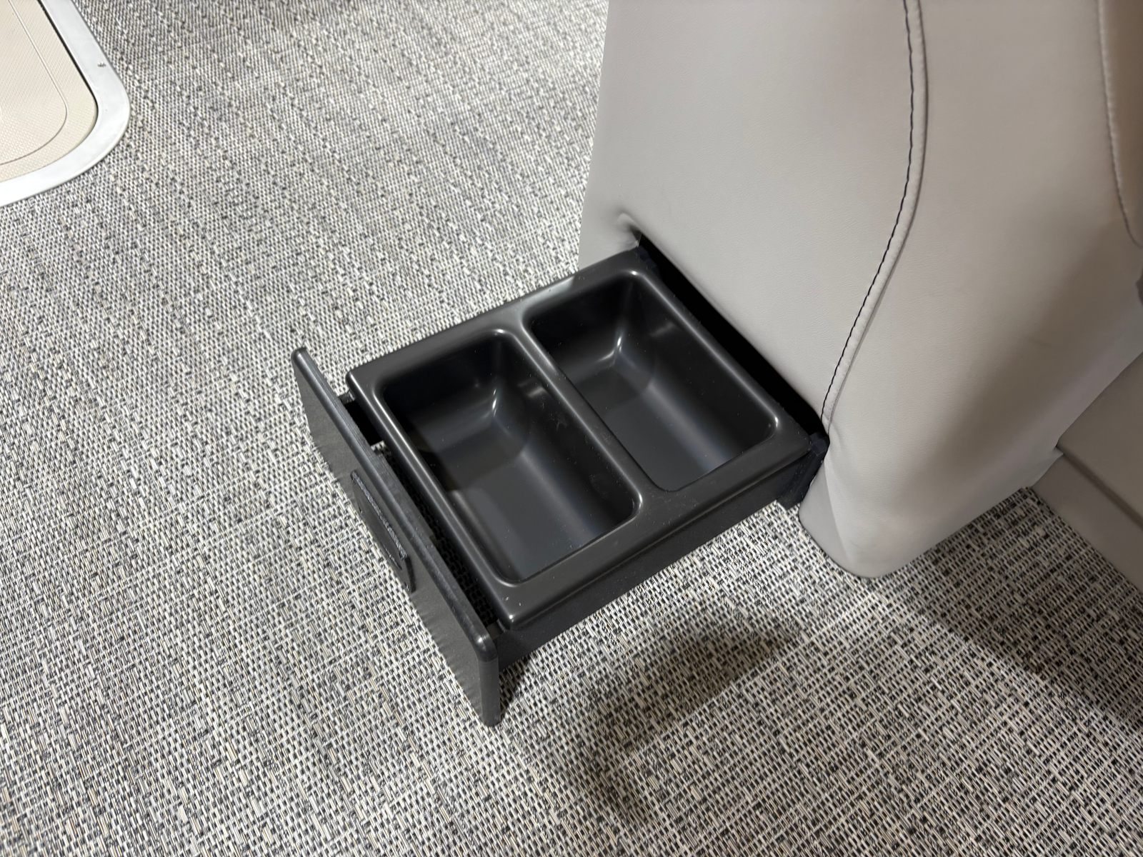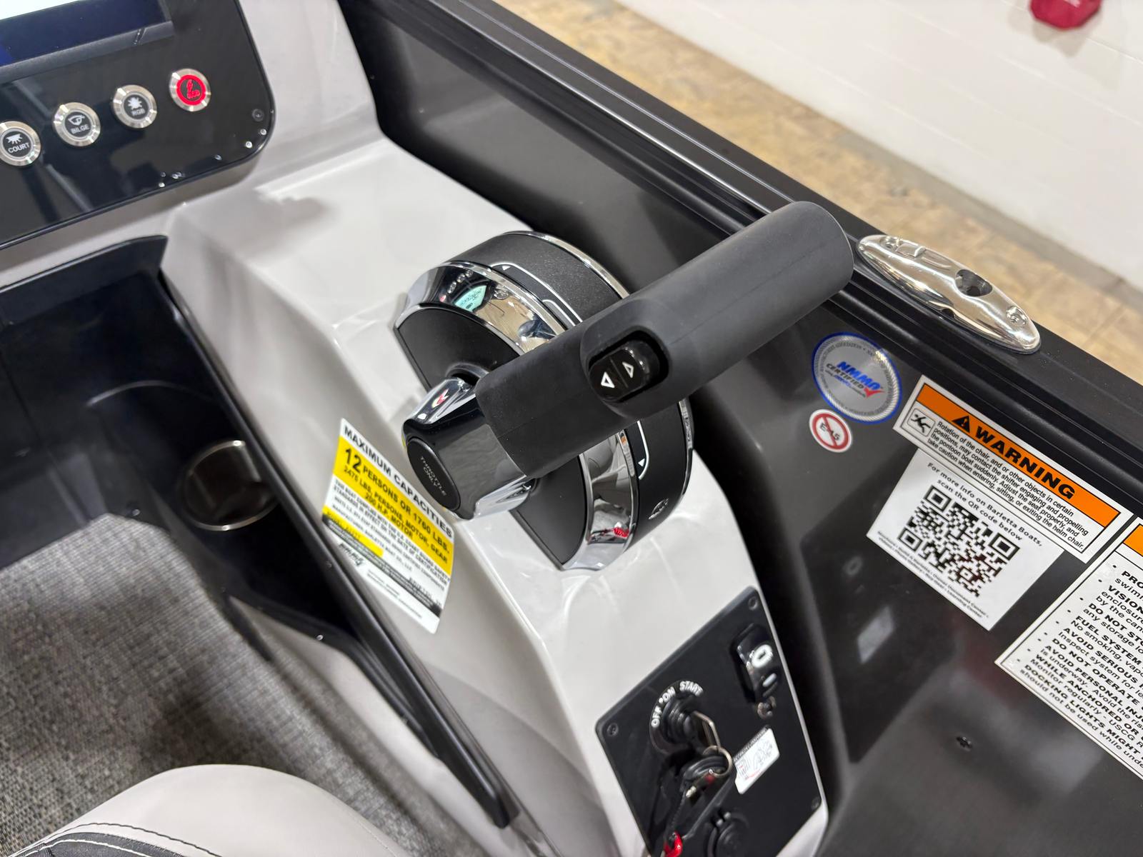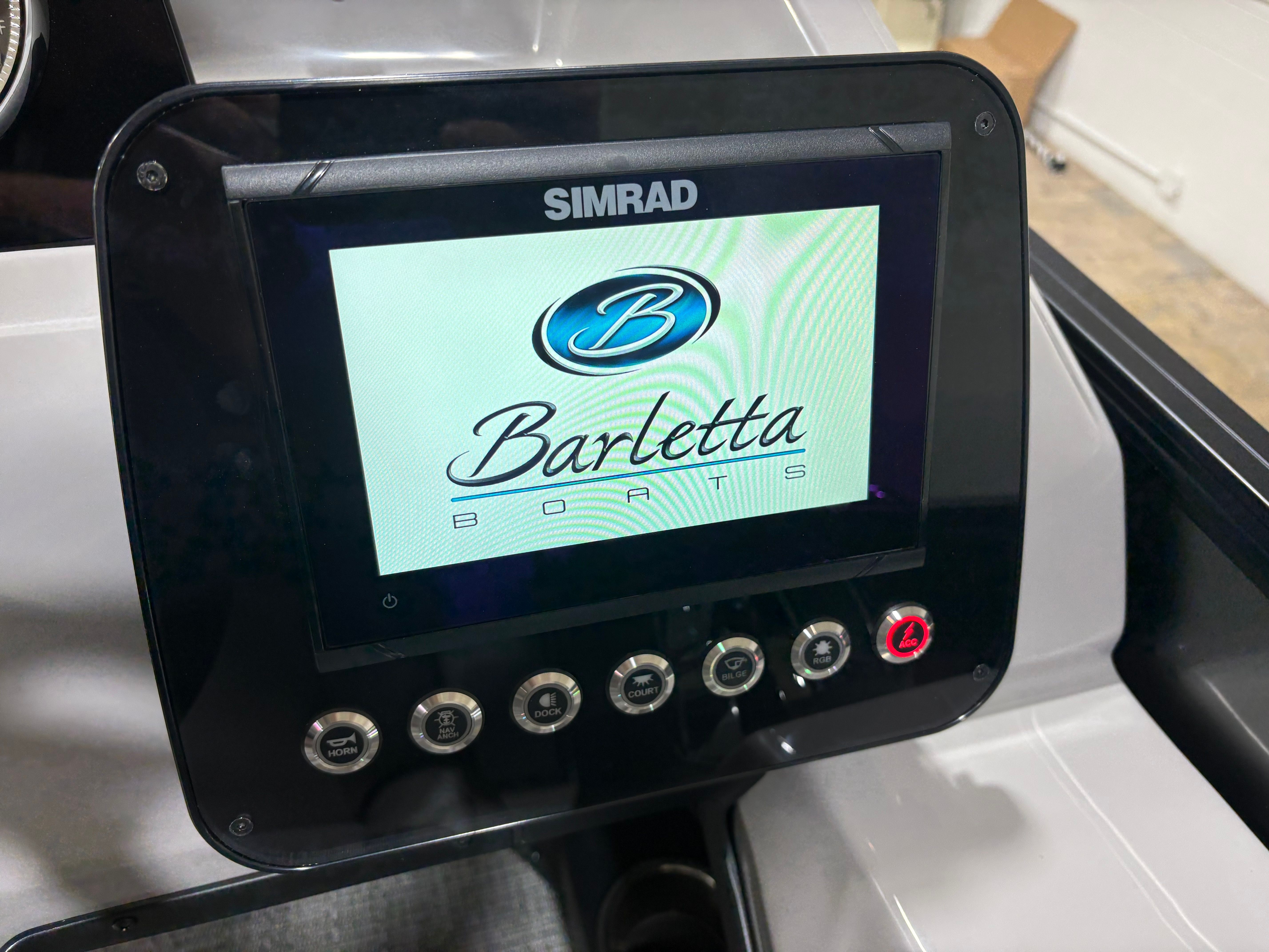 This Barletta pontoon boat is packed with special features designed to elevate your time on the water. The Railskin Color Aria in Gray Moonstone and the Blackout Package Aria give the exterior a sleek, modern look that’s sure to impress. Inside, the Tempest Gray furniture provides plush seating and comfort, while the Amore Gray flooring adds a touch of elegance and practicality. The Triple Toon Package Aria enhances the boat’s stability and ride quality, making it perfect for a variety of activities. The Mercury pre-rig with power assist and stainless steel prop ensures optimal engine performance and easy handling. For added flair, the exterior features a stainless steel flag pole with an American flag, showcasing your pride and style. The interior boasts in-floor midship storage (available with the Triple Toon package), offering convenient space for gear, water toys, and personal items.