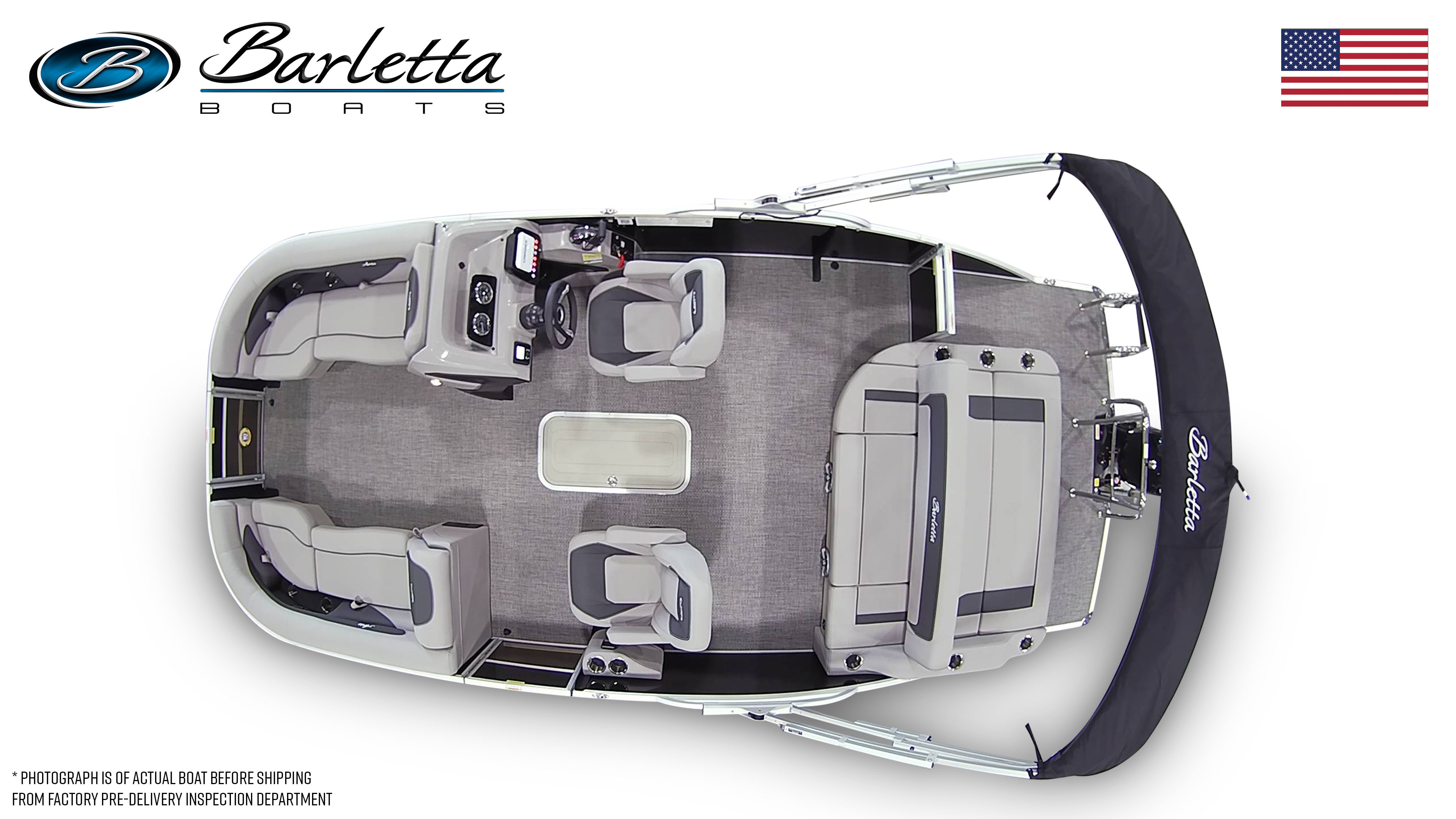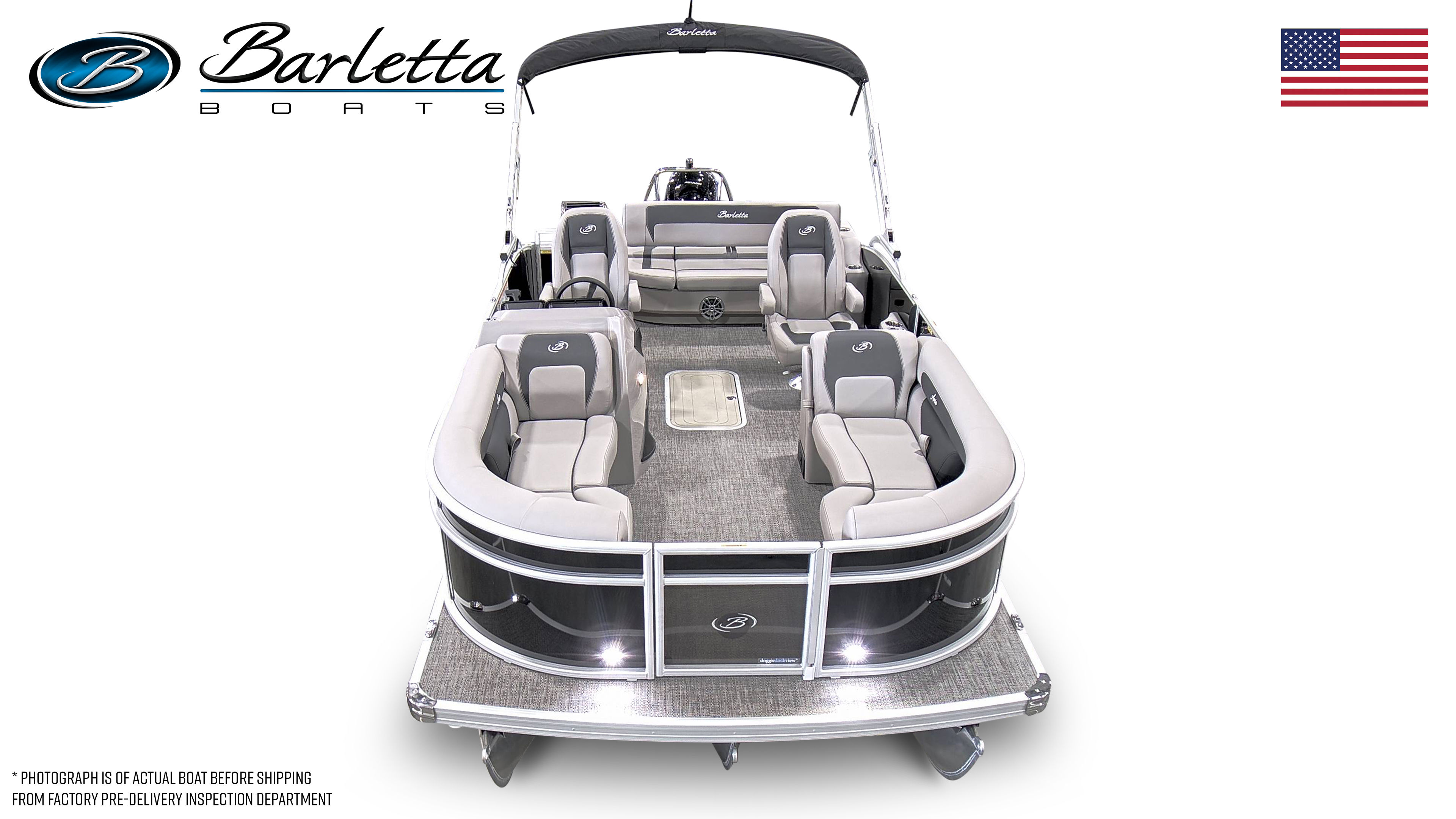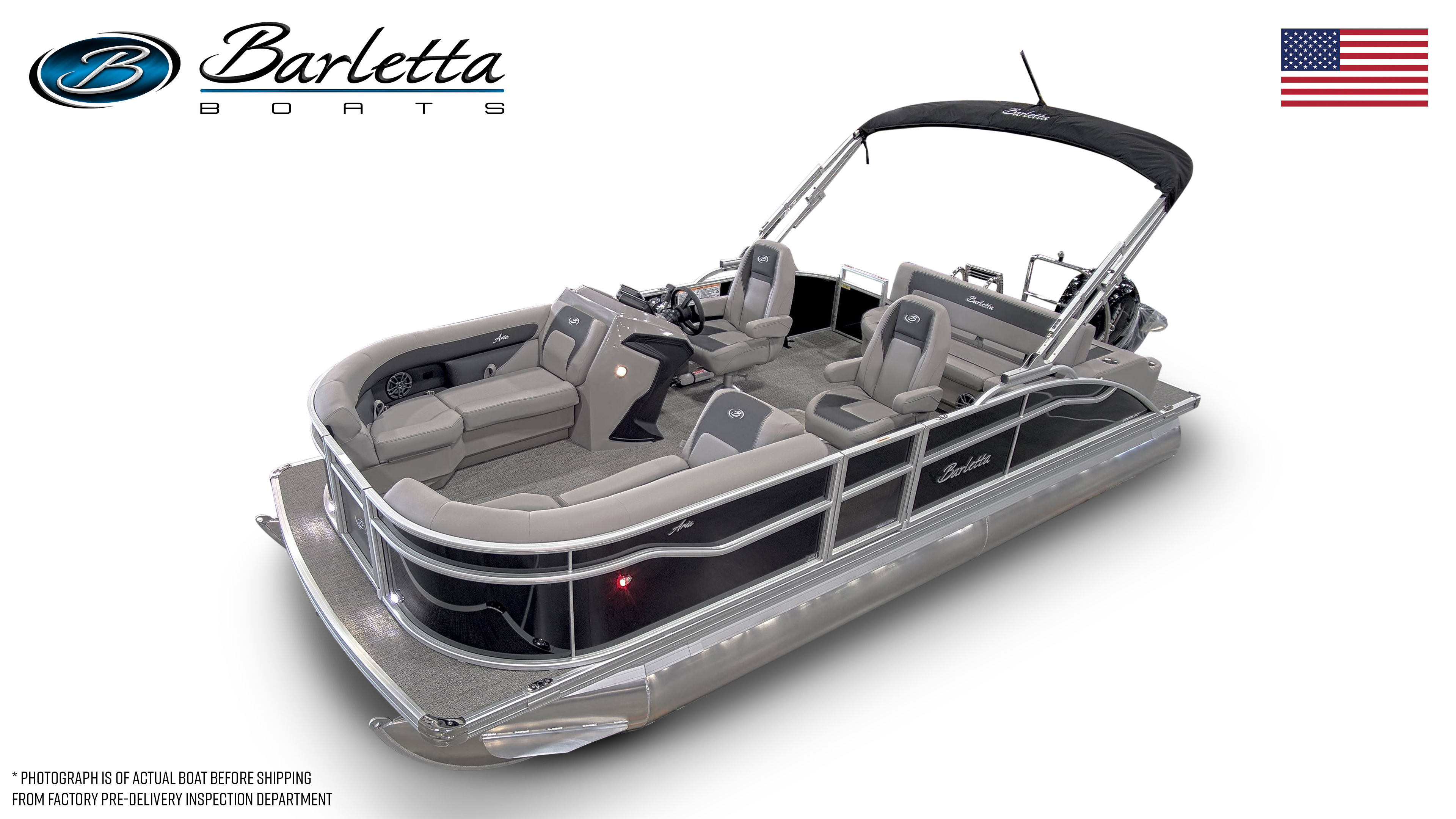 This Barletta boat for sale is loaded with premium features designed to maximize comfort, convenience, and fun. The Mercury pre-rig mechanical system ensures seamless integration and optimal engine performance, while the in-floor midship storage provides ample space for all your gear, water toys, and essentials. The Eagle 5 GPS offers advanced navigation, helping you explore new destinations with confidence and ease.A stainless steel flag pole with an American flag adds a patriotic touch, making your pontoon stand out at any marina or dock. The thoughtfully designed furniture in Tempest Gray offers plush seating and ergonomic support, ensuring everyone onboard can relax in style. The Amore Gray flooring is not only visually appealing but also easy to clean and maintain, making it ideal for active days on the water. With the Triple Toon Package Aria, you’ll enjoy enhanced stability and a smoother ride, even when waters get choppy.