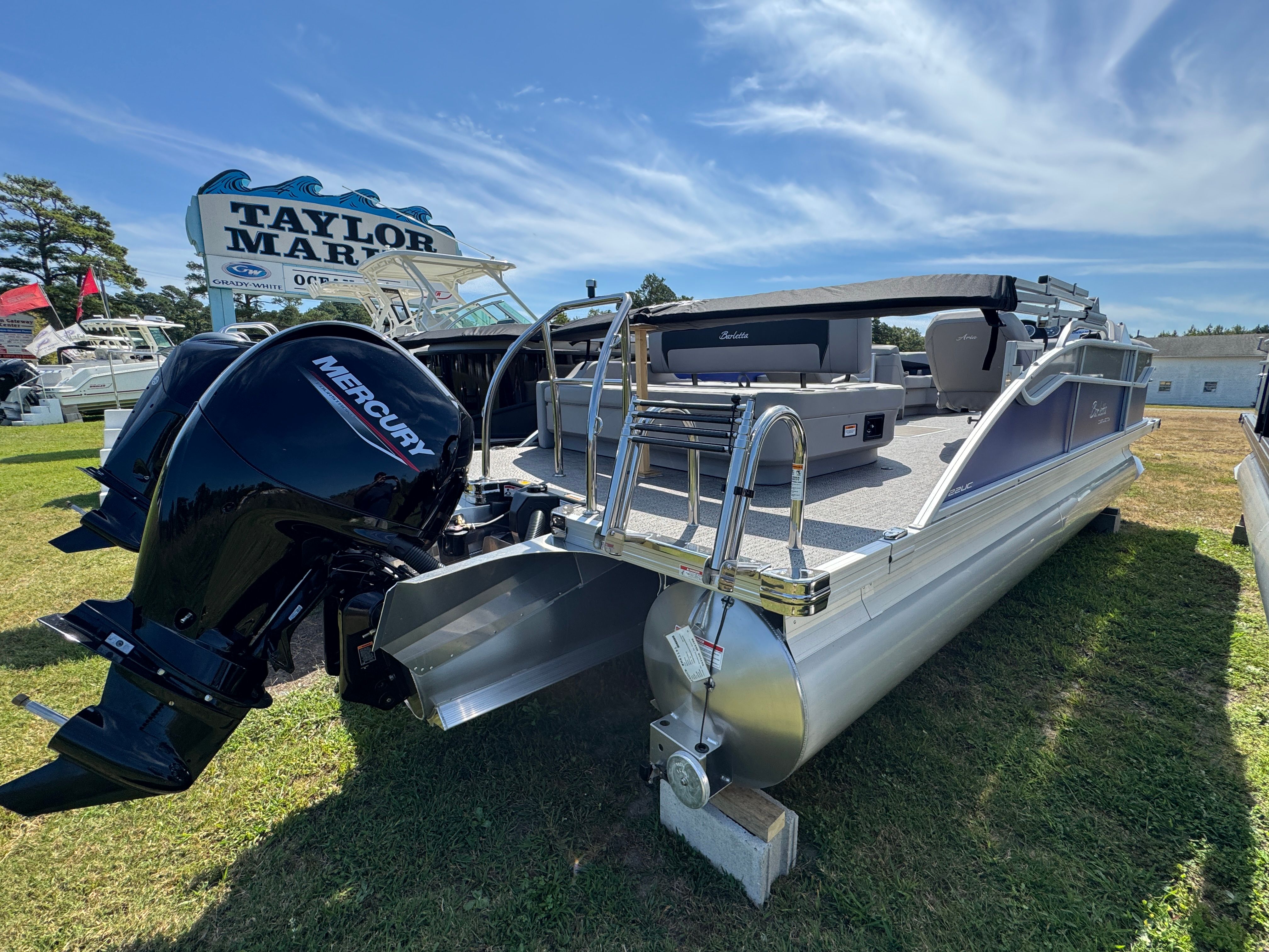 The 2026 Barletta Aria A22UC is packed with features that elevate your time on the water. The Railskin Color Aria in Pacific Matte Blue, complemented by the Champagne accent, creates a visually striking exterior that is sure to turn heads at the marina. Inside, the Tempest Gray furniture provides plush seating, while the Amore Gray flooring is both stylish and easy to maintain. The Coastal Edition Aria ensures that this pontoon is equipped to handle coastal environments, offering added durability and protection.The Triple Toon Package Aria enhances the boat’s stability and performance, making it ideal for a variety of activities, from leisurely cruises to more spirited adventures. The Mercury 150L Four Stroke engine, combined with the mechanical pre-rig and stainless steel prop, delivers reliable power and efficiency. Seat covers with the standard playpen offer protection for your investment, keeping the interior looking pristine season after season.