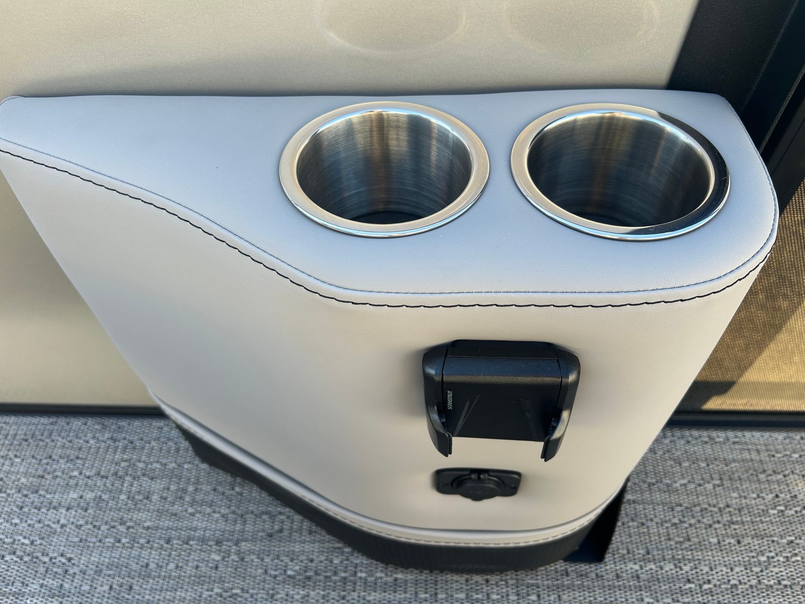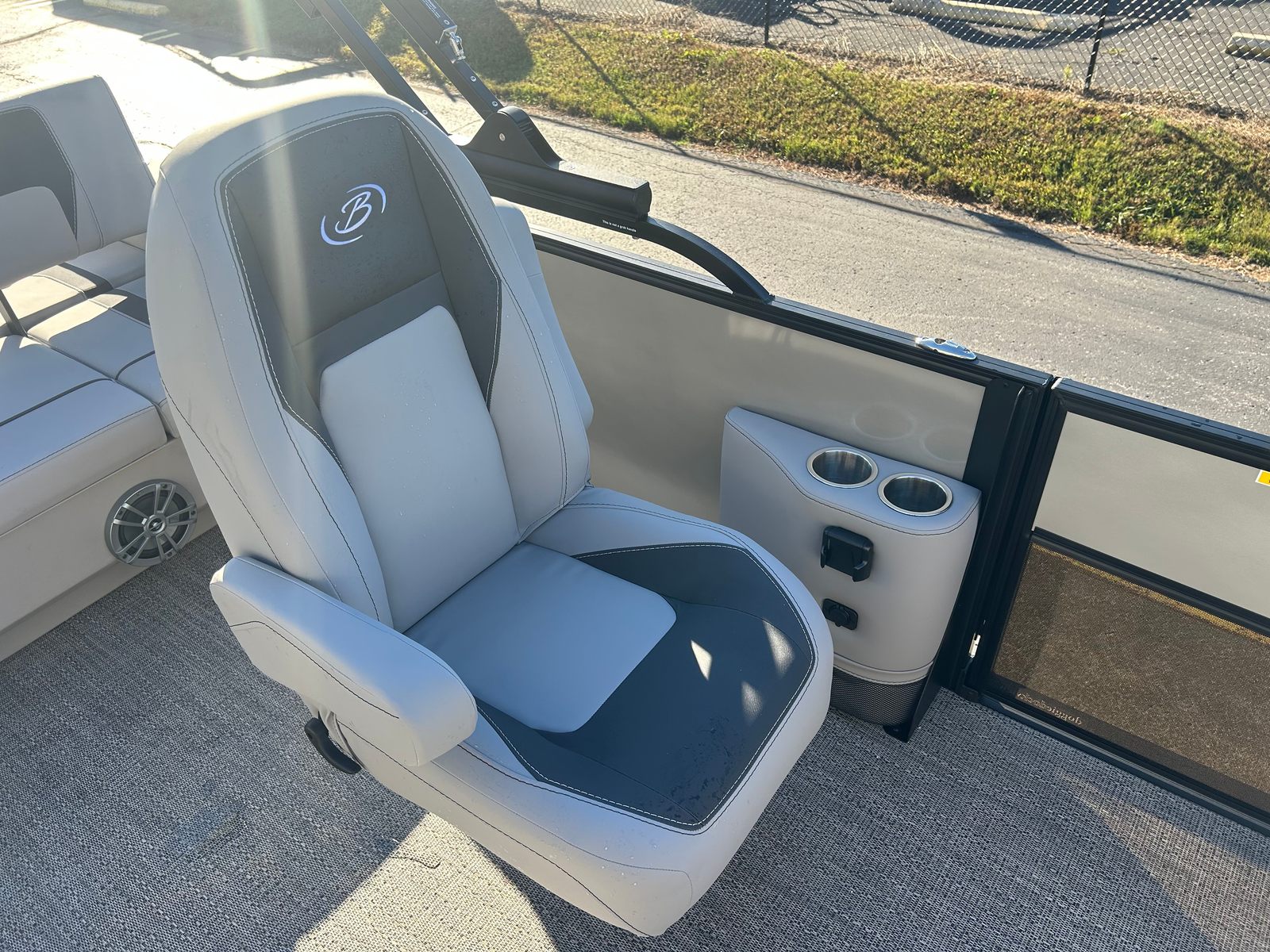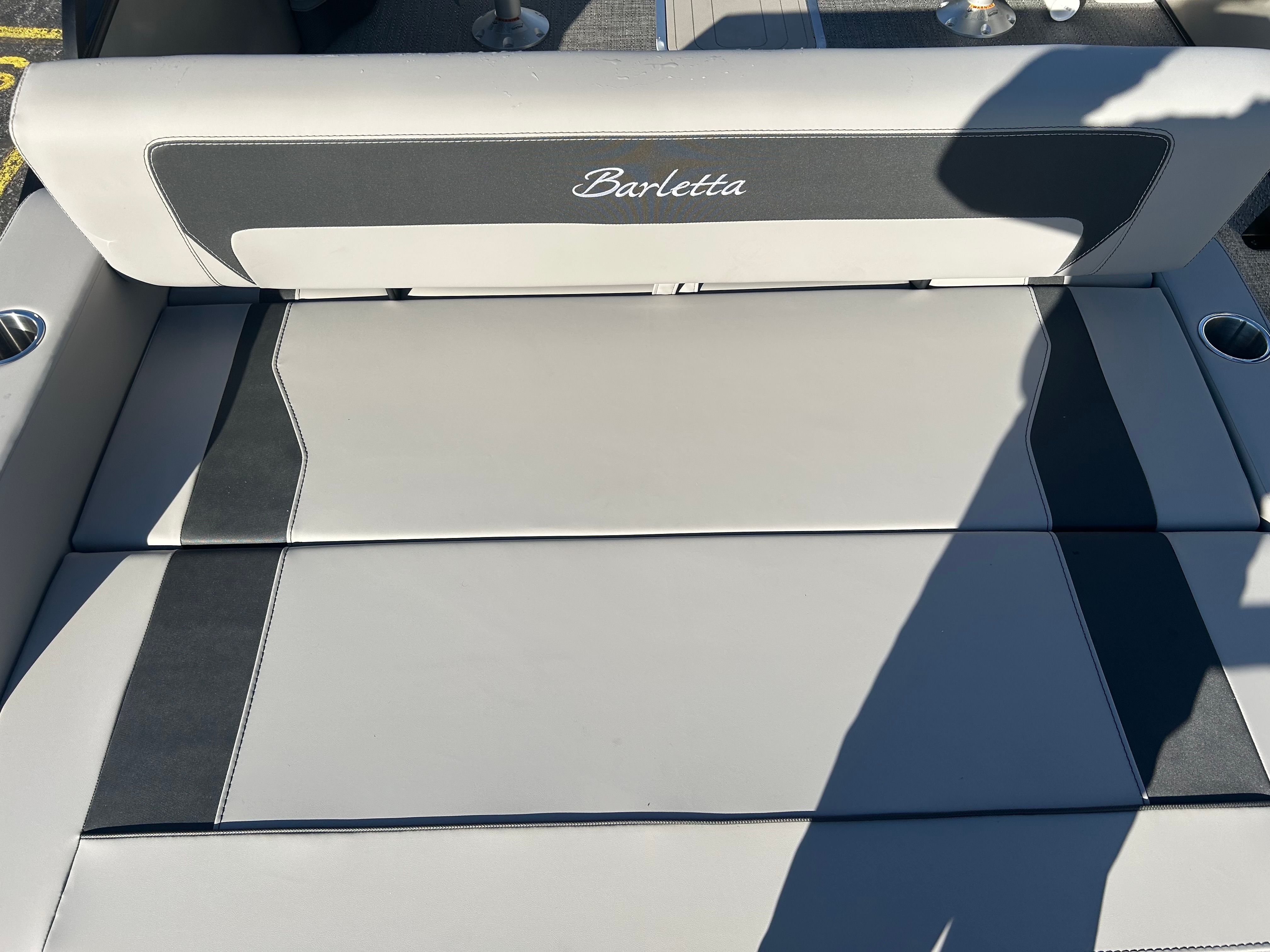 The 2026 Barletta Aria A22UC is loaded with features that enhance both comfort and functionality. The Railskin Color Aria in Champagne, paired with the Black Diamond accent and Blackout Package Aria, gives the boat a bold and sophisticated look. Inside, the Tempest Gray furniture provides plush, supportive seating for all your guests, while the Amore Gray flooring offers a stylish and slip-resistant surface that is easy to maintain. The Triple Toon Package Aria adds an extra pontoon for improved buoyancy and performance, making this boat as capable as it is beautiful. One of the standout features is the in-floor midship storage, providing ample space to stow away gear, water toys, and personal items, keeping the deck clutter-free and organized.