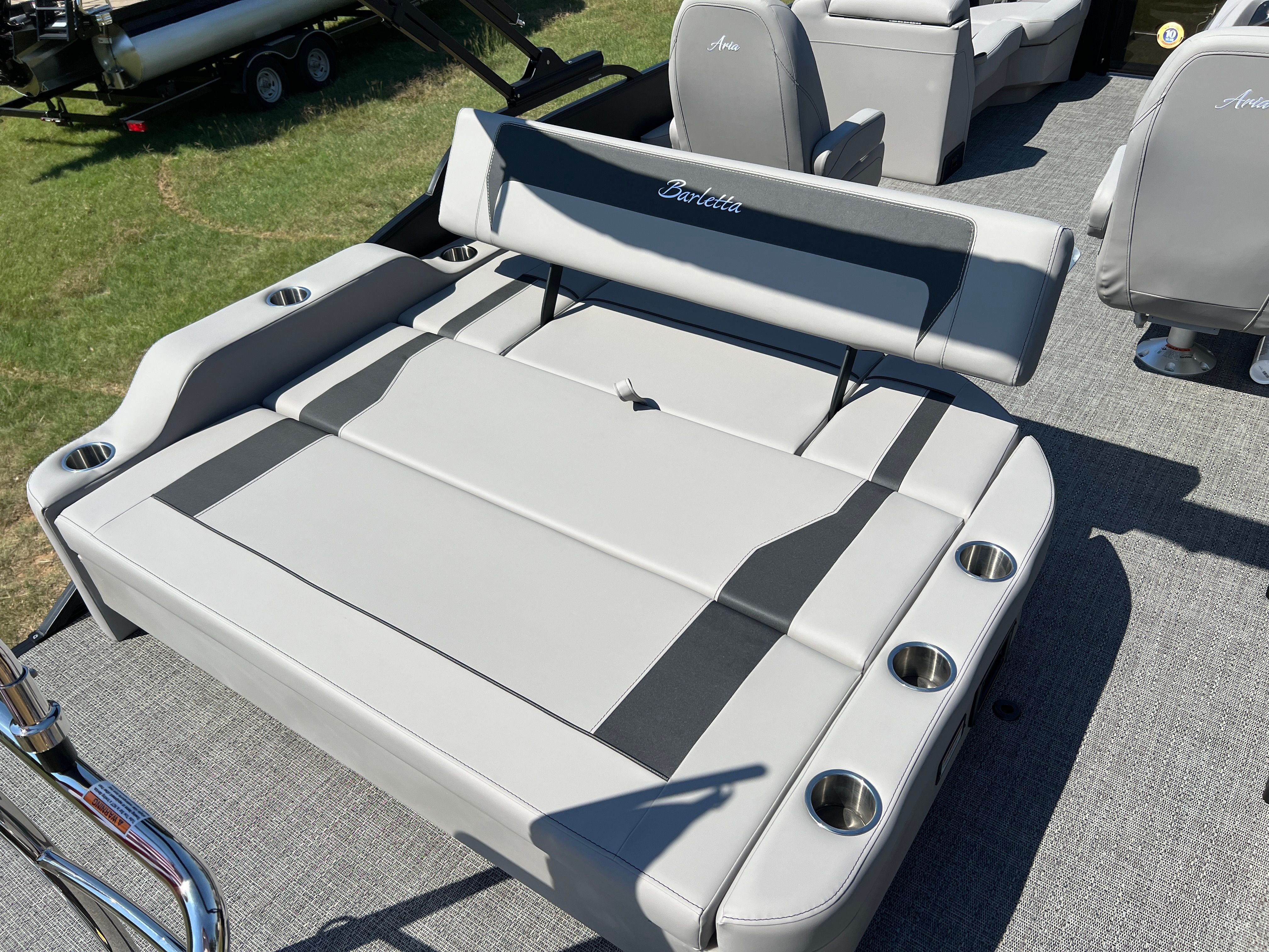 Owning the Barletta Aria A22UC means embracing a lifestyle of fun, relaxation, and adventure. The spacious layout is perfect for hosting gatherings, whether you are planning a family picnic, a sunset cruise with friends, or a day of swimming and sunbathing. The plush Tempest Gray furniture invites you to kick back and unwind, while the durable Amore Gray flooring ensures easy cleanup after a day of fun. The Triple Toon Package Aria not only enhances performance but also provides added stability, making it easier for passengers of all ages to move around safely. With its powerful Mercury engine, you can enjoy thrilling rides or leisurely cruises, all while benefiting from excellent fuel efficiency and low maintenance requirements.