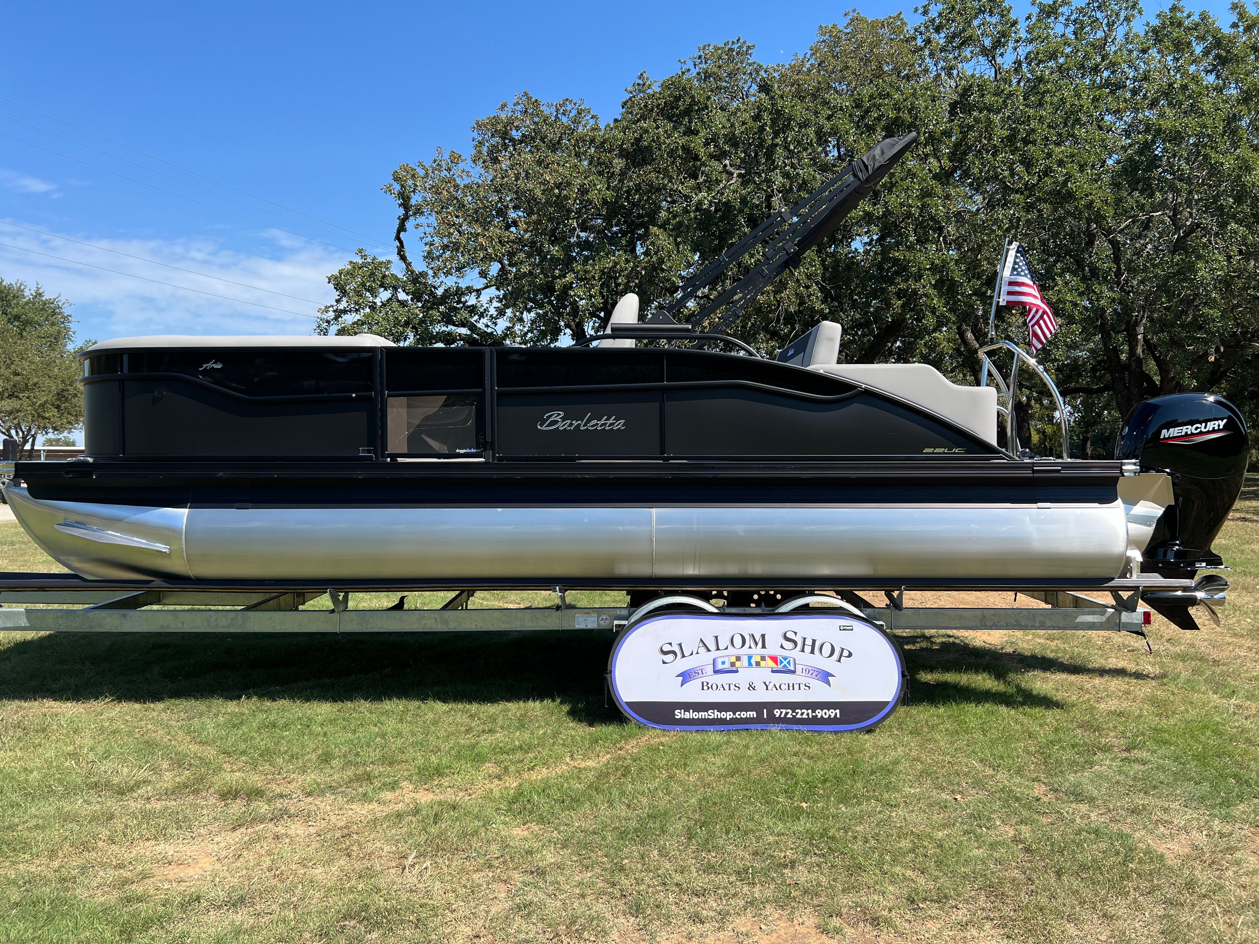 The 2026 Barletta Aria A22UC is more than just a pontoon boat for sale – it is your ticket to a world of fun, freedom, and unforgettable memories on the water. With its stunning Matte Black Railskin, Blackout Package Aria, luxurious Tempest Gray furniture, Amore Gray flooring, Triple Toon Package Aria, powerful Mercury 150L Four Stroke engine, and thoughtful features like in-floor midship storage and a stainless steel flag pole with American flag, this Barletta boat for sale stands out as a top choice for discerning boaters. Experience the perfect combination of performance, comfort, and style, and make every day on the water extraordinary. Contact your local dealer today to learn more about the Barletta Aria A22UC and start your next adventure!