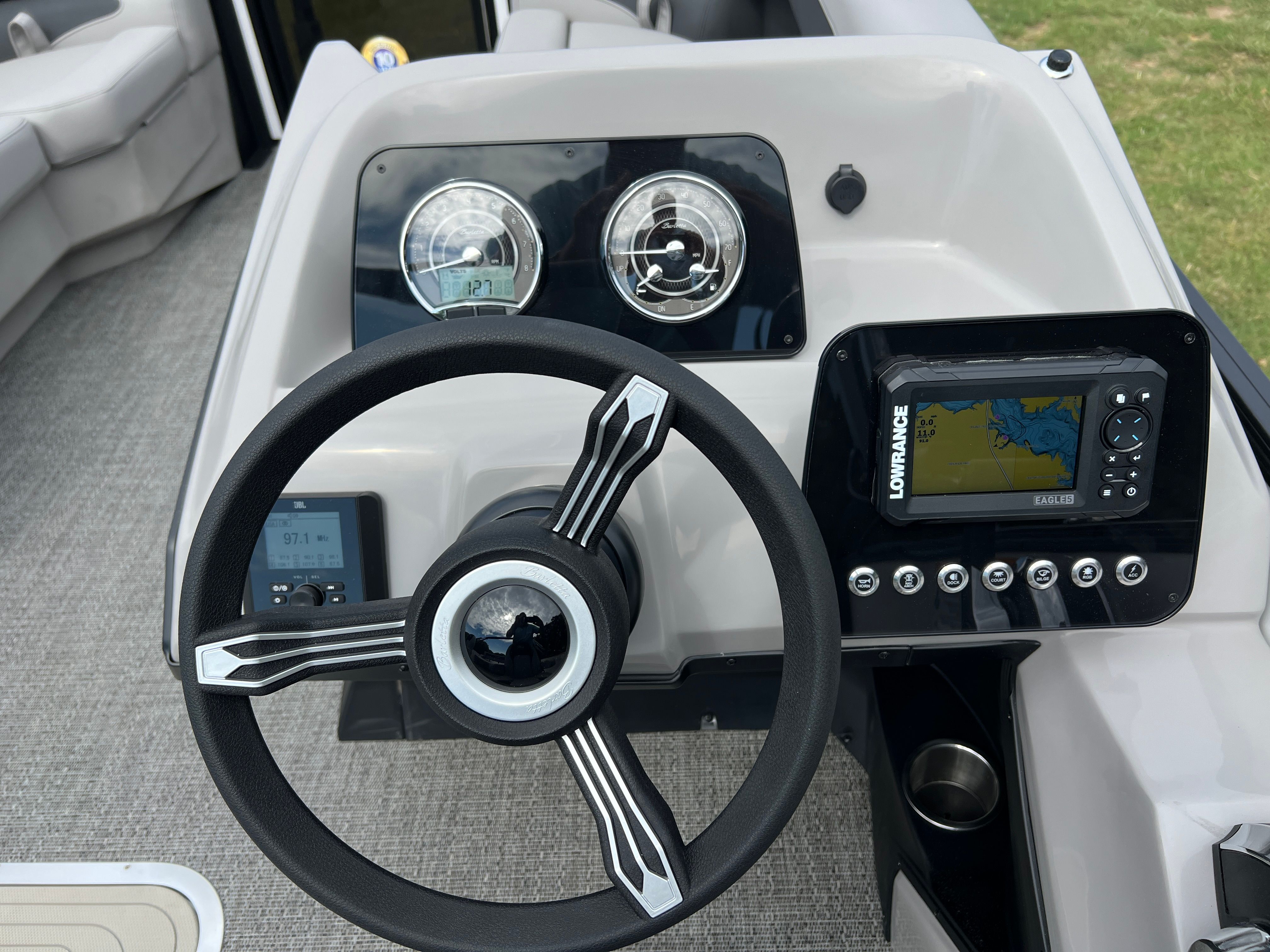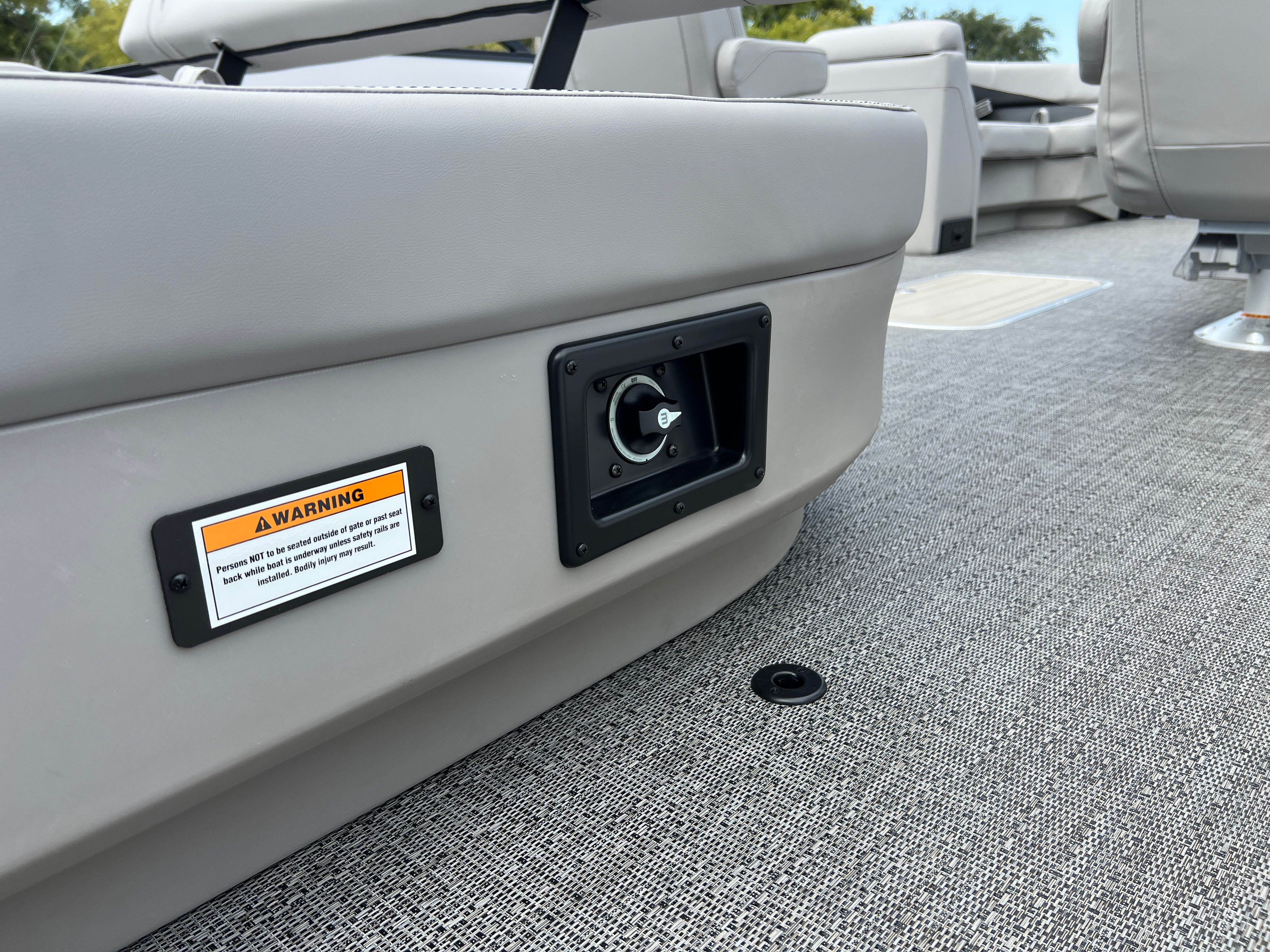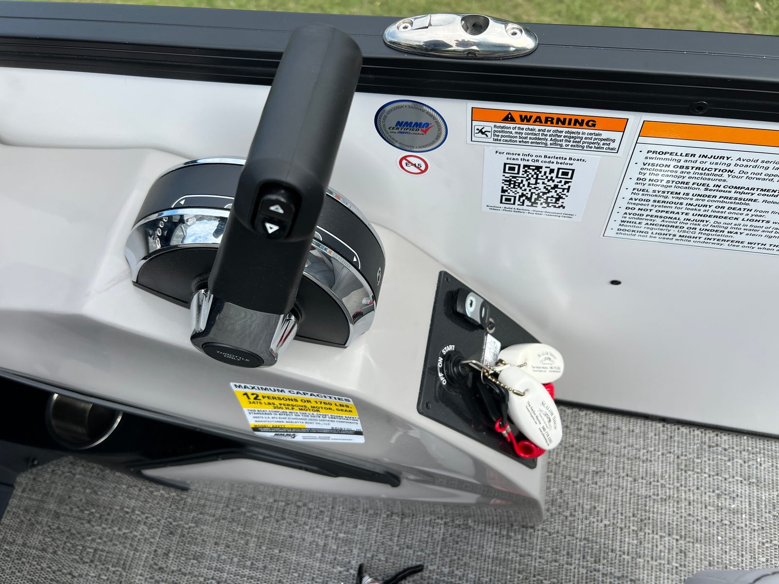 The Barletta Aria A22UC is loaded with premium features designed to maximize comfort, convenience, and style. The Railskin Color Aria in Winter White and the Black Diamond accent create a visually striking exterior, while the Blackout Package Aria adds a touch of modern sophistication. Inside, the Tempest Gray furniture offers plush seating and ergonomic support, perfect for relaxing or socializing with guests. The Amore Gray flooring is both stylish and practical, providing a durable surface that stands up to the rigors of boating life.The Triple Toon Package Aria delivers enhanced stability and buoyancy, making this pontoon ideal for larger groups and active days on the water. The Mercury (M) 150L Four Stroke engine is pre-rigged for mechanical operation, ensuring seamless integration and reliable performance. Rigging with a stainless steel prop adds efficiency and longevity, while the exterior stainless steel flag pole with an American flag showcases your pride and adds a patriotic touch to your boating adventures.
