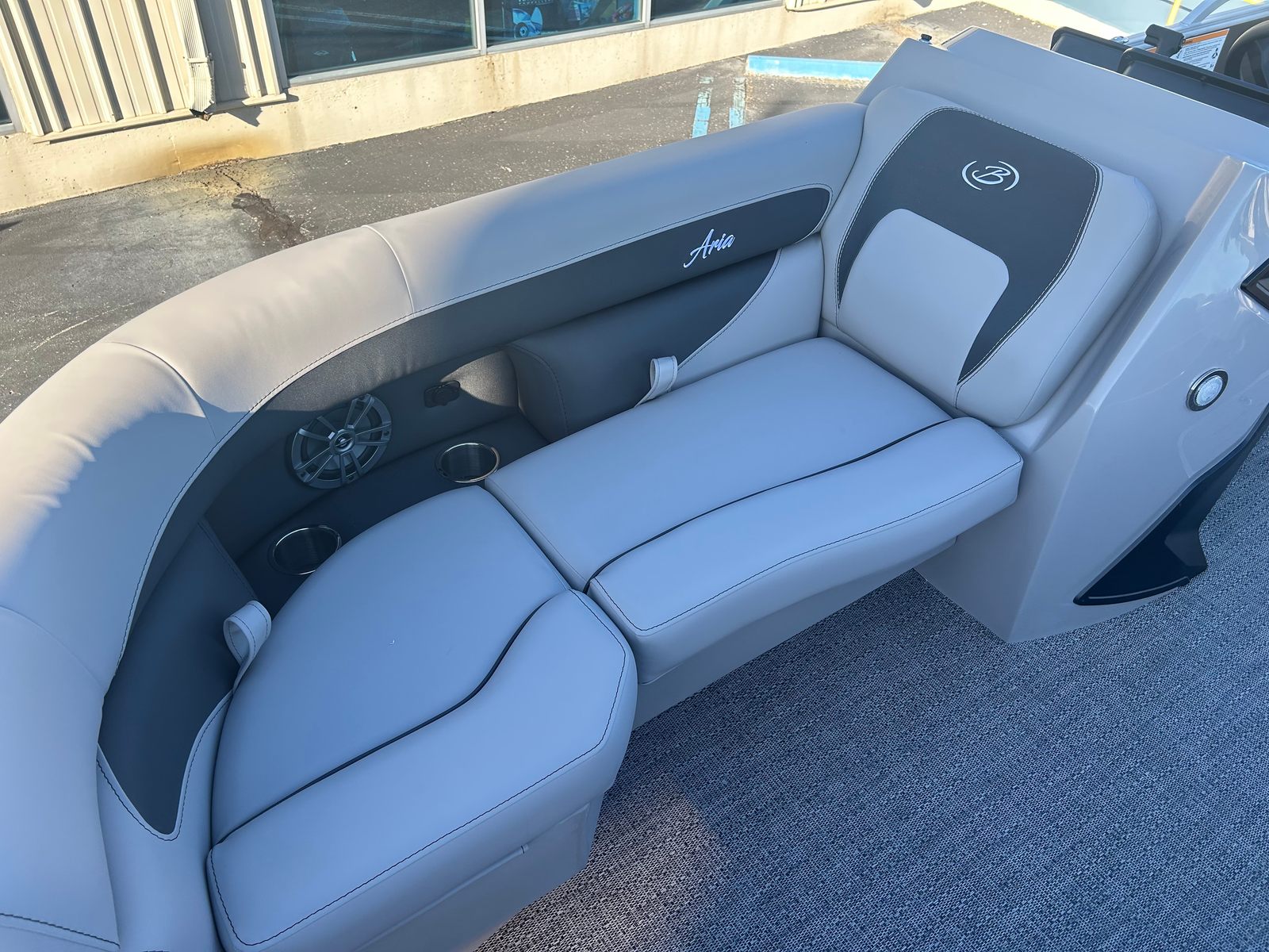 The 2026 Barletta Aria A22UC is a new pontoon boat that measures just over 21 feet in length, making it an ideal size for a wide variety of recreational activities. This Barletta boat for sale is crafted with meticulous attention to detail, ensuring every outing is comfortable, safe, and enjoyable. The Aria A22UC’s sleek profile, highlighted by its Gray Moonstone Railskin color, exudes modern elegance and is sure to turn heads at any marina or lakeside dock.