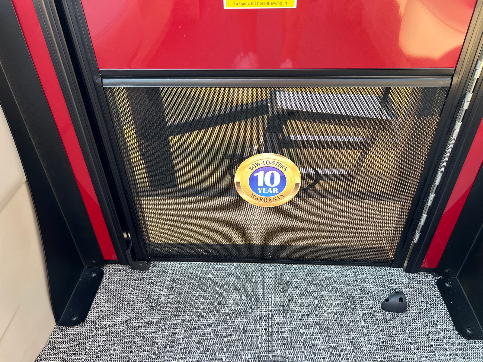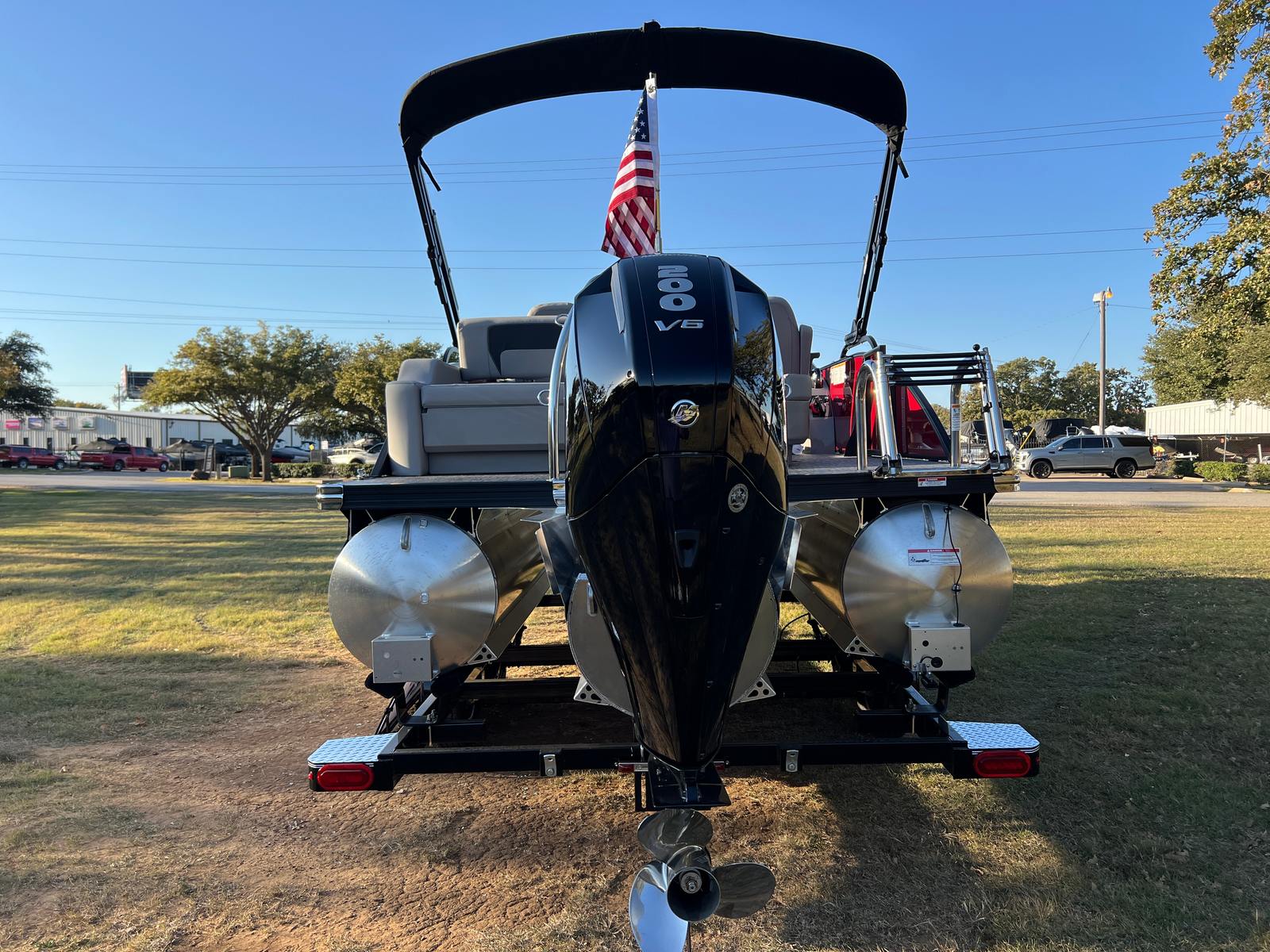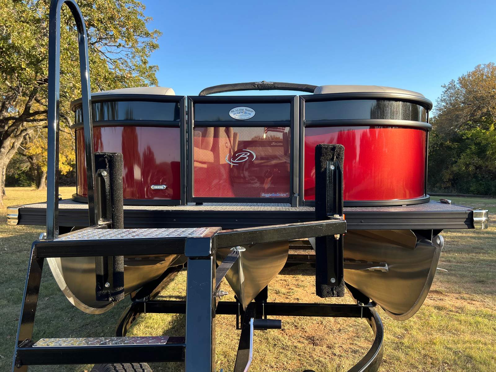 Step aboard the Aria A24UC and discover a world of premium features designed for comfort and convenience. The Tempest Gray furniture offers plush seating and a modern aesthetic, while the Amore Gray flooring provides a stylish and durable foundation for all your on-board activities. The in-floor midship storage is perfect for stowing away gear, water toys, or picnic essentials, keeping the deck clutter-free and organized. The stainless steel flag pole with an American flag adds a patriotic touch, making this pontoon boat a standout wherever you go.The Railskin Color Aria in Red Garnet, paired with the Black Diamond accent and Blackout Package Aria, creates a bold and sophisticated look that is sure to impress. Every detail, from the premium upholstery to the thoughtful storage solutions, is designed to enhance your boating experience and provide lasting value.
