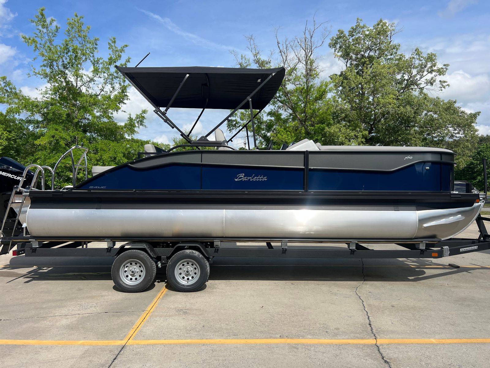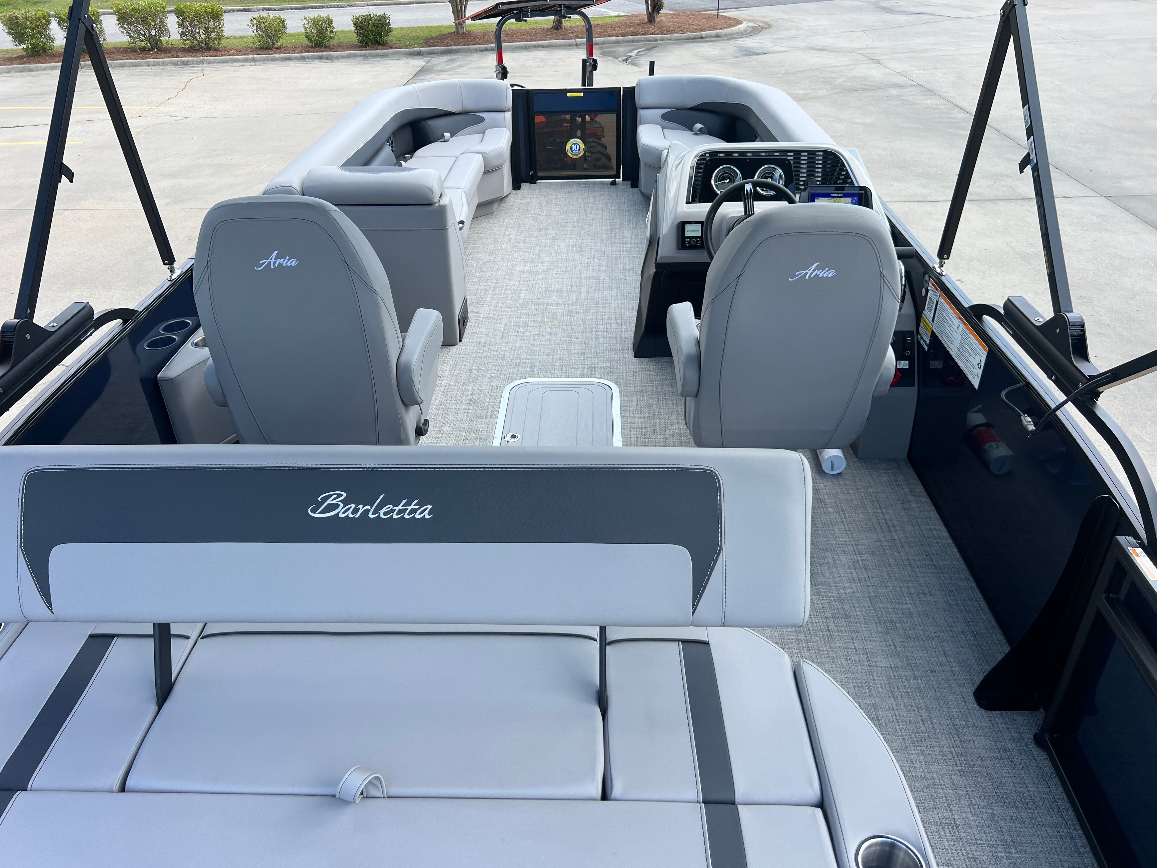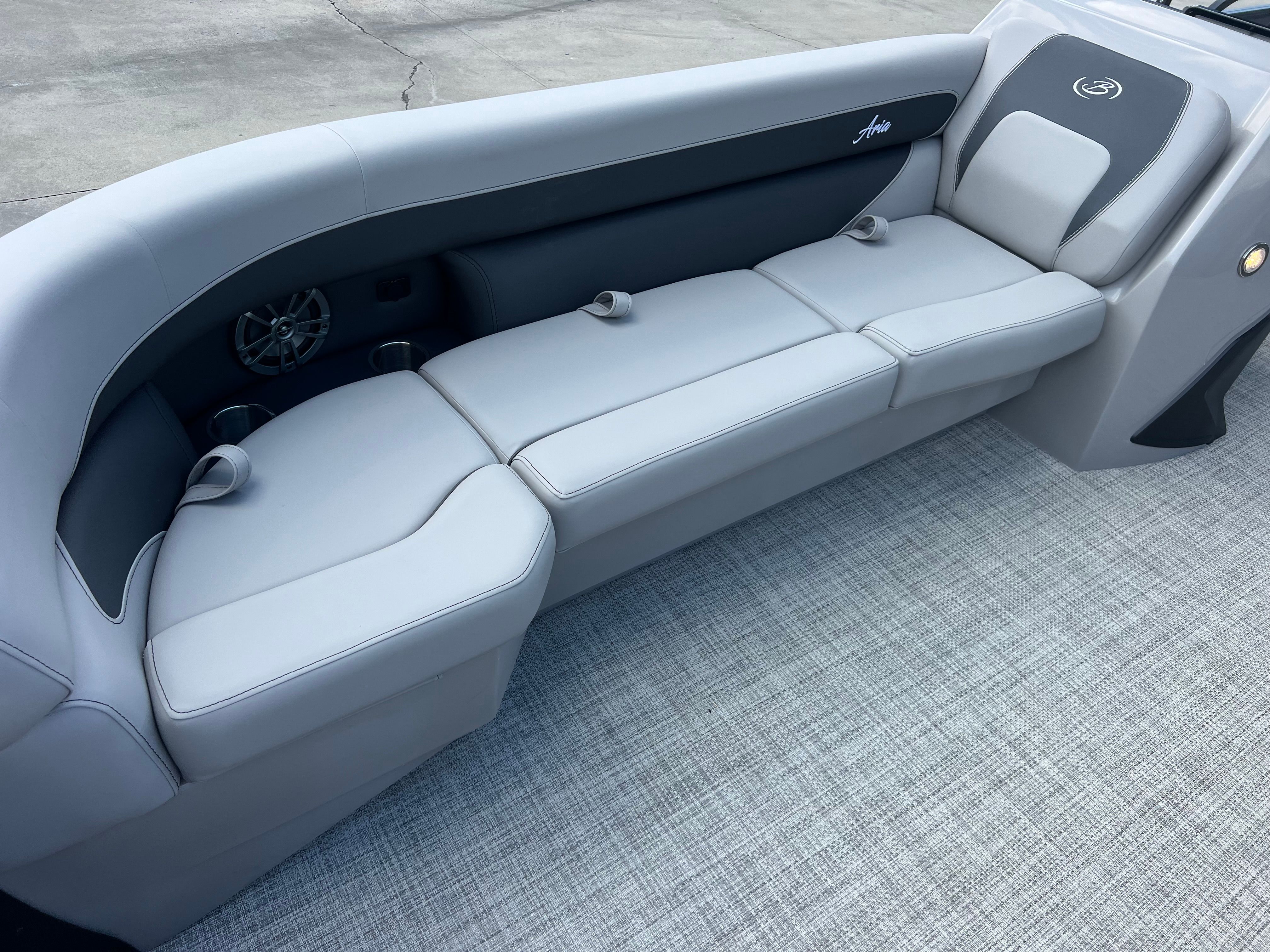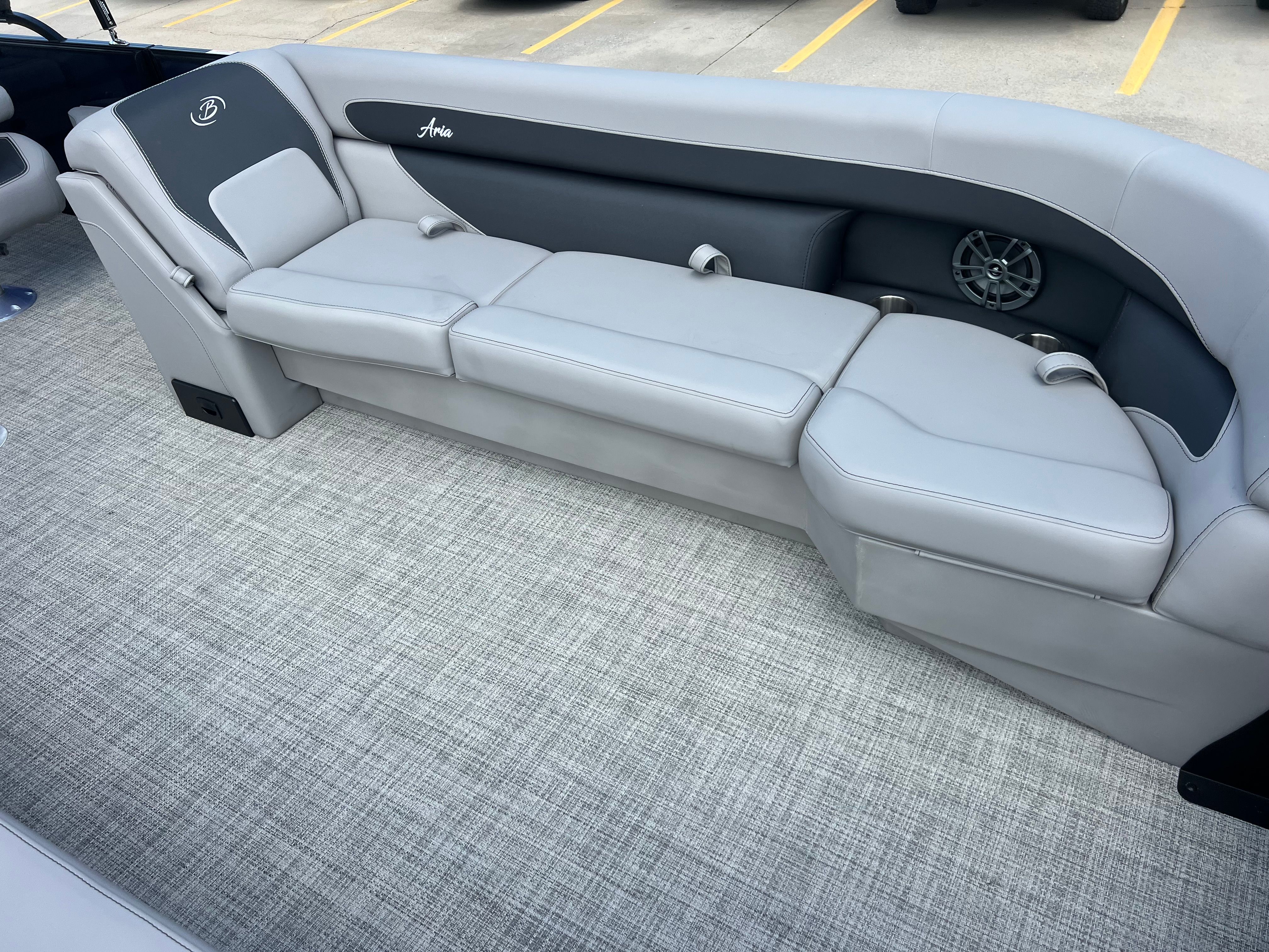 The 2026 Barletta Aria A24UC is a brand-new pontoon boat that measures an impressive 23.83 feet in length, offering ample space for relaxation and entertainment. With its sleek Blue Sapphire Railskin color and the striking Aria Blackout Package, this pontoon stands out on the water with a modern and sophisticated look. The Tempest Gray furniture and Alpine Gray flooring create a refined and inviting atmosphere, making every outing feel like a special occasion. As a new model, this Barletta pontoon boat for sale is in pristine condition, ready for you to make unforgettable memories from day one.