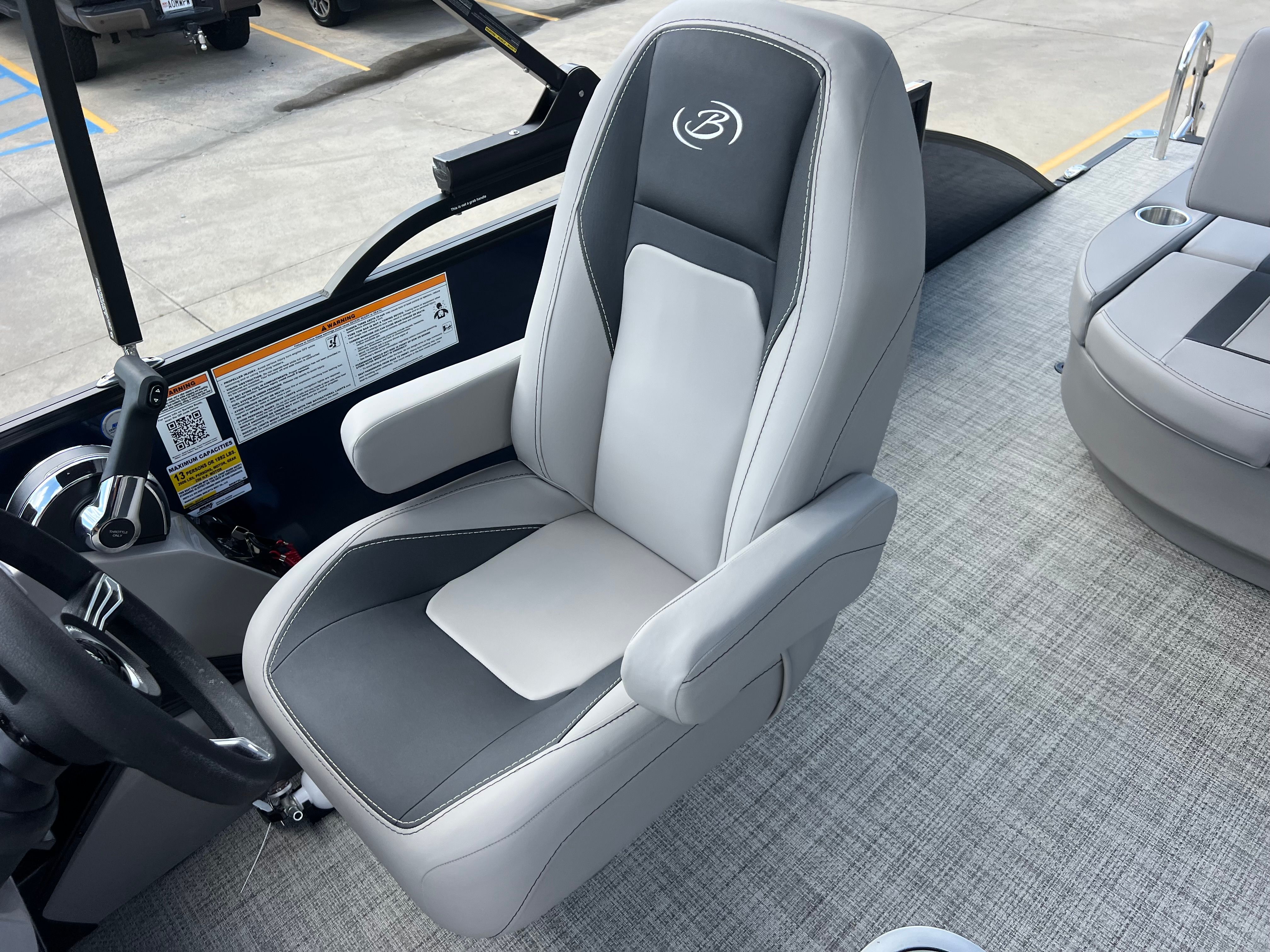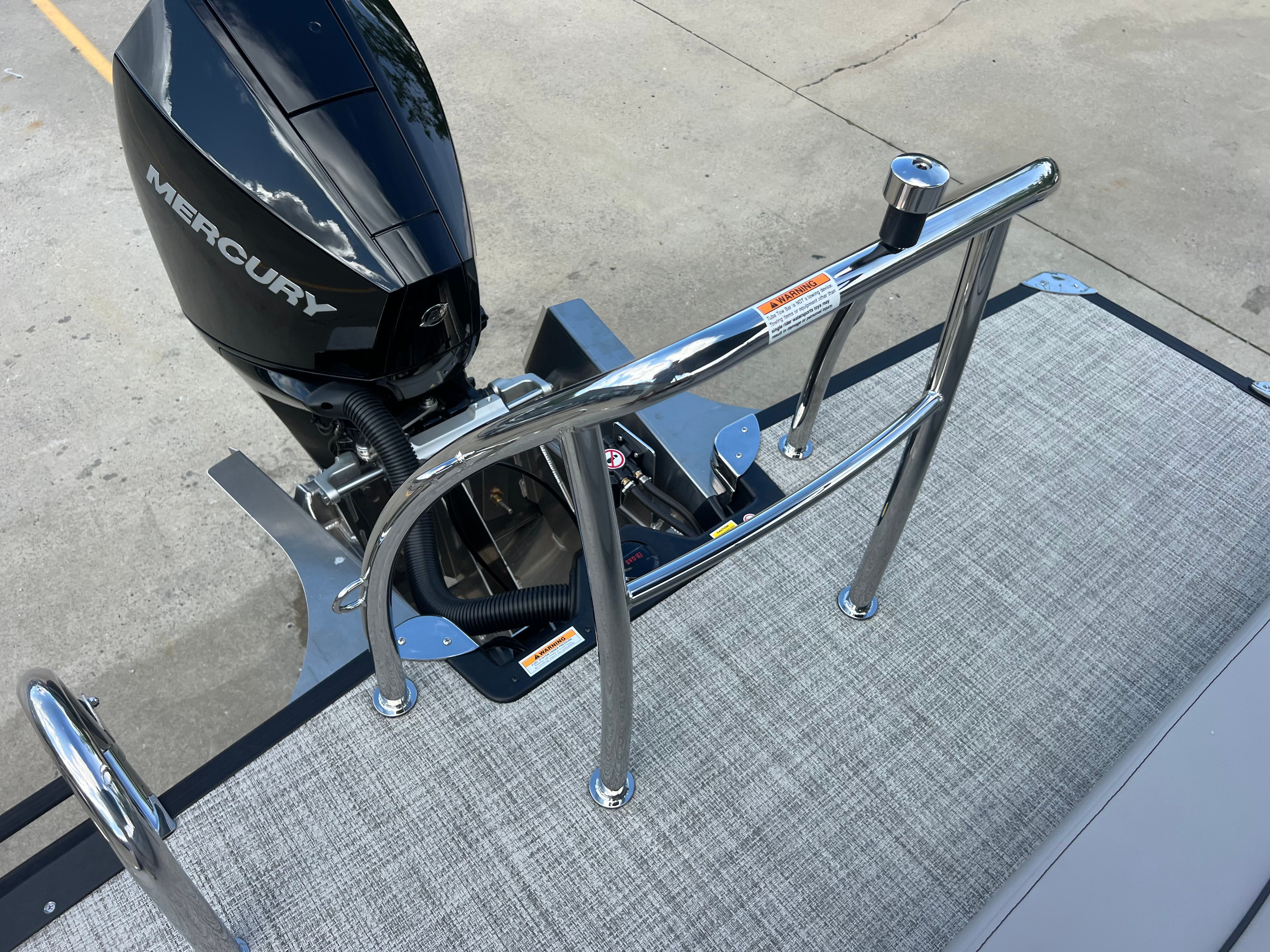 Practicality meets luxury in the Barletta Aria A24UC. The in-floor midship storage keeps your deck clutter-free, allowing you to bring along everything you need for a day on the water without sacrificing space or comfort. The clipped playpen cover with poles offers peace of mind, protecting your investment from sun, rain, and debris when your pontoon is docked or stored.Docking and maneuvering are made simple with the power assist steering and responsive Mercury engine, so you can easily navigate tight spaces or busy marinas. The durable stainless steel prop ensures reliable performance and minimal maintenance, giving you more time to enjoy your boat and less time worrying about upkeep. Whether you are a seasoned boater or new to the world of pontoons, the Barletta Aria A24UC is designed to make ownership easy and enjoyable.