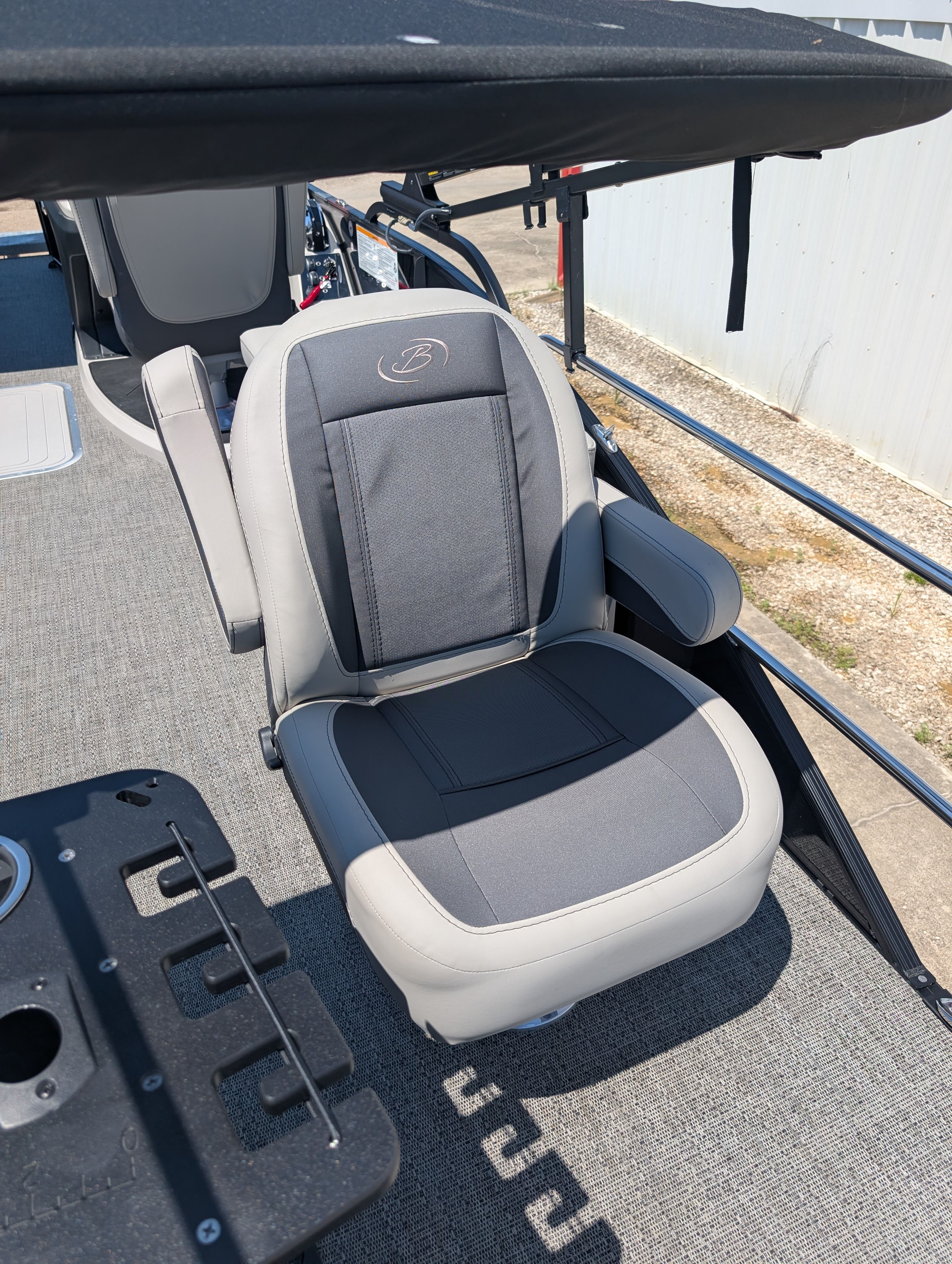 The 2025 Barletta Cabrio C22CC is packed with premium features that set it apart from other pontoon boats for sale. The Amore Gray flooring offers a modern and sophisticated look while providing durability and easy maintenance. The interior RGB Lighting Package Cabrio creates a vibrant and customizable atmosphere, perfect for evening gatherings or late-night cruises. Entertain guests around the stylish table, pedestal, and base, complete with Yeti-ready cupholders to keep your favorite beverages secure and within reach.The Triple Toon Package with midship storage enhances stability and buoyancy, ensuring a smooth and comfortable ride even when the boat is fully loaded. The helm is equipped with a Simrad 7 G07 XSR chartplotter and multifunction display, giving you advanced navigation and control at your fingertips. The exterior features a Metal Jacket Protectant, offering added durability and protection against the elements, while the Blackout Package Cabrio railskin adds a sleek, modern touch to the boat’s profile.Inside, the Marquesan Gray furniture with charcoal accents provides plush seating and a refined aesthetic, making every moment on board feel like a luxury experience. Every detail, from the upholstery to the layout, is designed with comfort and style in mind.