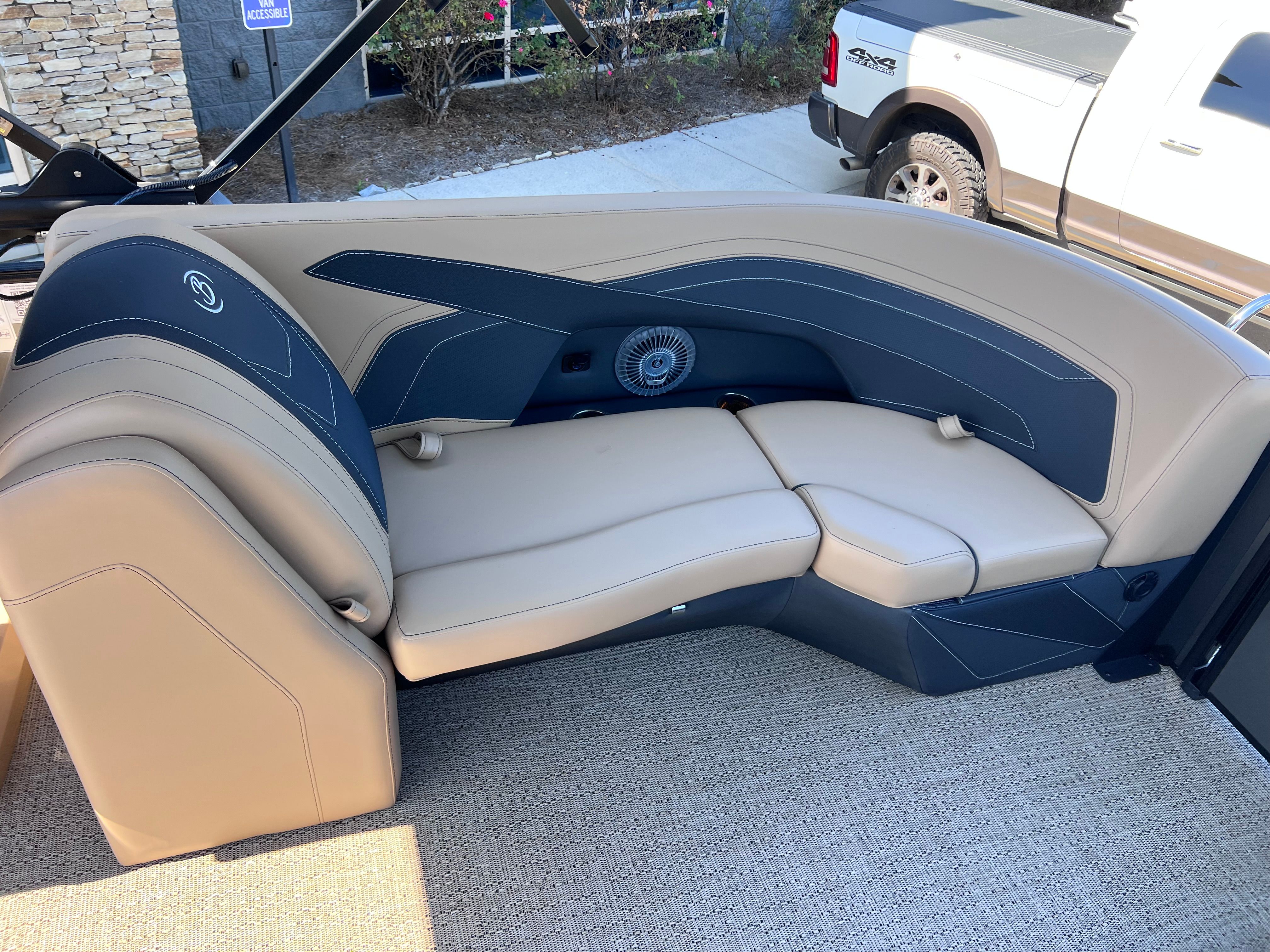 Owning the Barletta Cabrio C22Q means embracing a lifestyle of fun, relaxation, and social connection. This pontoon boat is designed for comfort and enjoyment, with spacious seating arrangements that invite friends and family to gather and unwind. The plush Carmella Tan furniture offers exceptional support, making long days on the water a pleasure. The open layout encourages conversation and laughter, while the ample deck space allows for sunbathing, dining, or simply soaking in the scenery.The Cabrio C22Q’s performance capabilities mean you can enjoy a variety of activities, from leisurely cruises to more adventurous pursuits like tubing or swimming. The efficient Mercury engine ensures you spend more time enjoying the water and less time worrying about maintenance or fuel costs. With its stylish design and premium finishes, this Barletta boat for sale is sure to impress guests and fellow boaters alike.