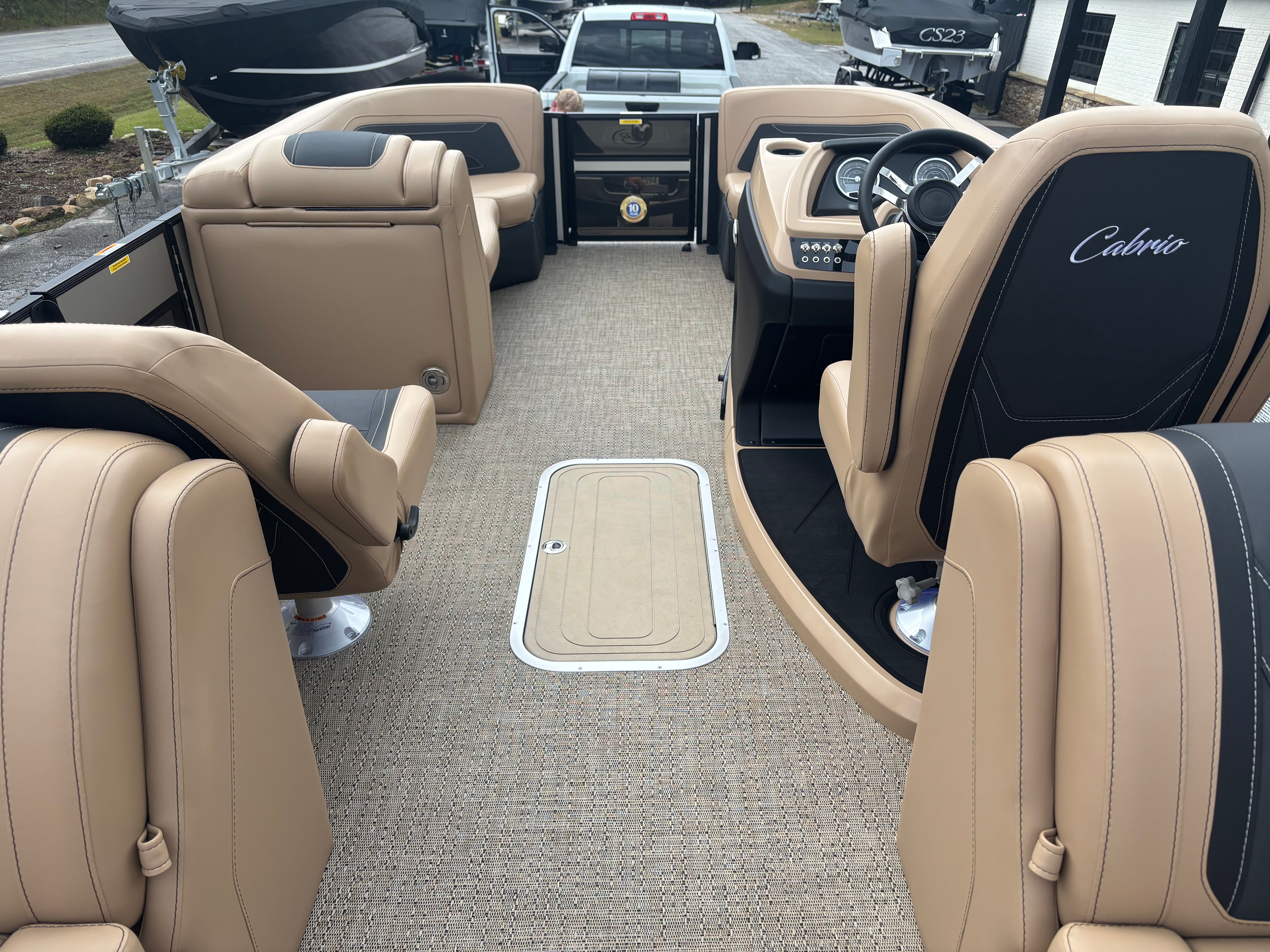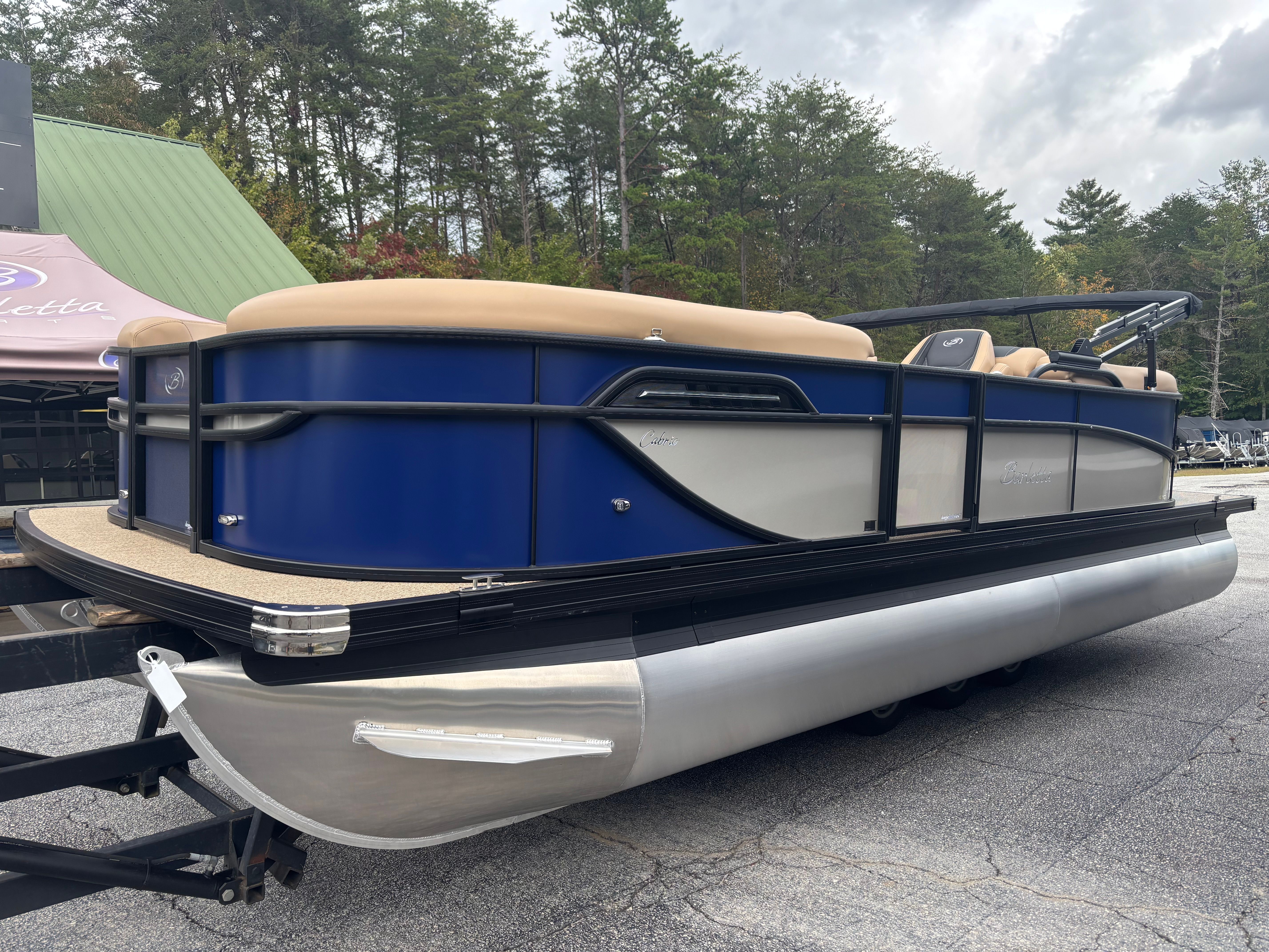 The 2026 Barletta Cabrio C22QC is a 23-foot pontoon that embodies the spirit of relaxation and recreation. With a length of approximately 23 feet, this pontoon offers ample space for socializing, lounging, and enjoying the open water. The Cabrio C22QC’s sleek lines and modern aesthetic are complemented by its Bohemian Blue railskin color, Champagne accent, and Carmella Tan with Onyx furniture, creating a sophisticated yet inviting atmosphere. As a new model, this Barletta boat for sale ensures you are investing in the latest advancements in pontoon design and technology.