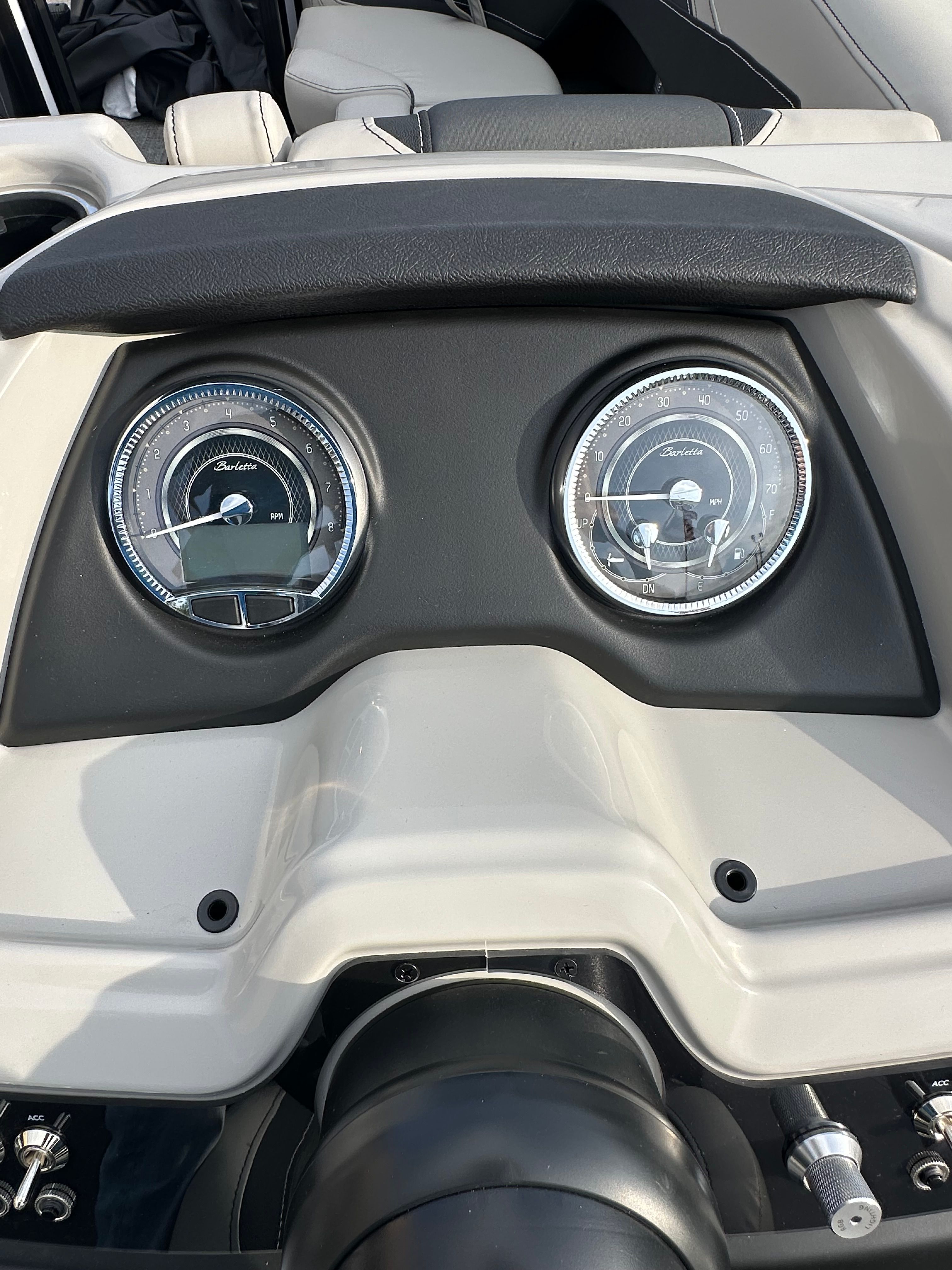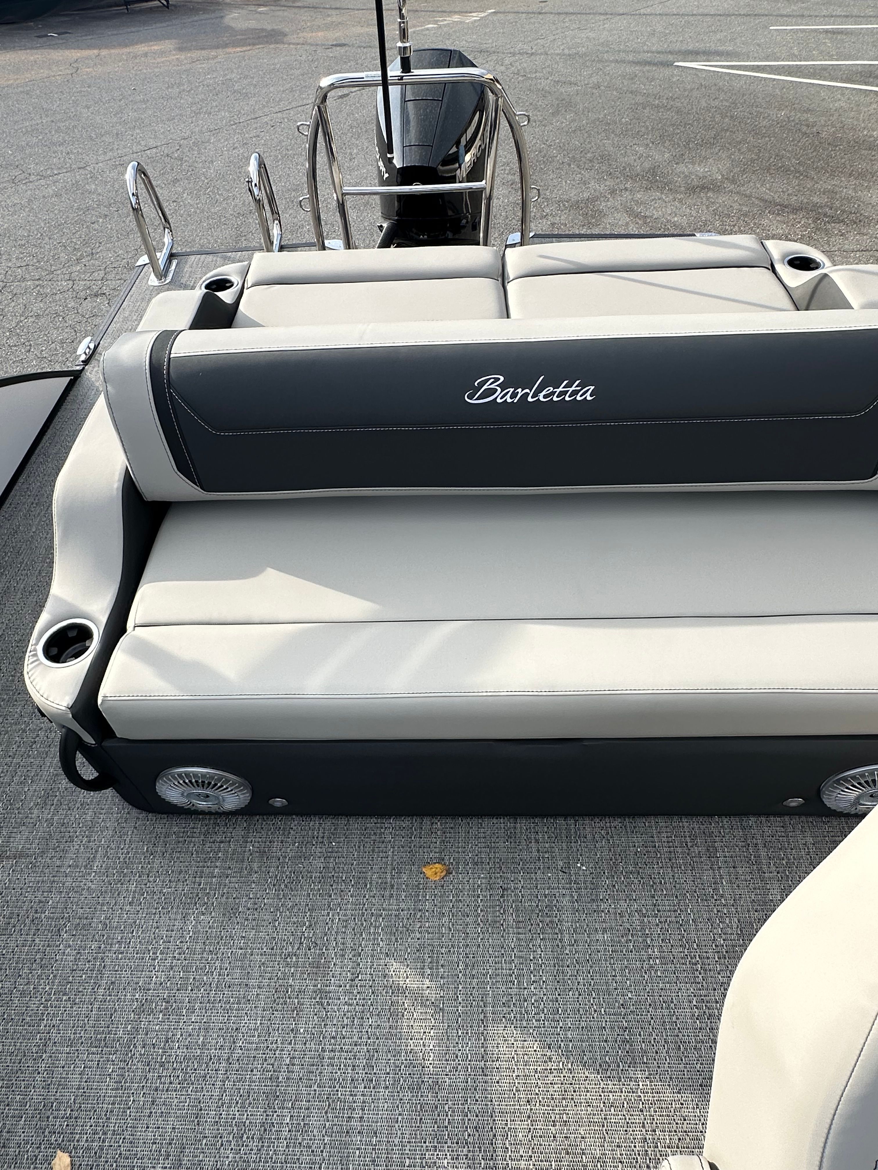 The Barletta Cabrio C22UC is packed with thoughtful features and high-end finishes that set it apart from other pontoon boats for sale. The Railskin Color in Champagne, accented by Winter White, creates a sophisticated and timeless look, while the Blackout Package Cabrio adds a bold, modern edge. Inside, the Marquesan Gray furniture with Onyx accents offers plush comfort and contemporary style, perfectly complemented by the Amore Gray flooring that is both attractive and easy to maintain.For those who value storage and convenience, the Triple Toon Package with Midship Storage - Cabrio provides ample space for all your gear, water toys, and essentials. The onboard battery charger with two batteries ensures you have reliable power for all your electronics and accessories, so you can stay connected and enjoy extended days on the water without worry.