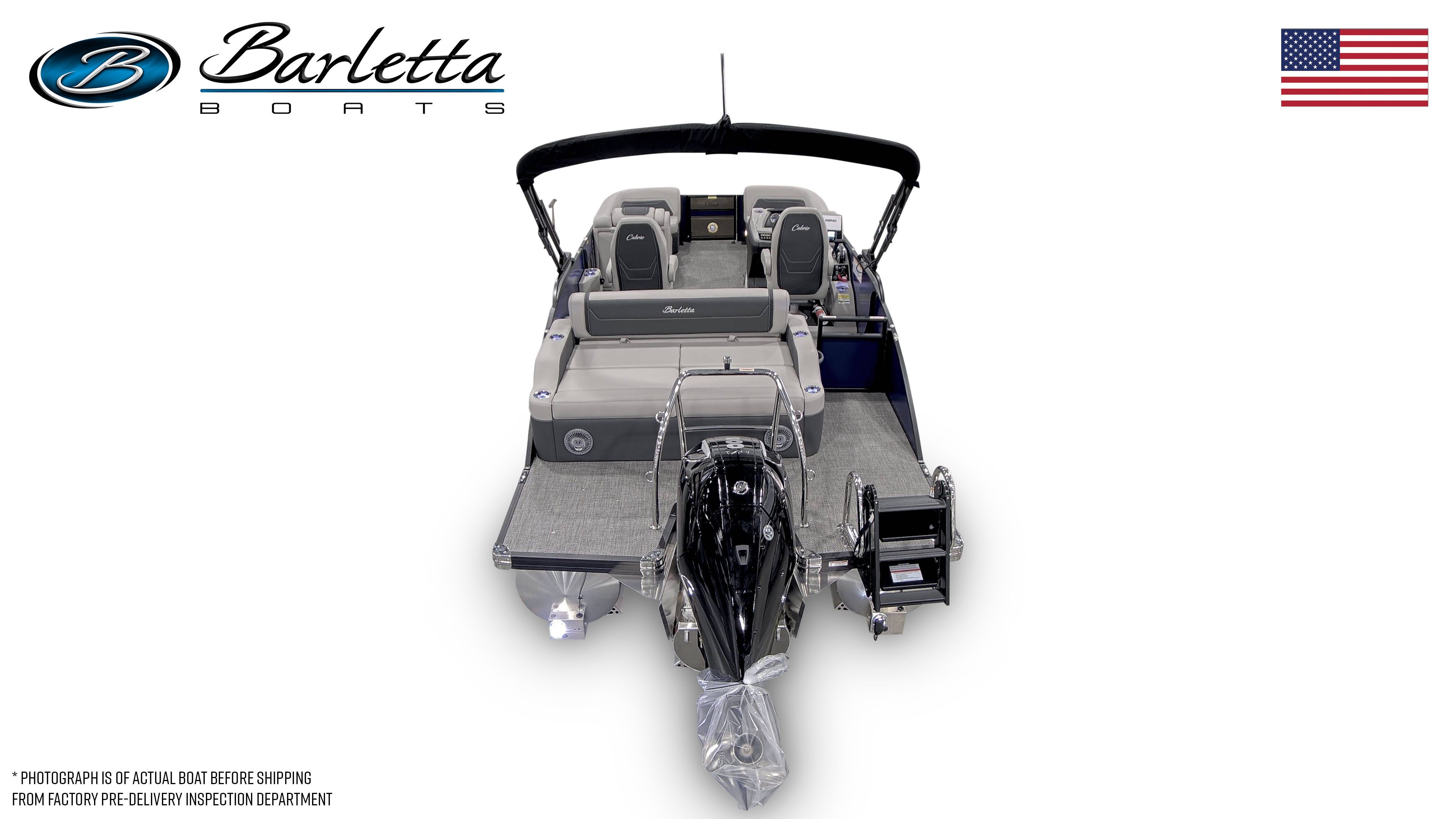 Step aboard the Barletta Cabrio C22UC and discover a world of premium features designed to elevate your boating experience. The Triple Toon Package with Midship Storage – Cabrio provides enhanced stability, buoyancy, and storage capacity, making it ideal for extended outings and accommodating all your gear. The furniture is finished in Marquesan Gray with Onyx accents, offering plush seating and a sophisticated ambiance that invites relaxation and socializing. The Amore Gray flooring adds a touch of elegance while providing durability and easy maintenance, perfect for busy days on the water.The exterior is adorned with a stainless steel flag pole and an American flag, showcasing your pride and adding a classic touch to the boat’s profile. The Railskin Packages, including the Blackout Package Cabrio, not only enhance the boat’s aesthetic appeal but also provide added protection and durability. Every detail, from the color accents to the high-quality rigging, reflects Barletta’s dedication to excellence and innovation.